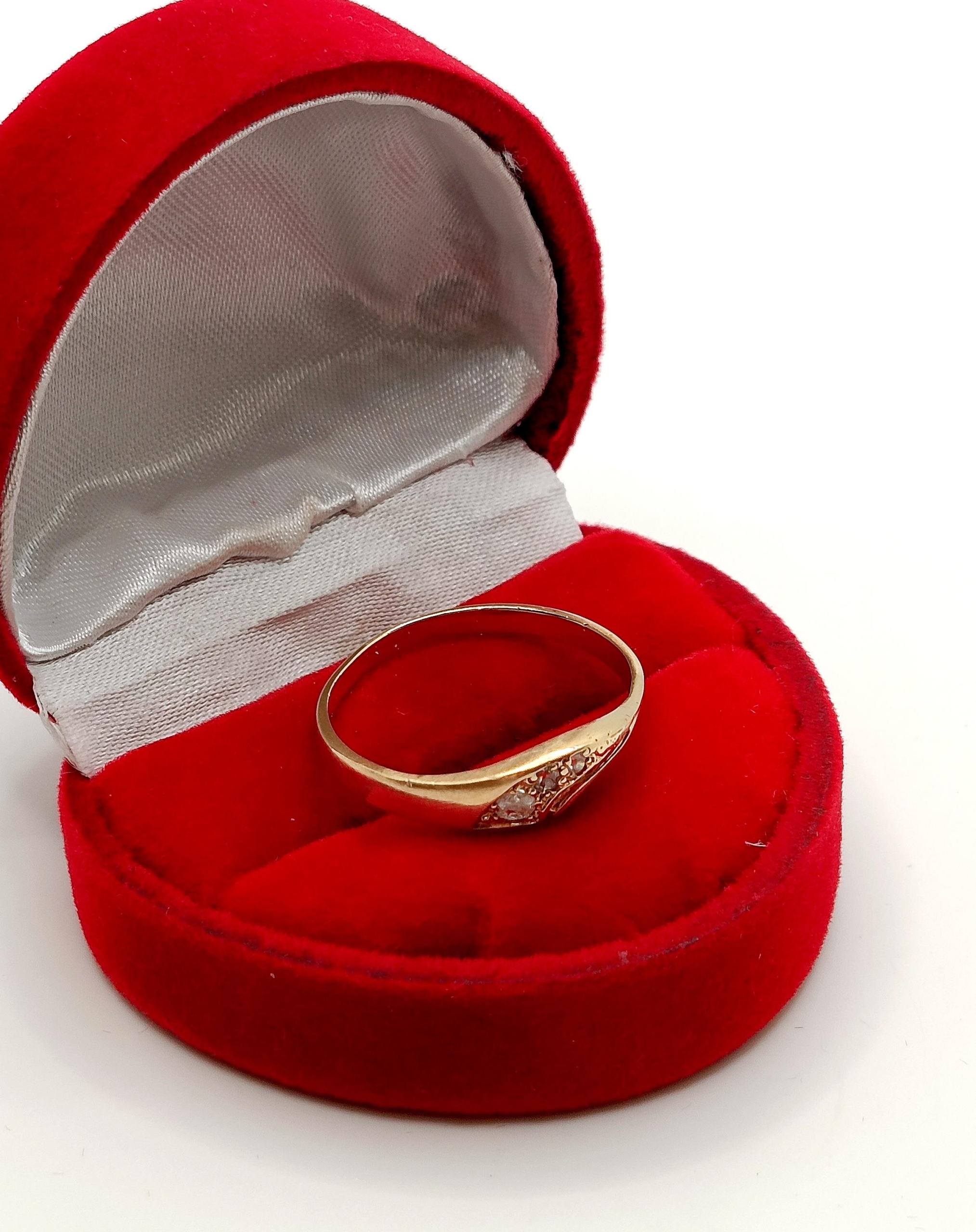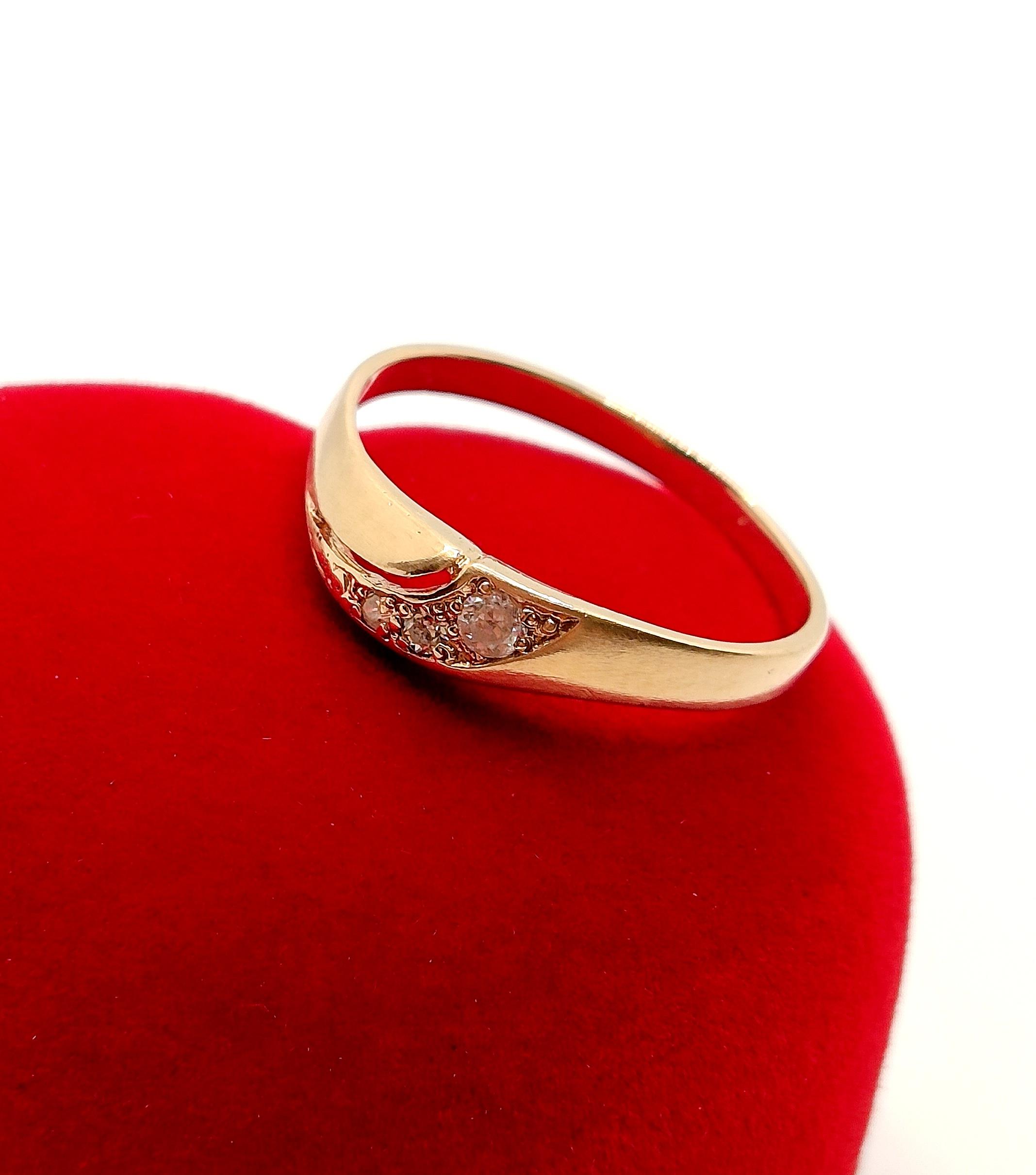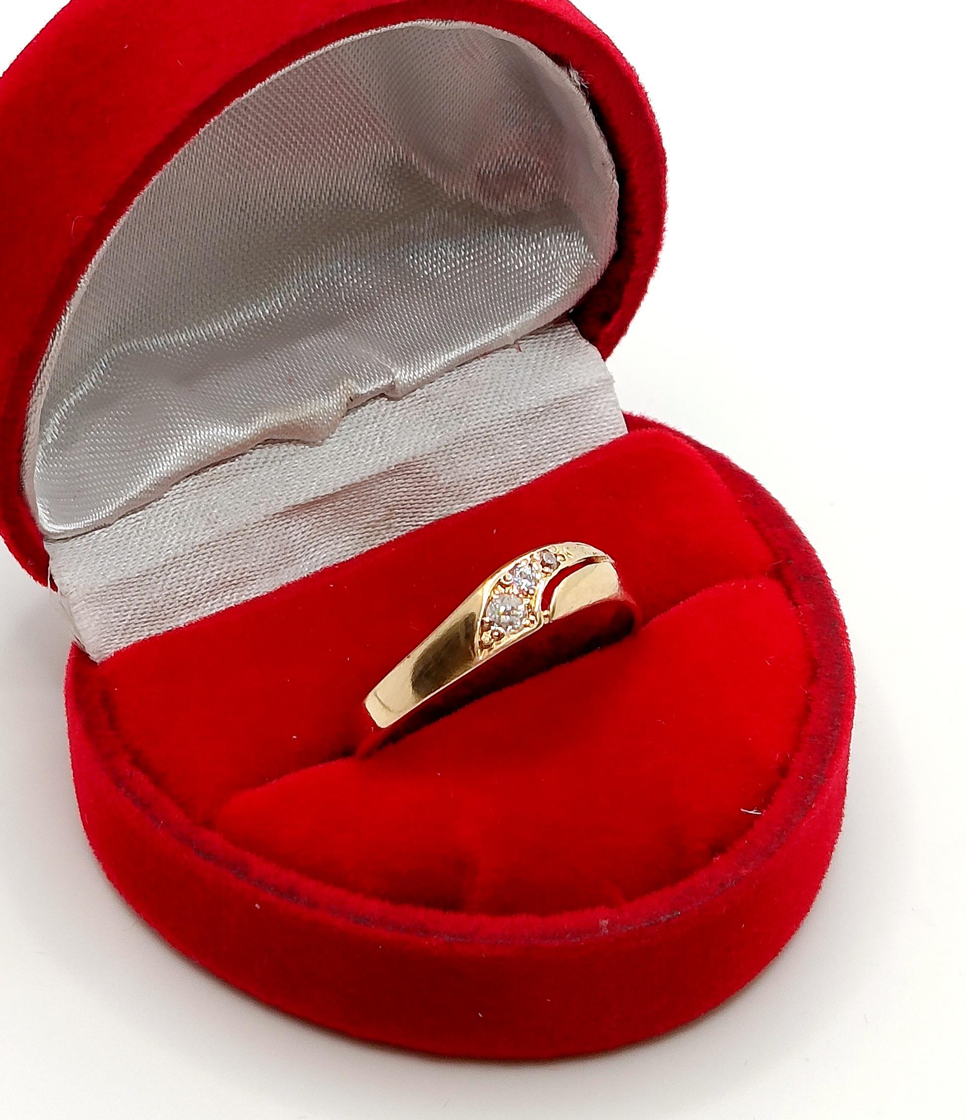 W ofercie na sprzedaż mamy dla Państwa zloty pierścionek zdobiony cyrkoniami oraz małym wycięciem w poprzek zdobienia.