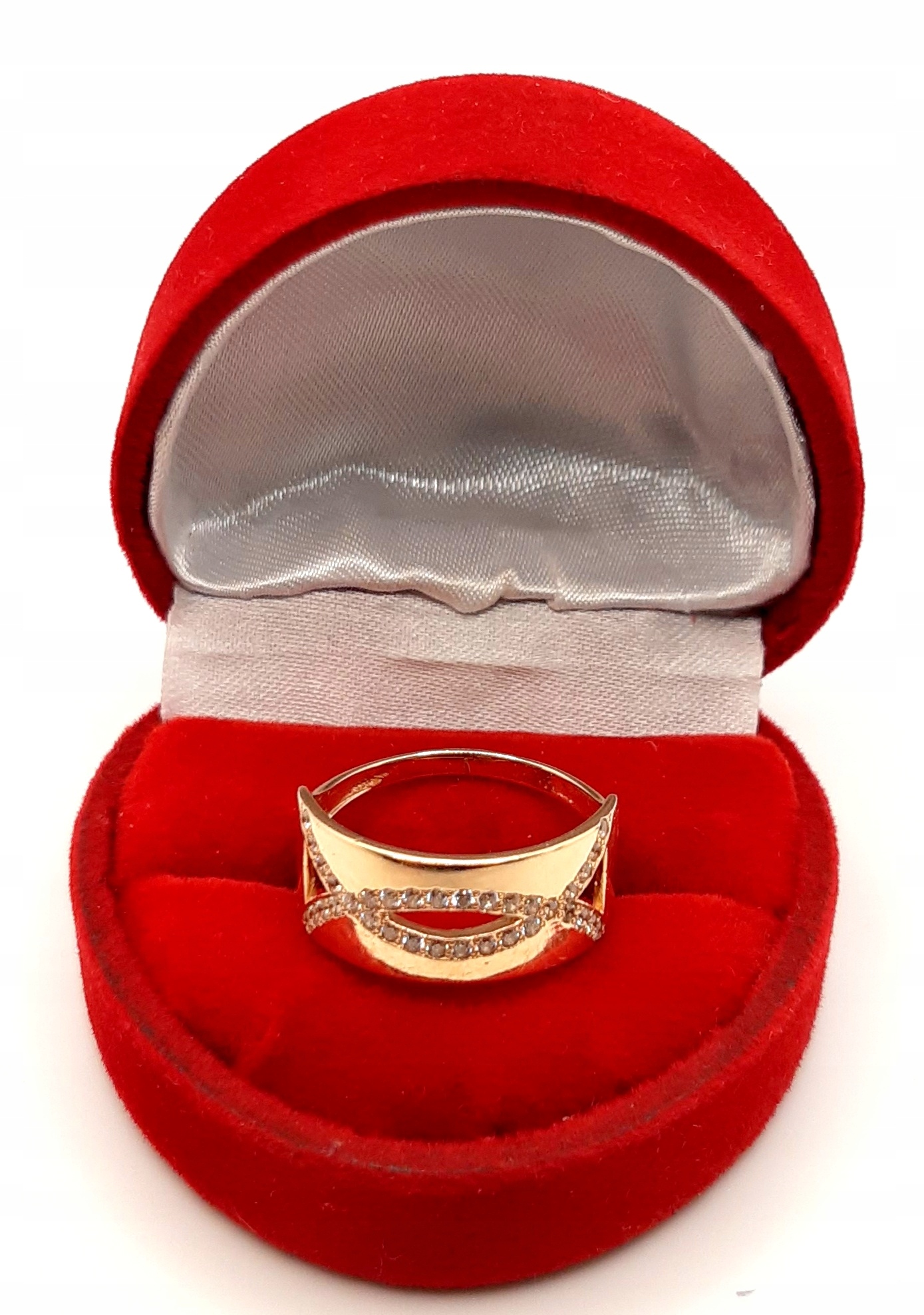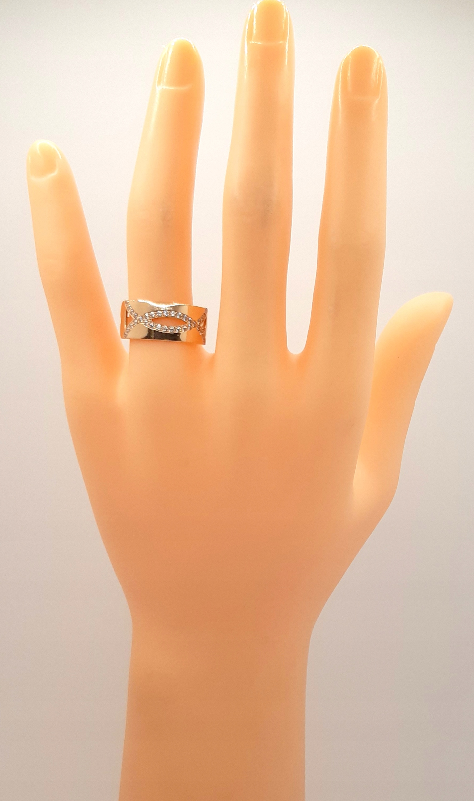 Oferujemy na sprzedaż piękny, złoty pierścionek ozdobiony cyrkoniami.