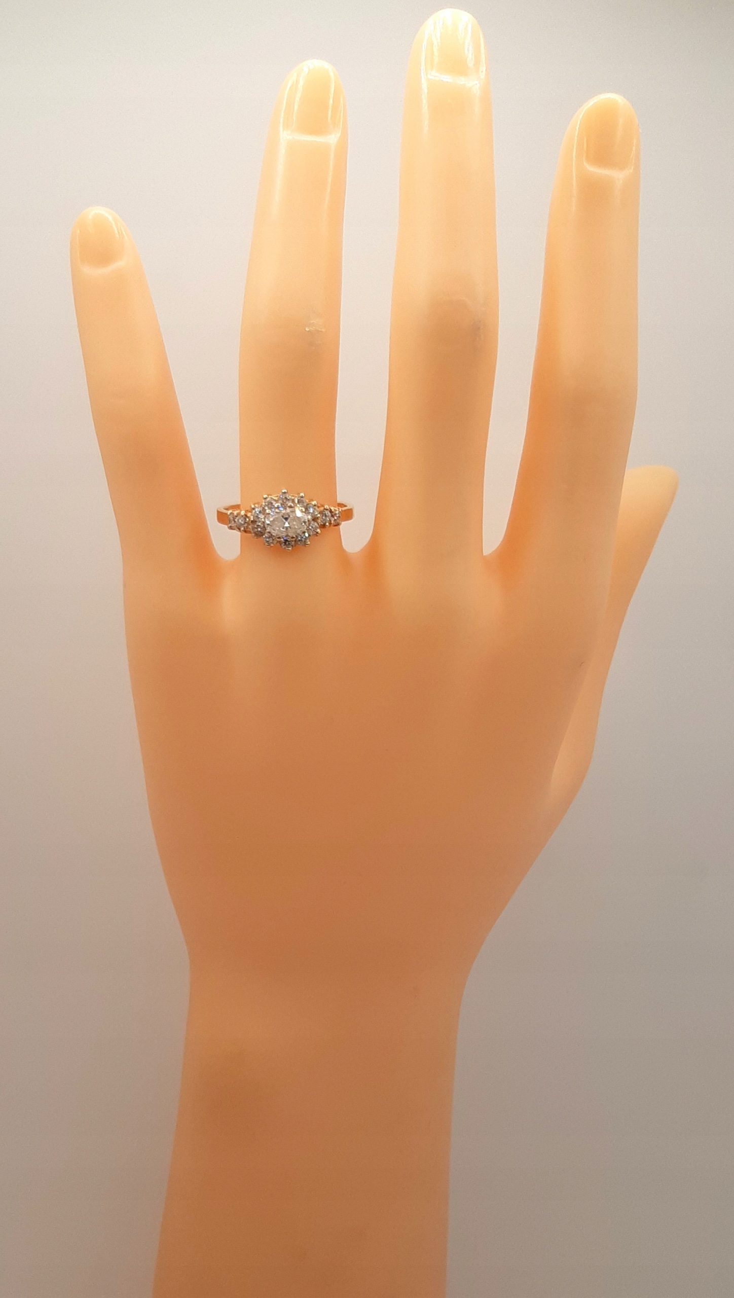 W ofercie na sprzedaż mamy dla Państwa piękny, złoty pierścionek ozdobiony cyrkoniami.