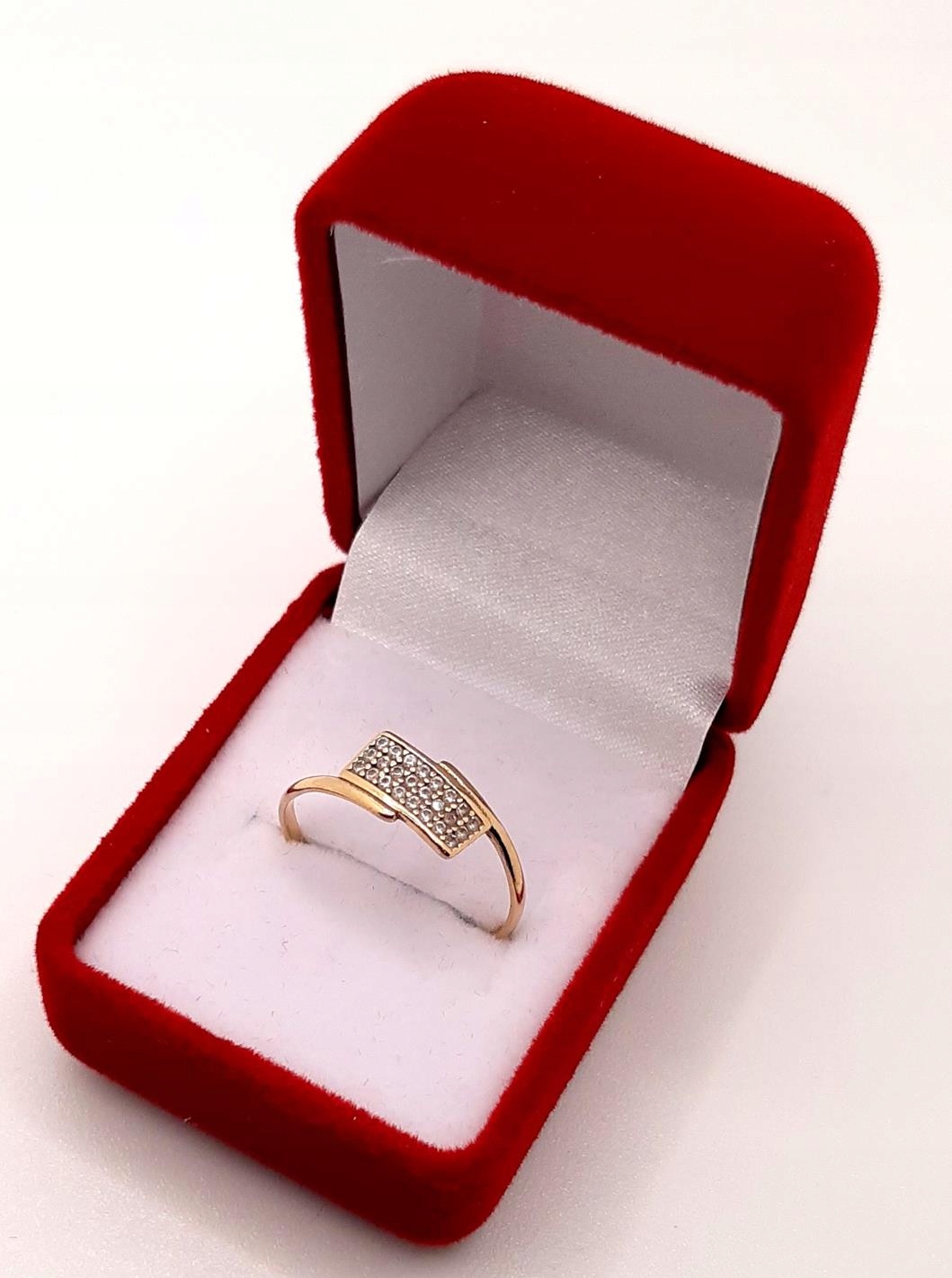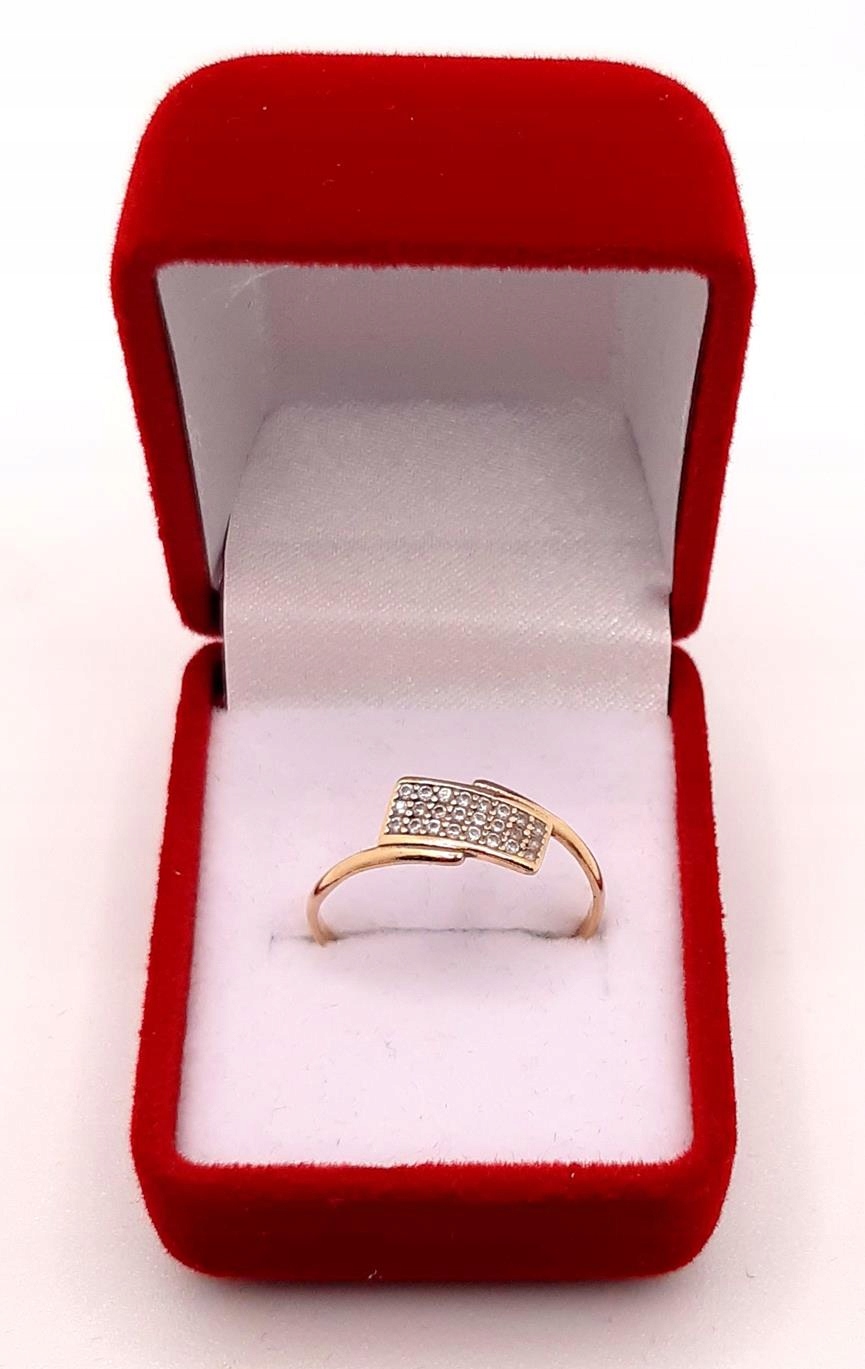 Złoty pierścionek z Cyrkoniami PR. 585 W: 1,14 gr R.16