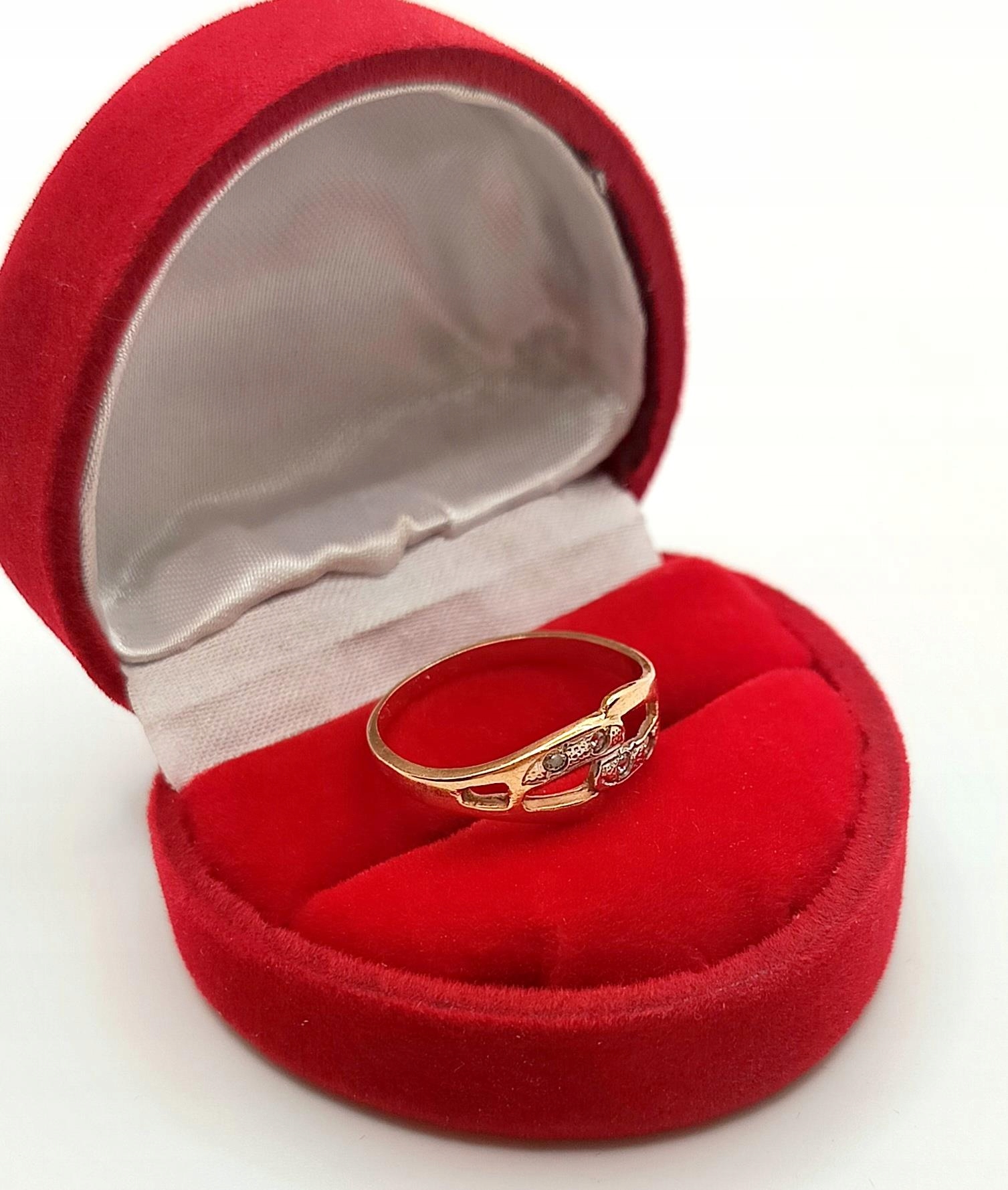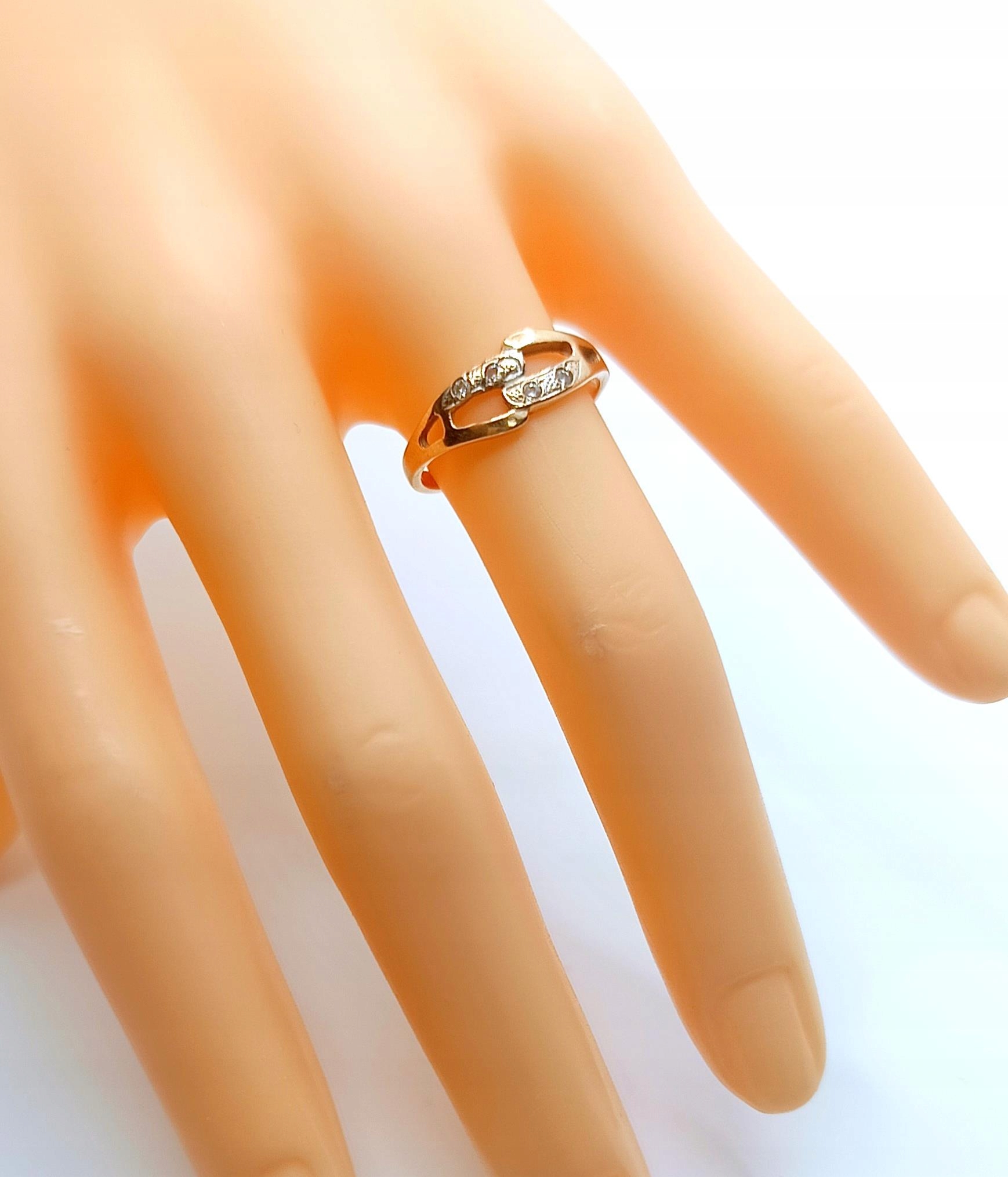 Oferujemy na sprzedaż złoty pierścionek zdobiony cyrkoniami.