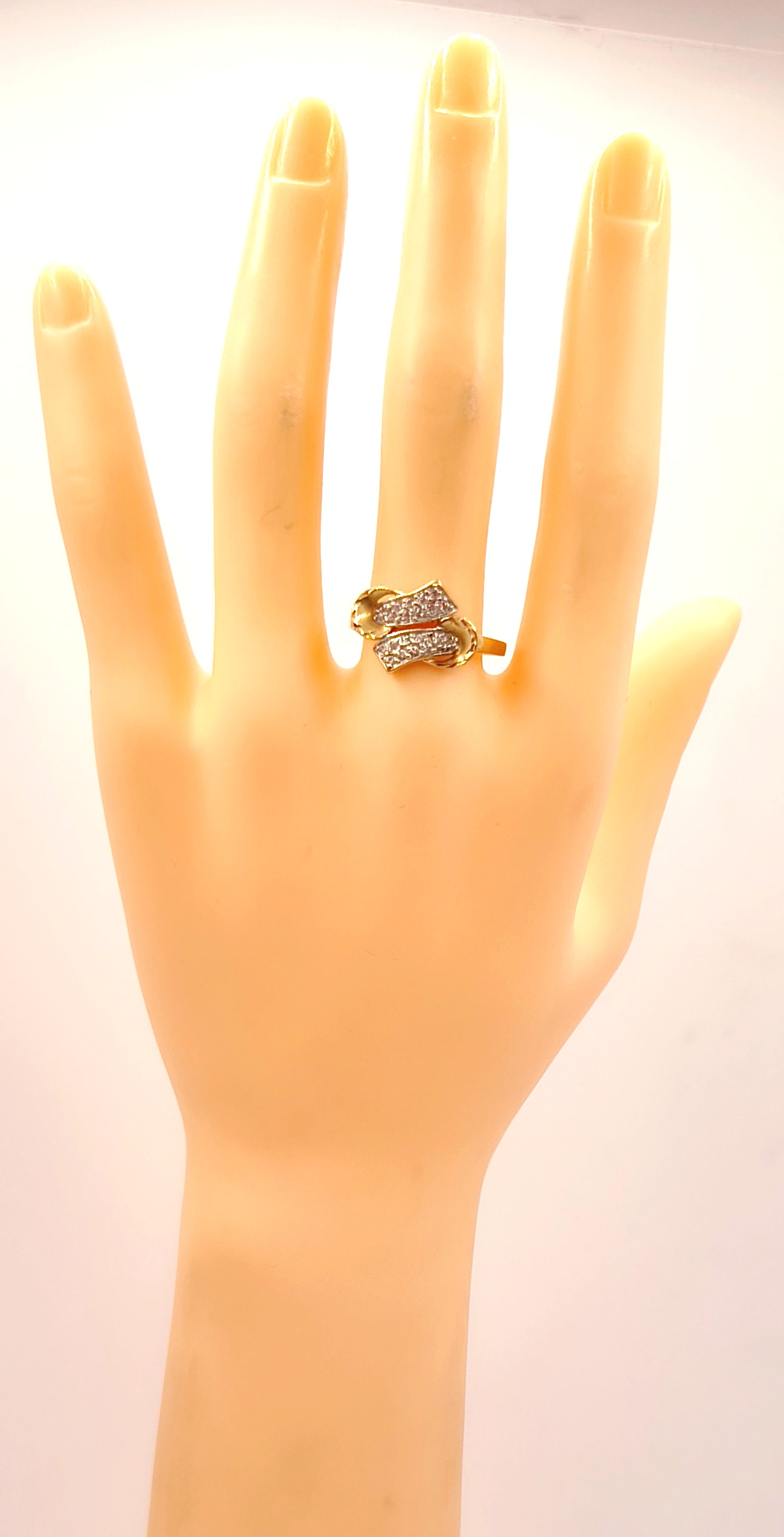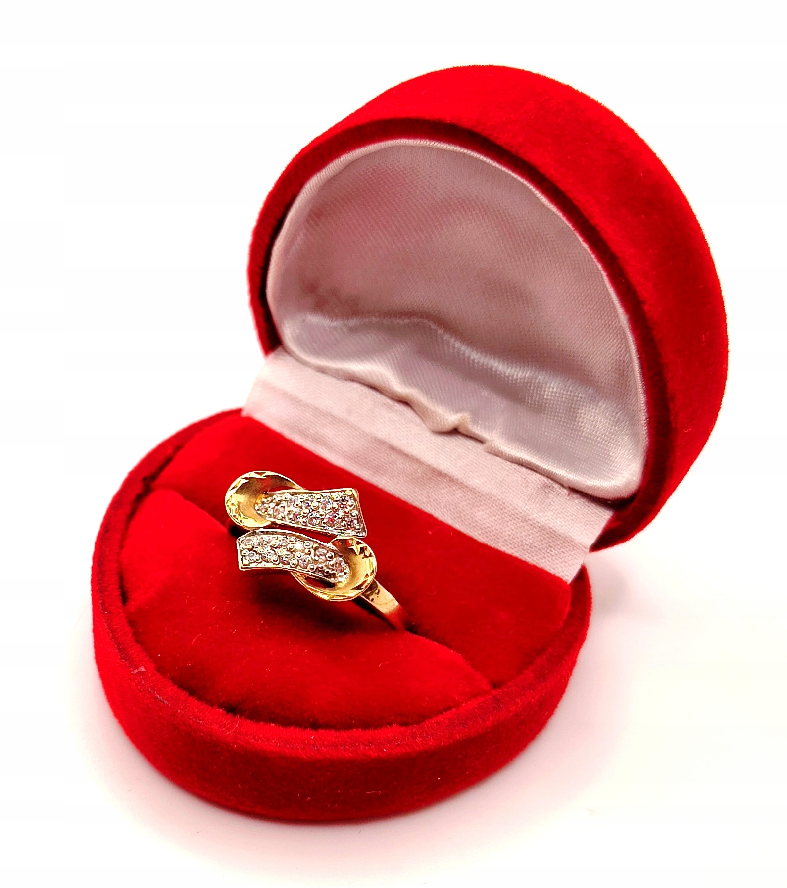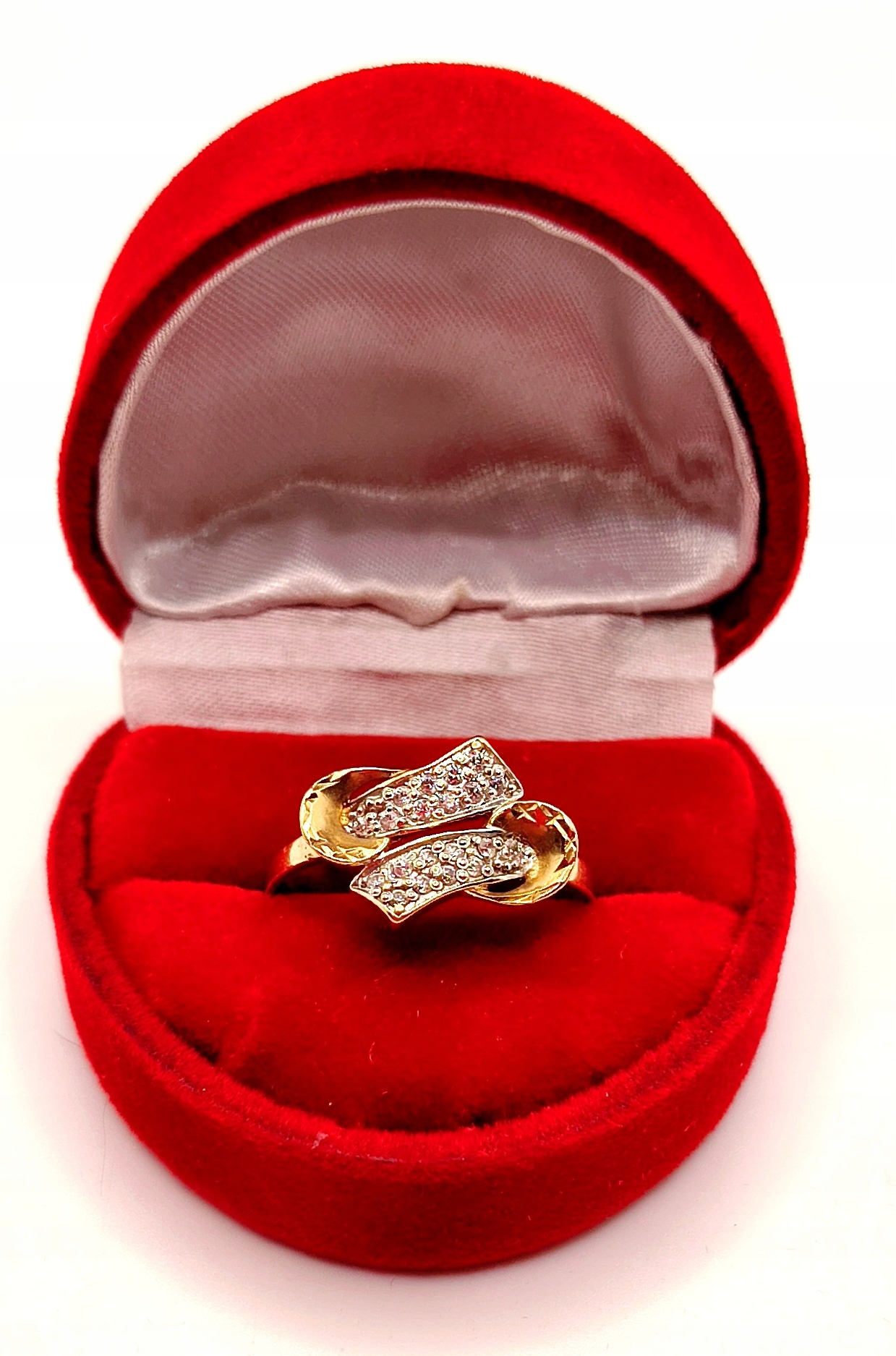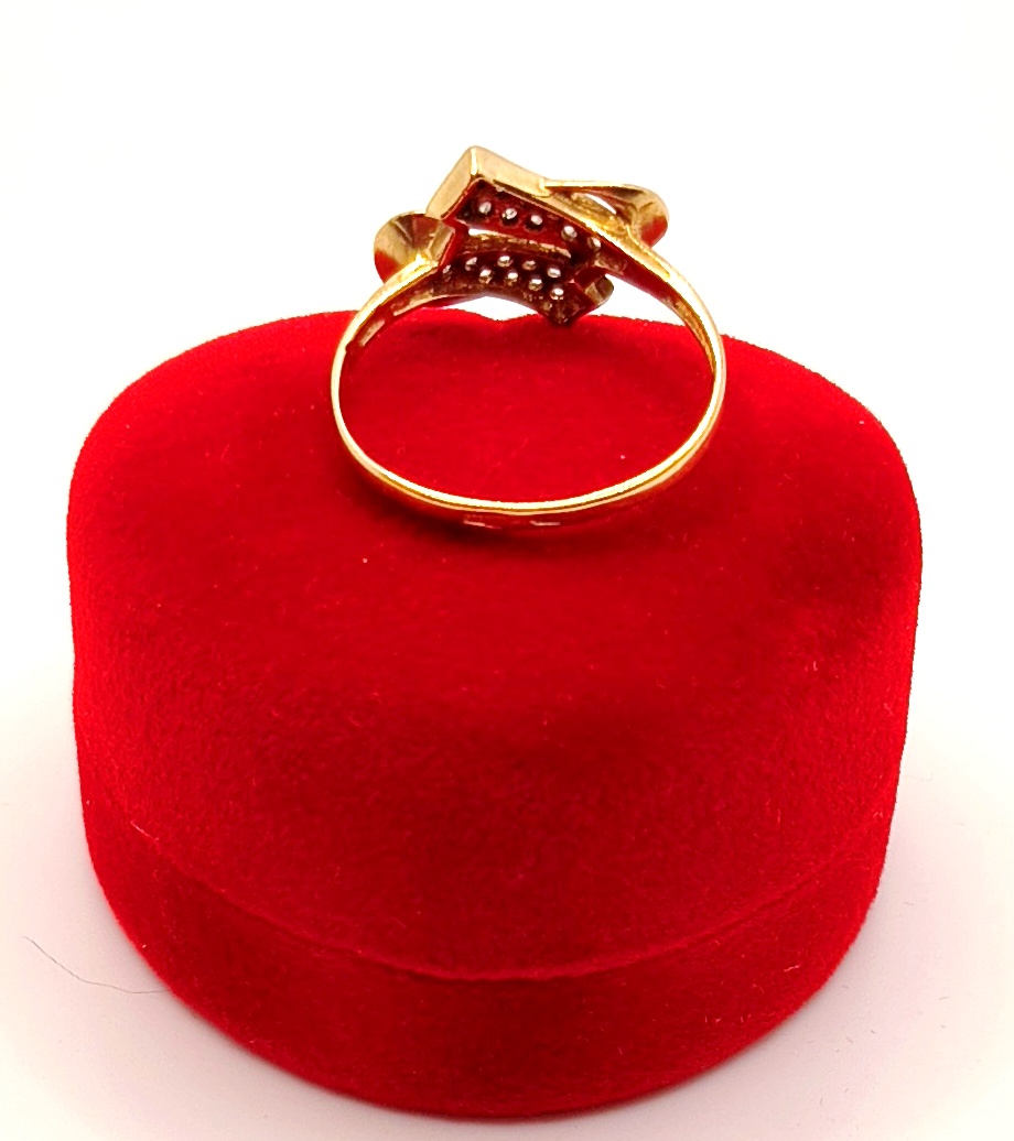 Oferujemy na sprzedaż piękny, złoty pierścionek ozdobiony cyrkoniami.