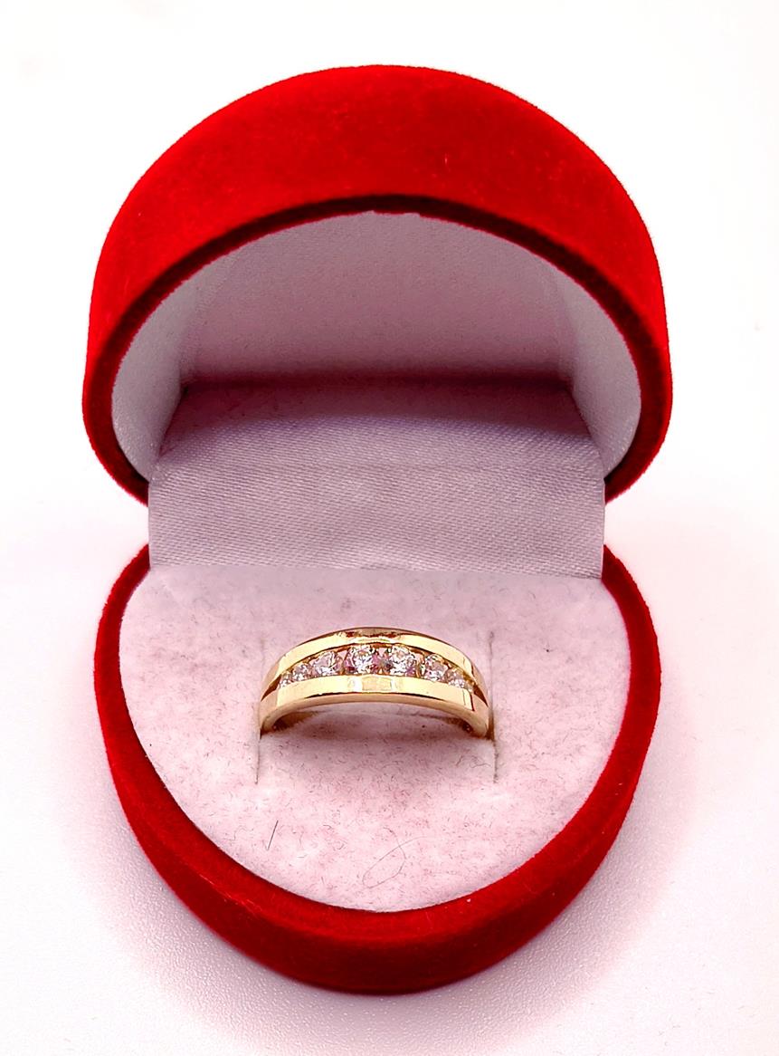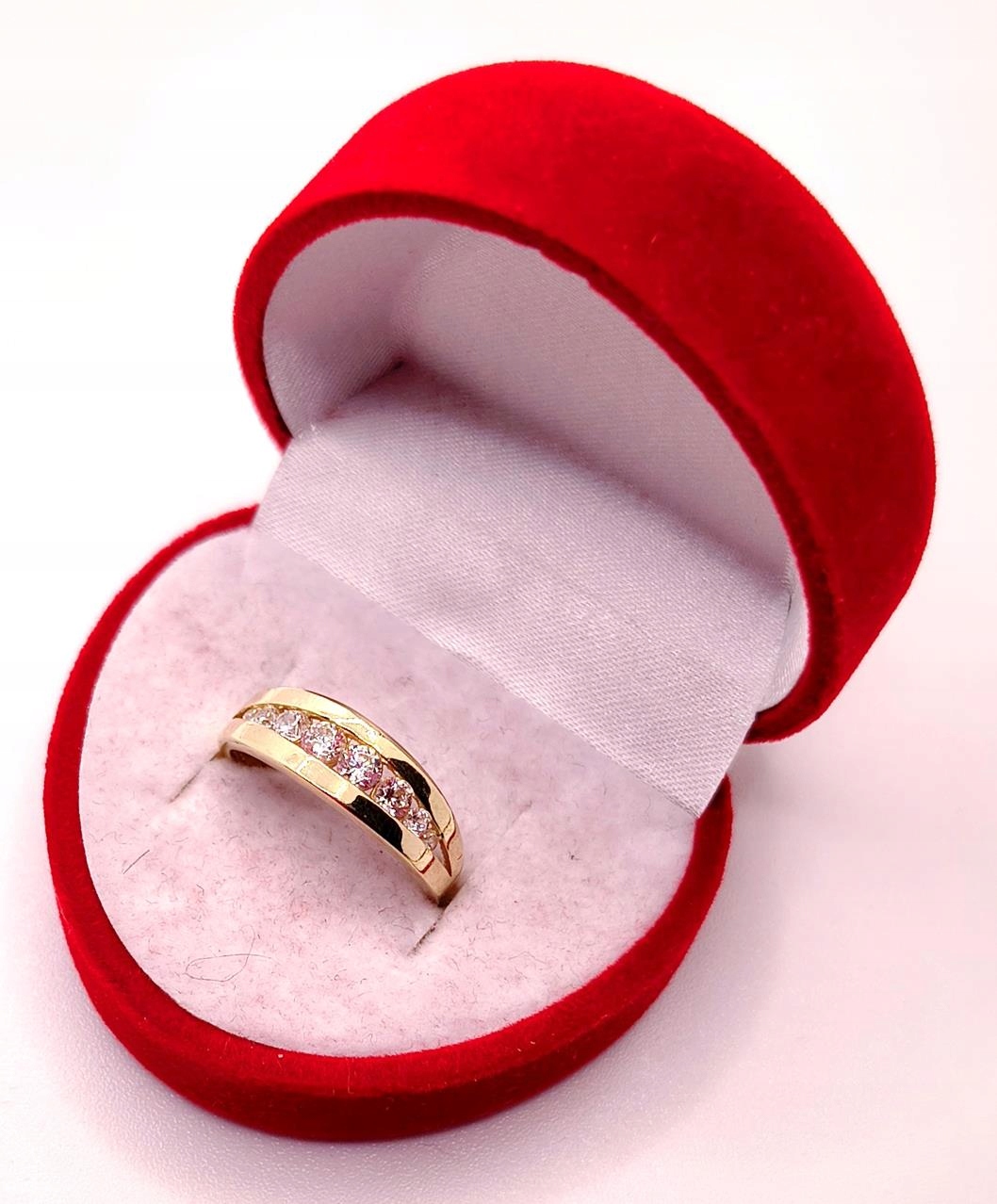 W ofercie sprzedaży posiadamy piękny, złoty pierścionek ozdobiony cyrkoniami.