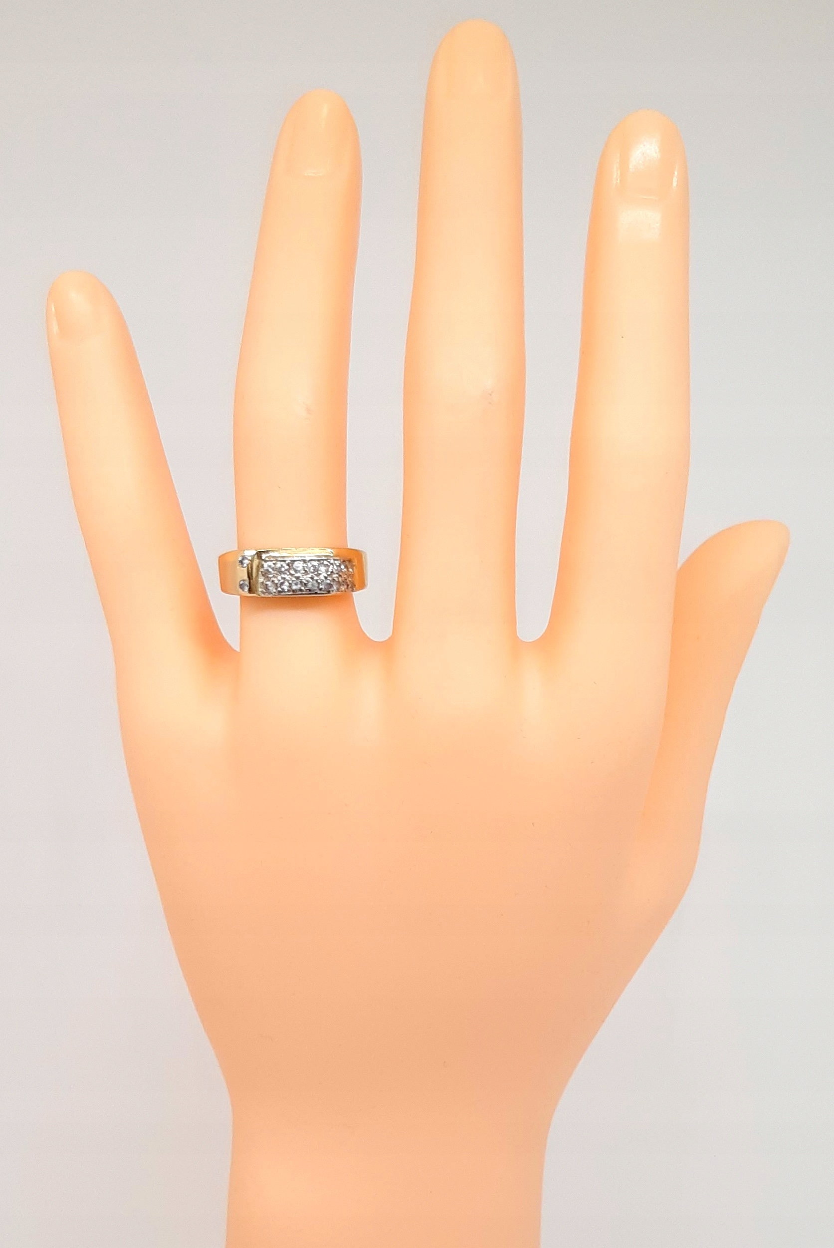 W ofercie na sprzedaż mamy dla Państwa złoty pierścionek ozdobiony cyrkoniami.