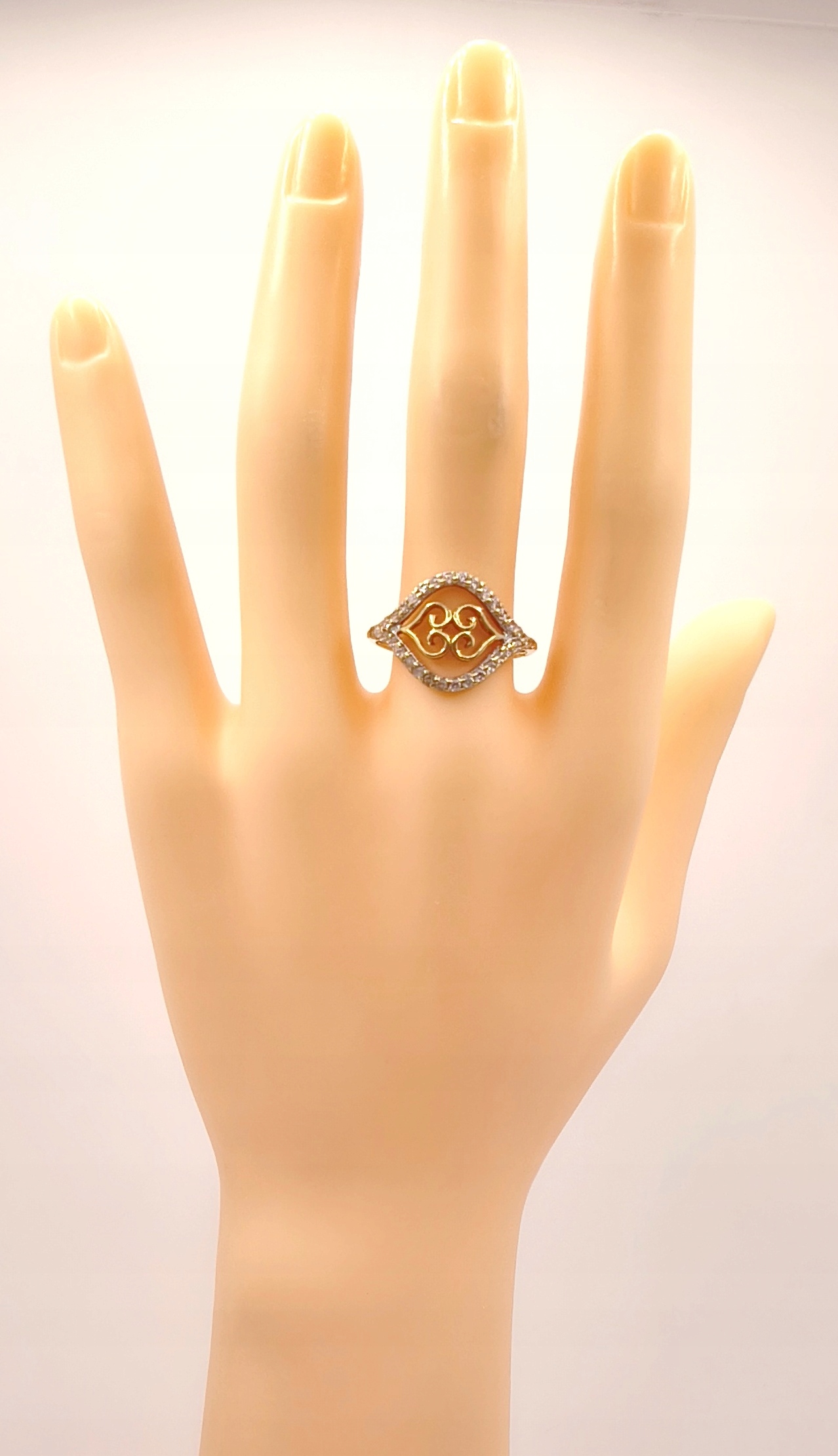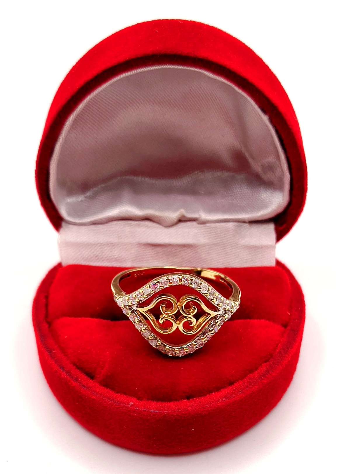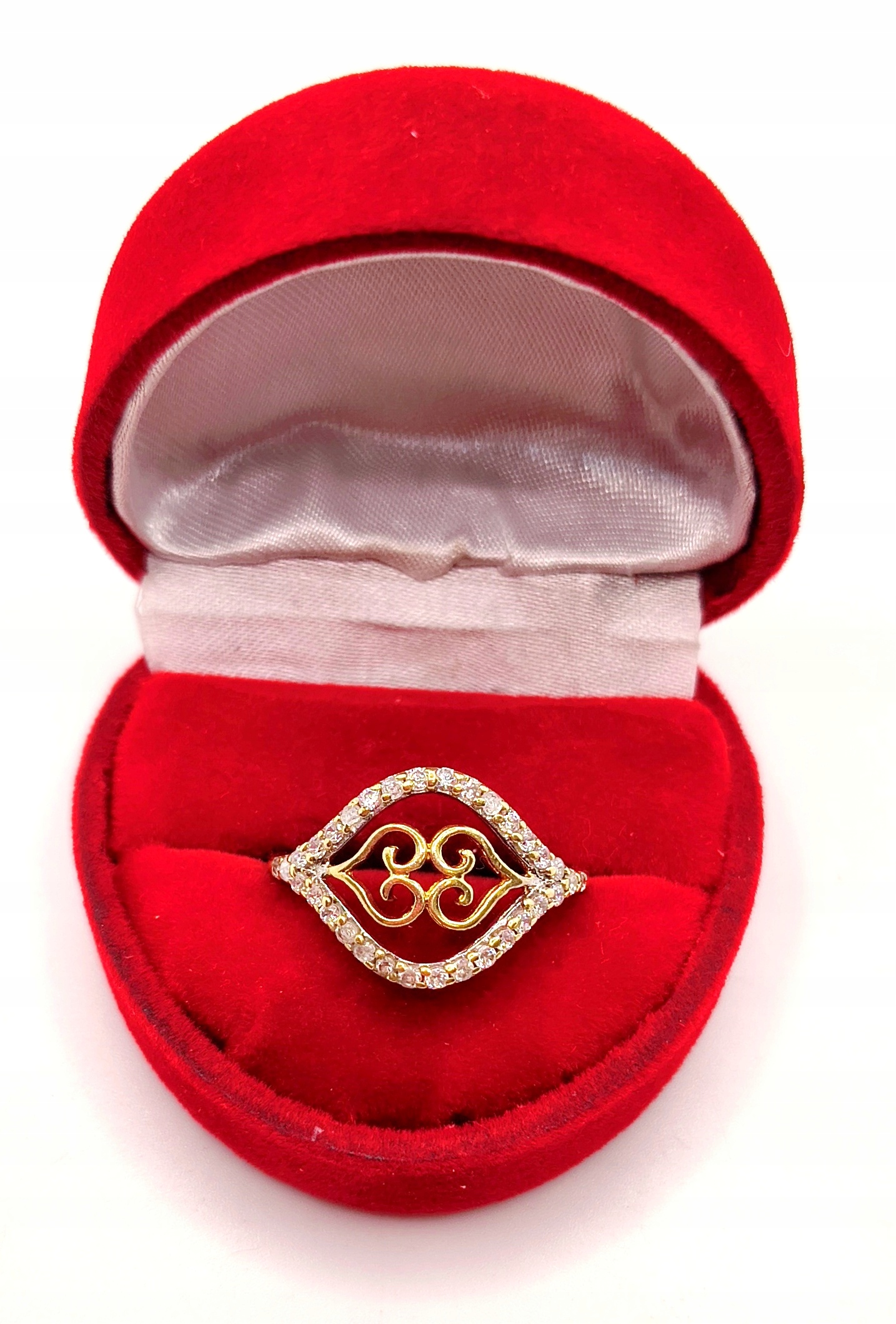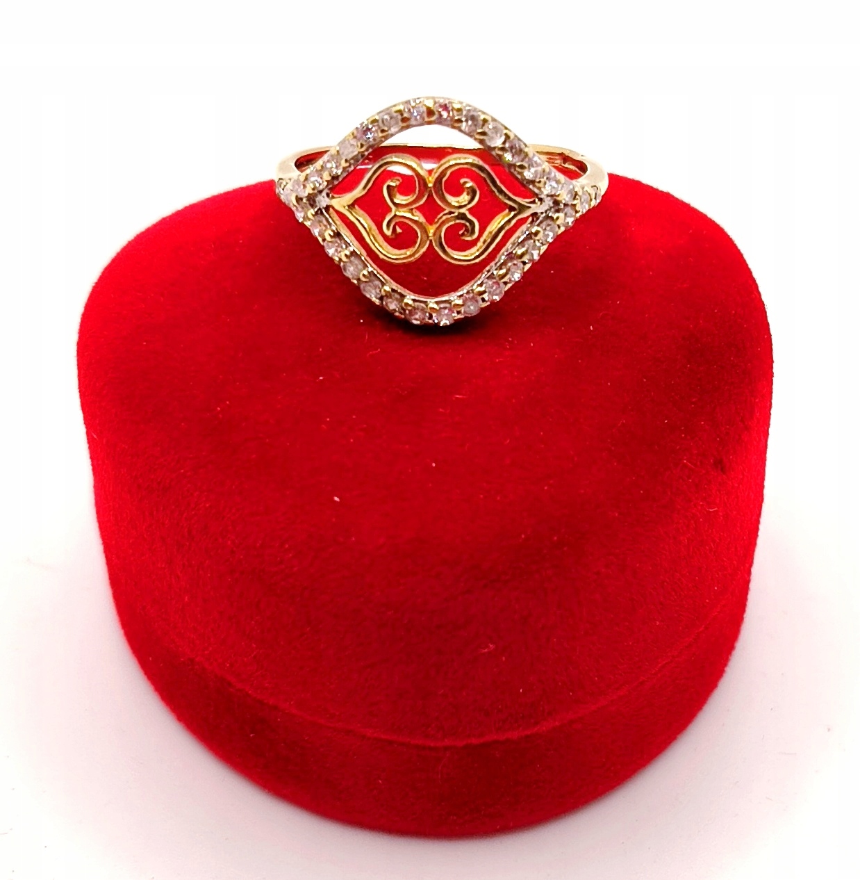 W ofercie na sprzedaż mamy dla państwa piękny, złoty pierścionek ozdobiony cyrkoniami.