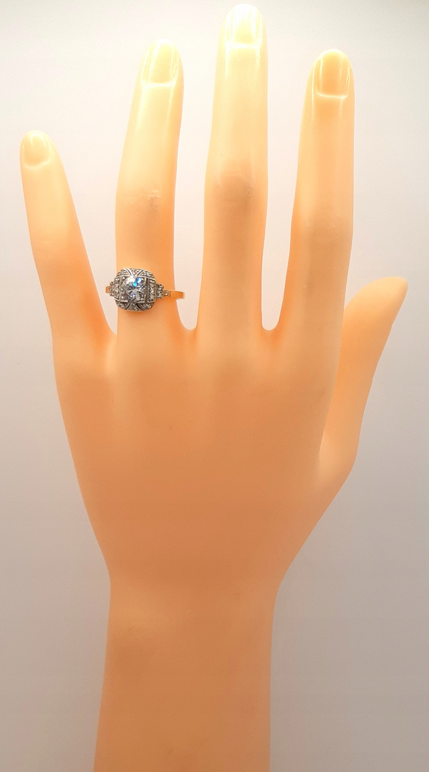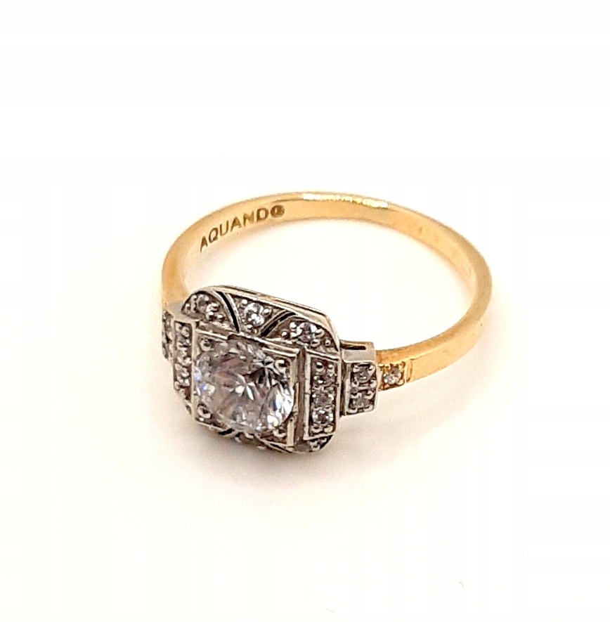 Pierścionek wykonany z żółtego i białego złota próby 585.