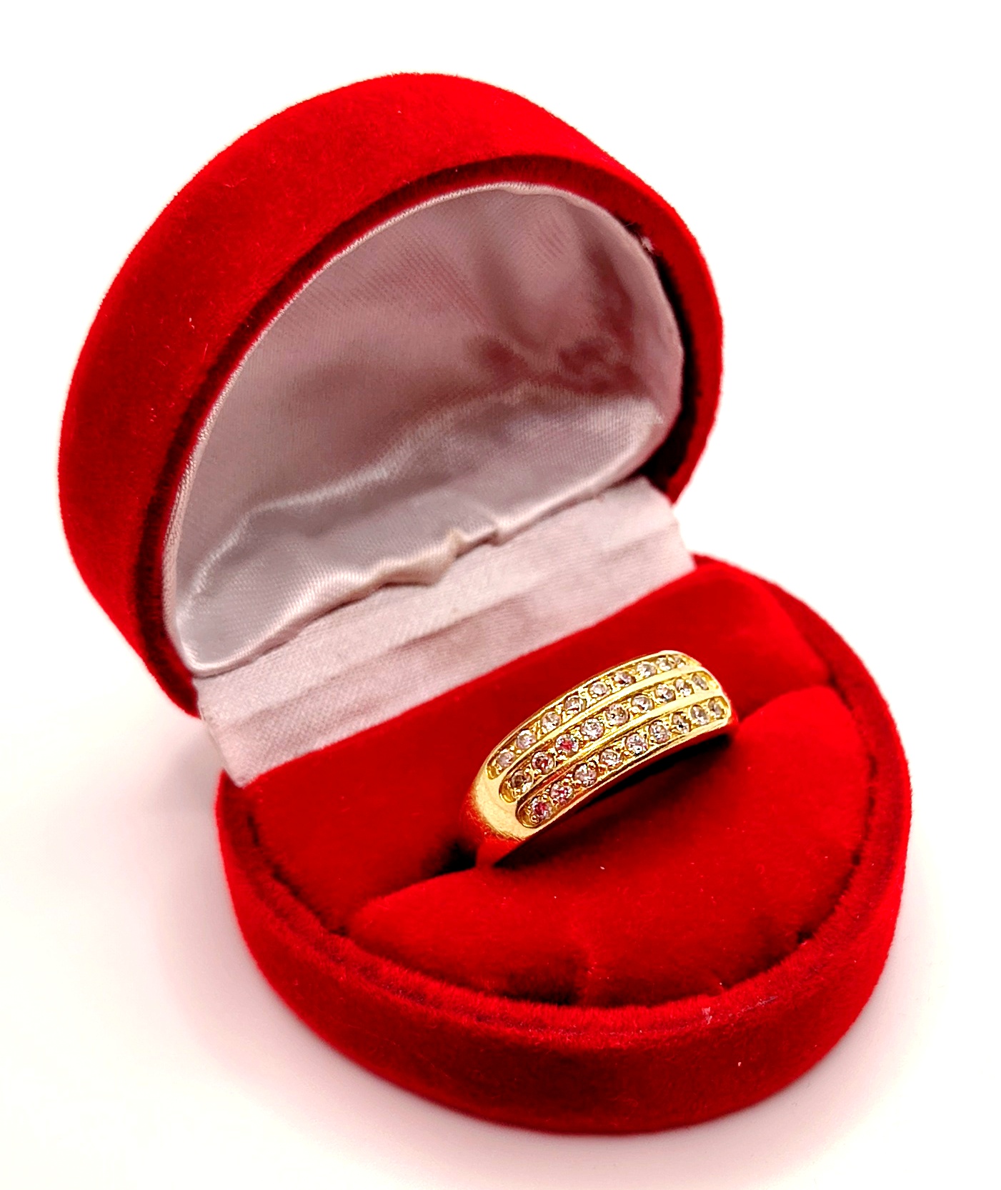 W ofercie na sprzedaż mamy dla Państwa piękny, złoty pierścionek ozdobiony cyrkoniami.
