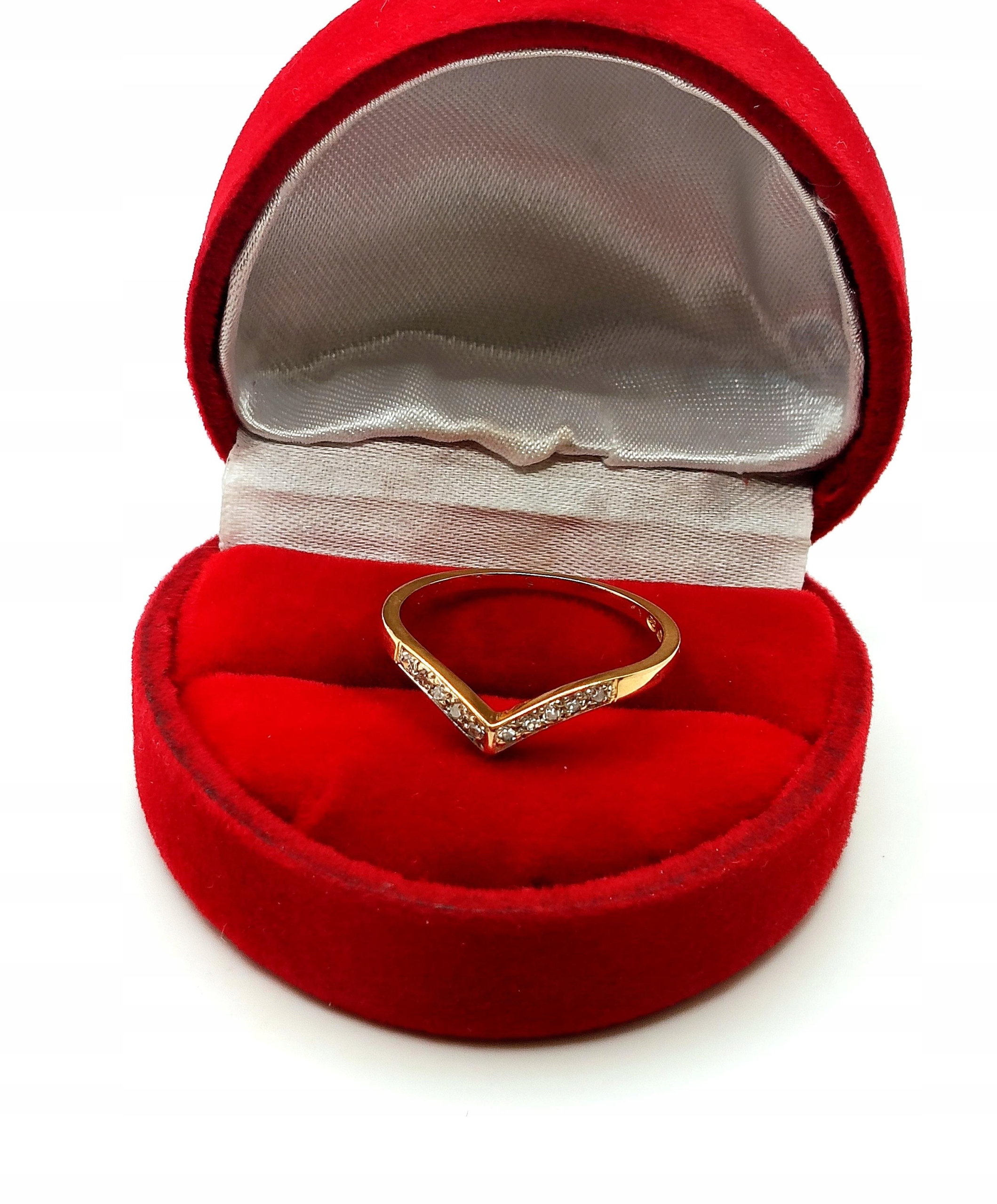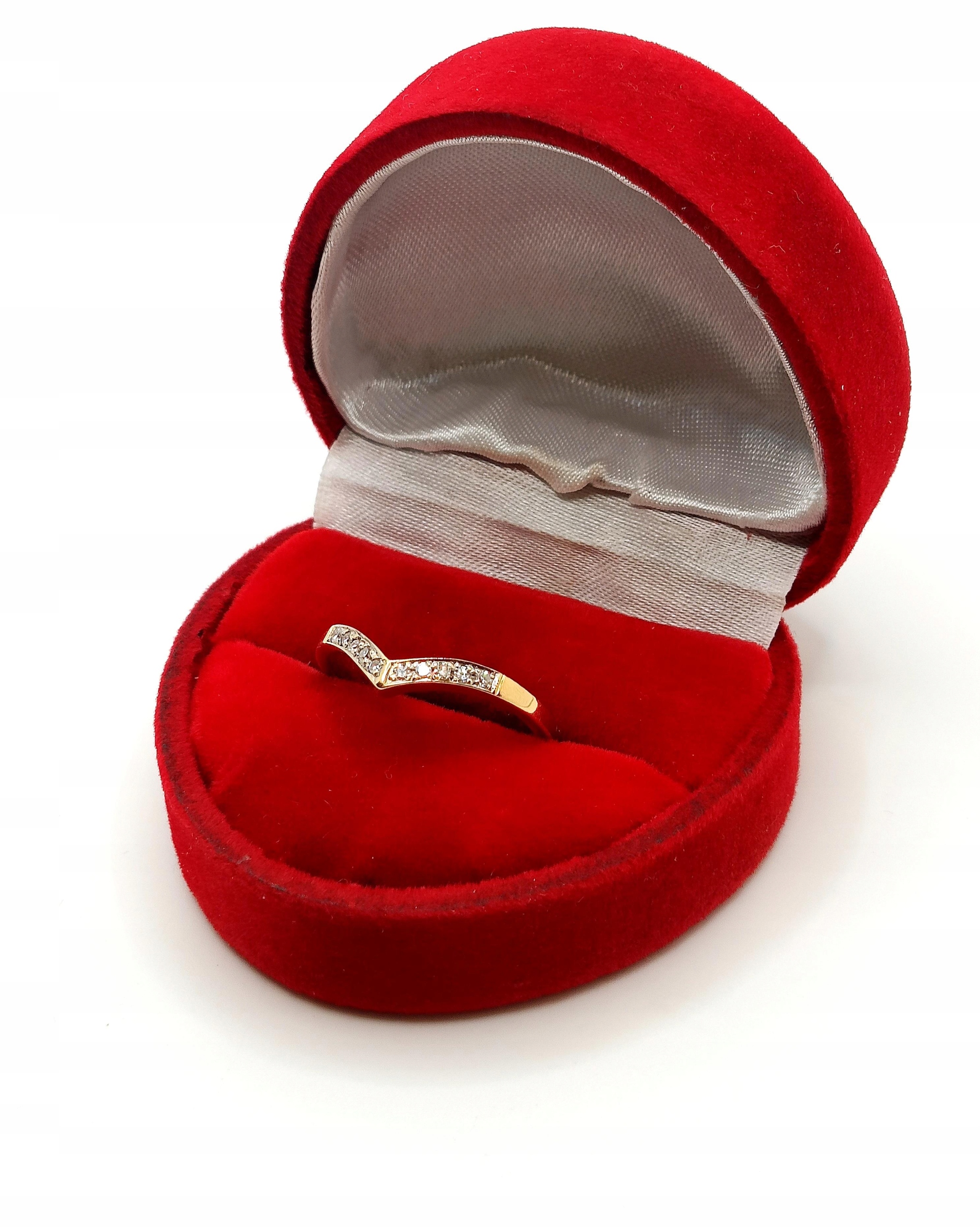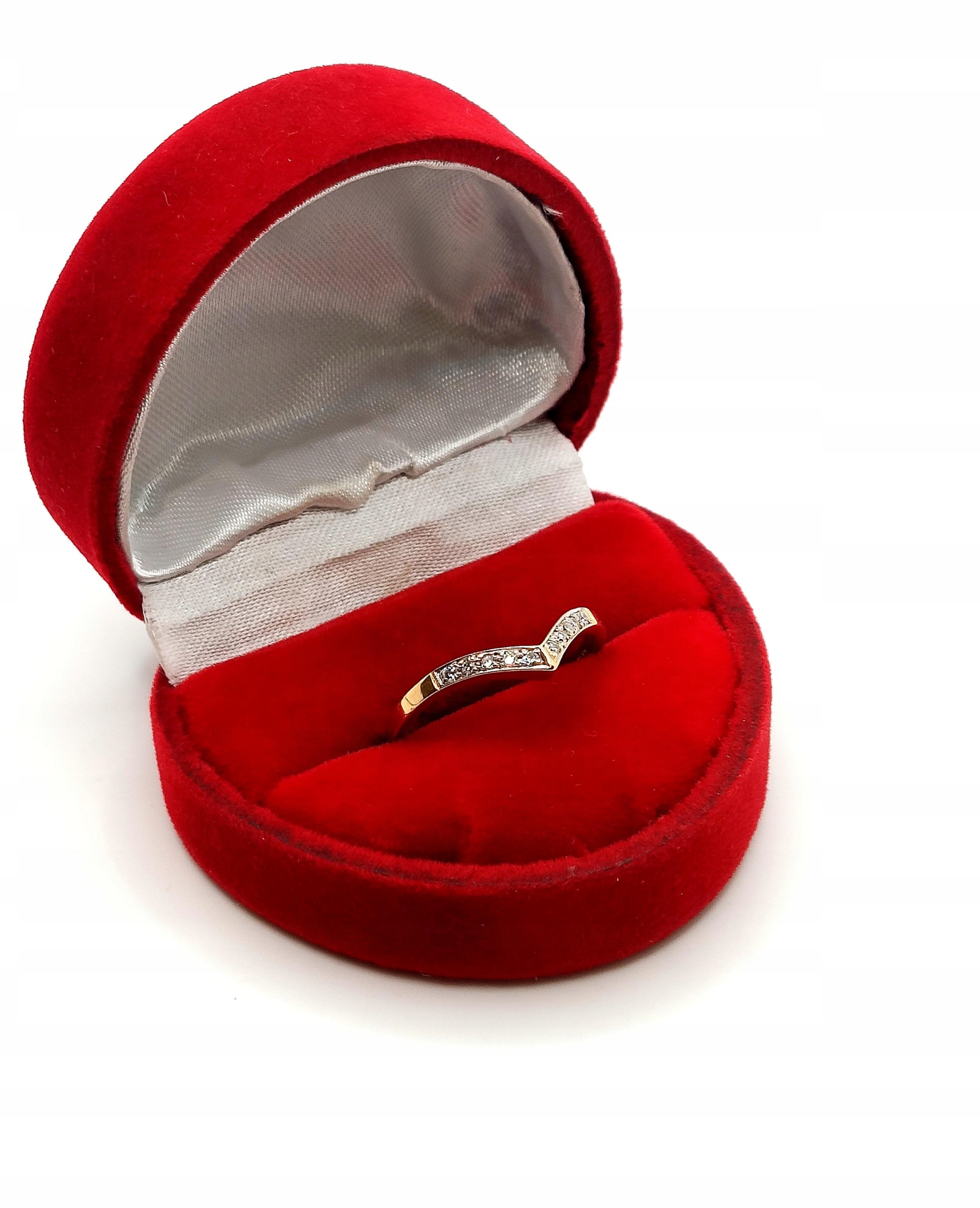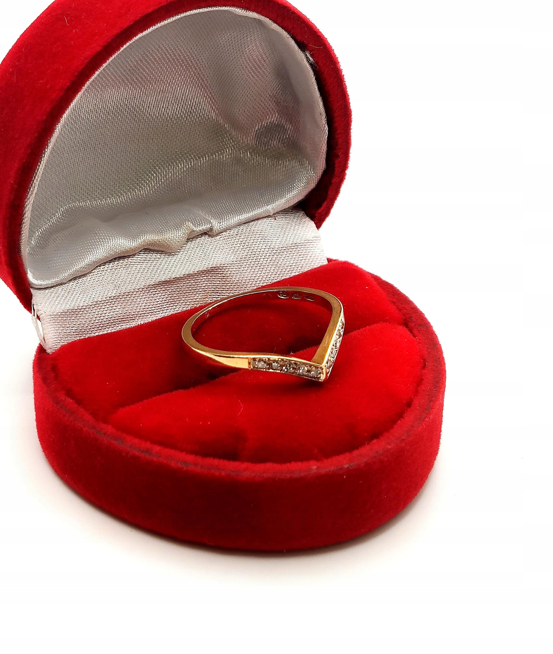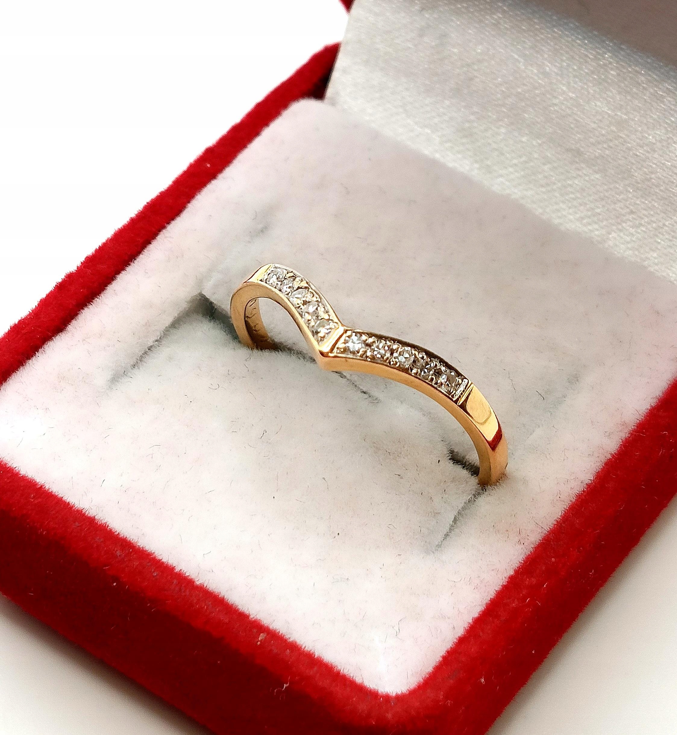 W ofercie na sprzedaż mamy dla Państwa złoty pierścionek lekko wygięty na kształt diademu , oszroniony 8mioma diamentami.