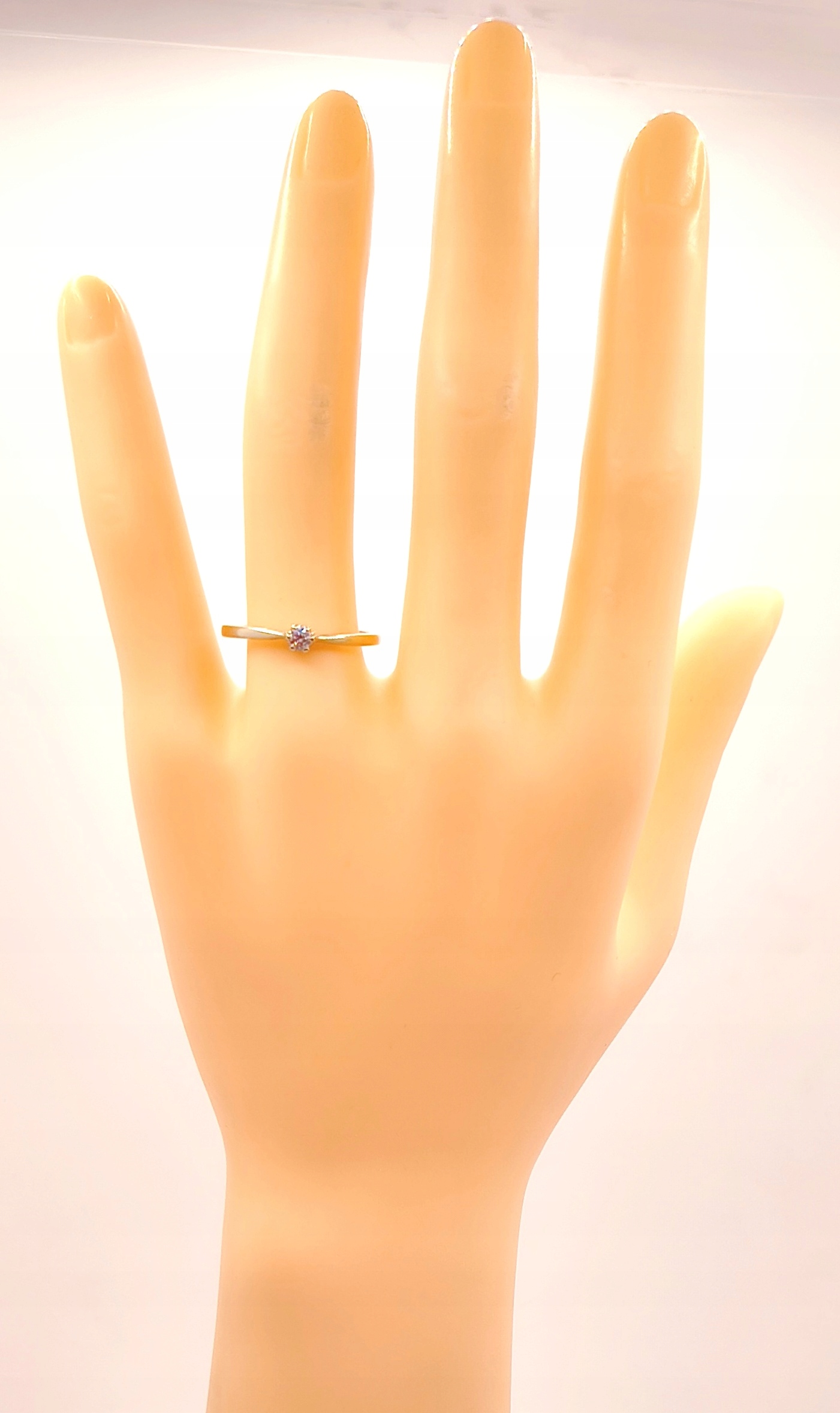 Oferujemy na sprzedaż piękny, złoty pierścionek ozdobiony diamentem.