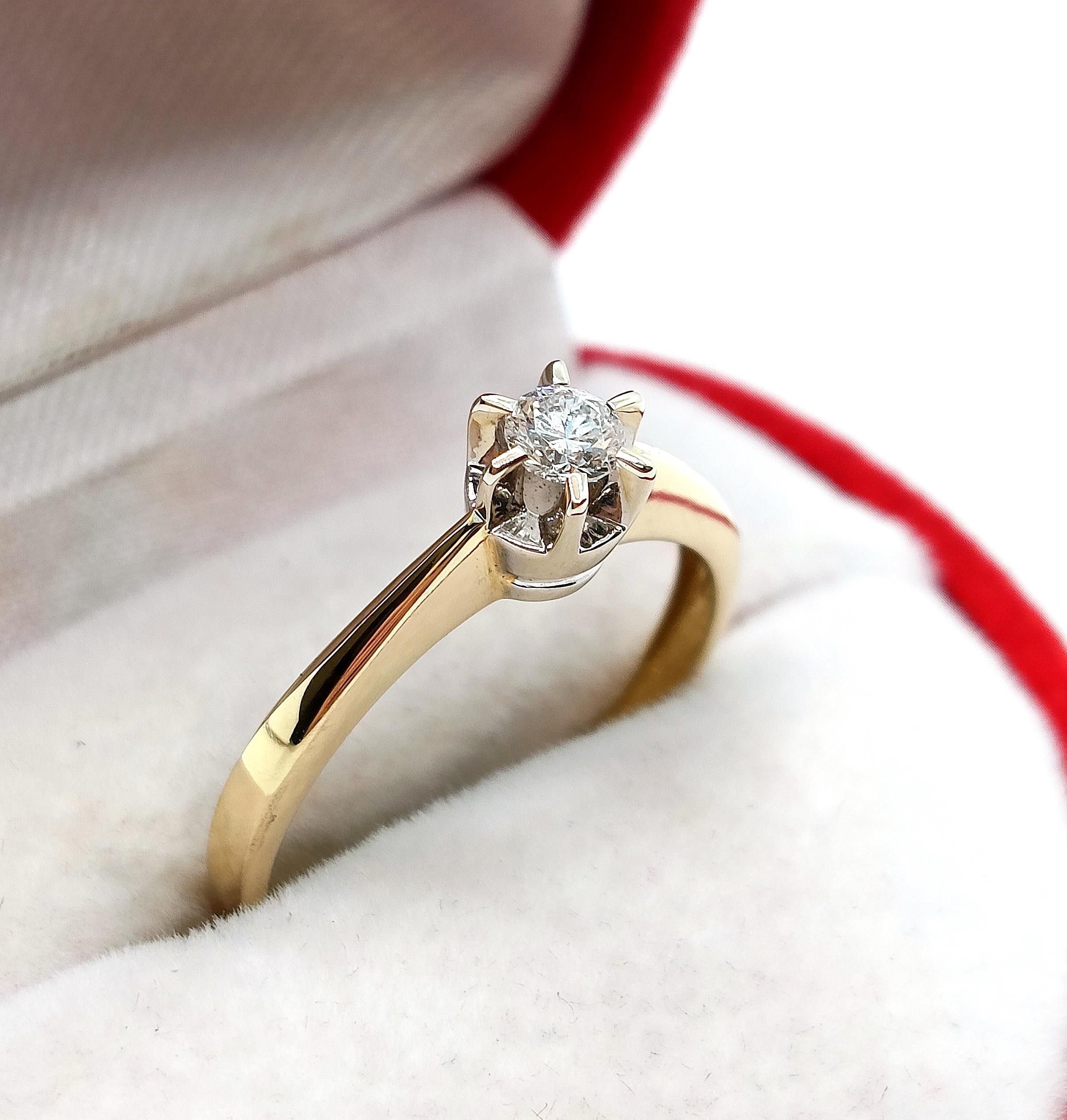 Złoty pierścionek z Diamentem 0,15ct YES PR.585 W:1,52 gr R.12