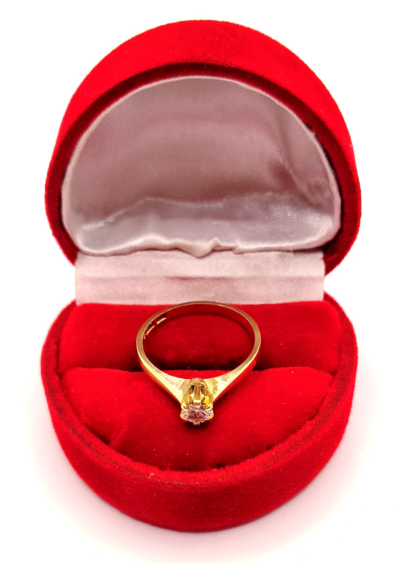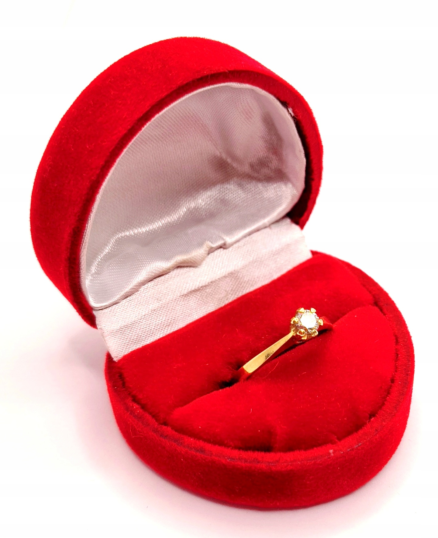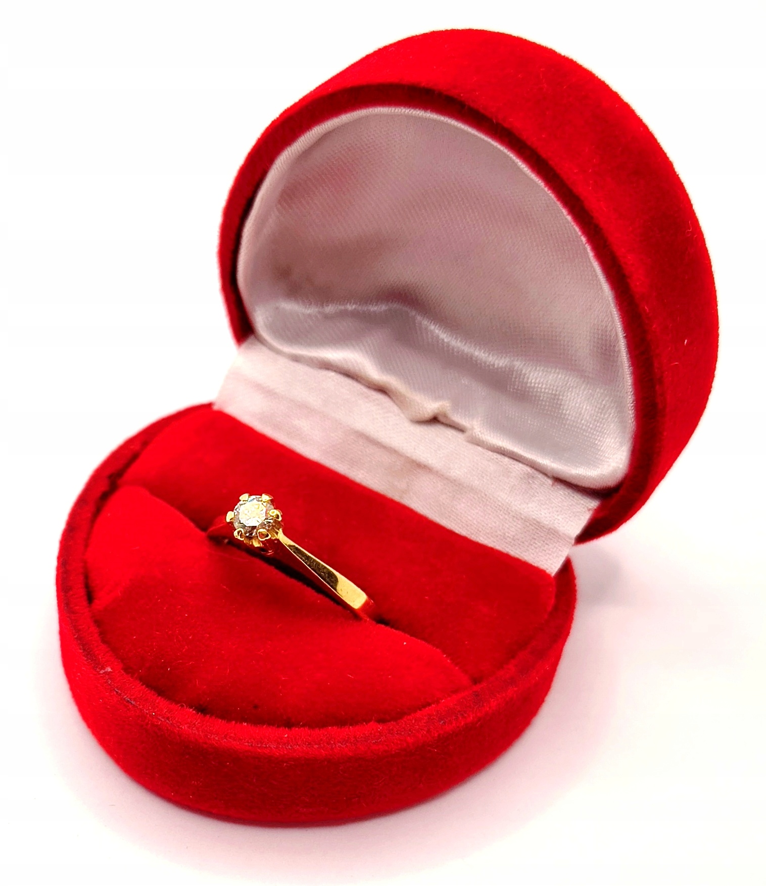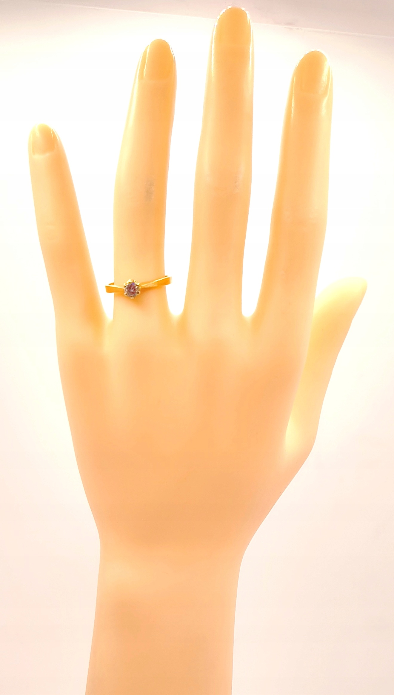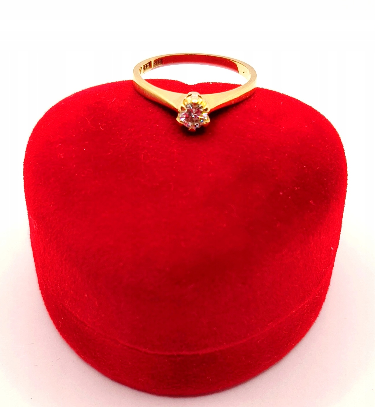 Oferujemy na sprzedaż piękny, złoty pierścionek ozdobiony diamentem.