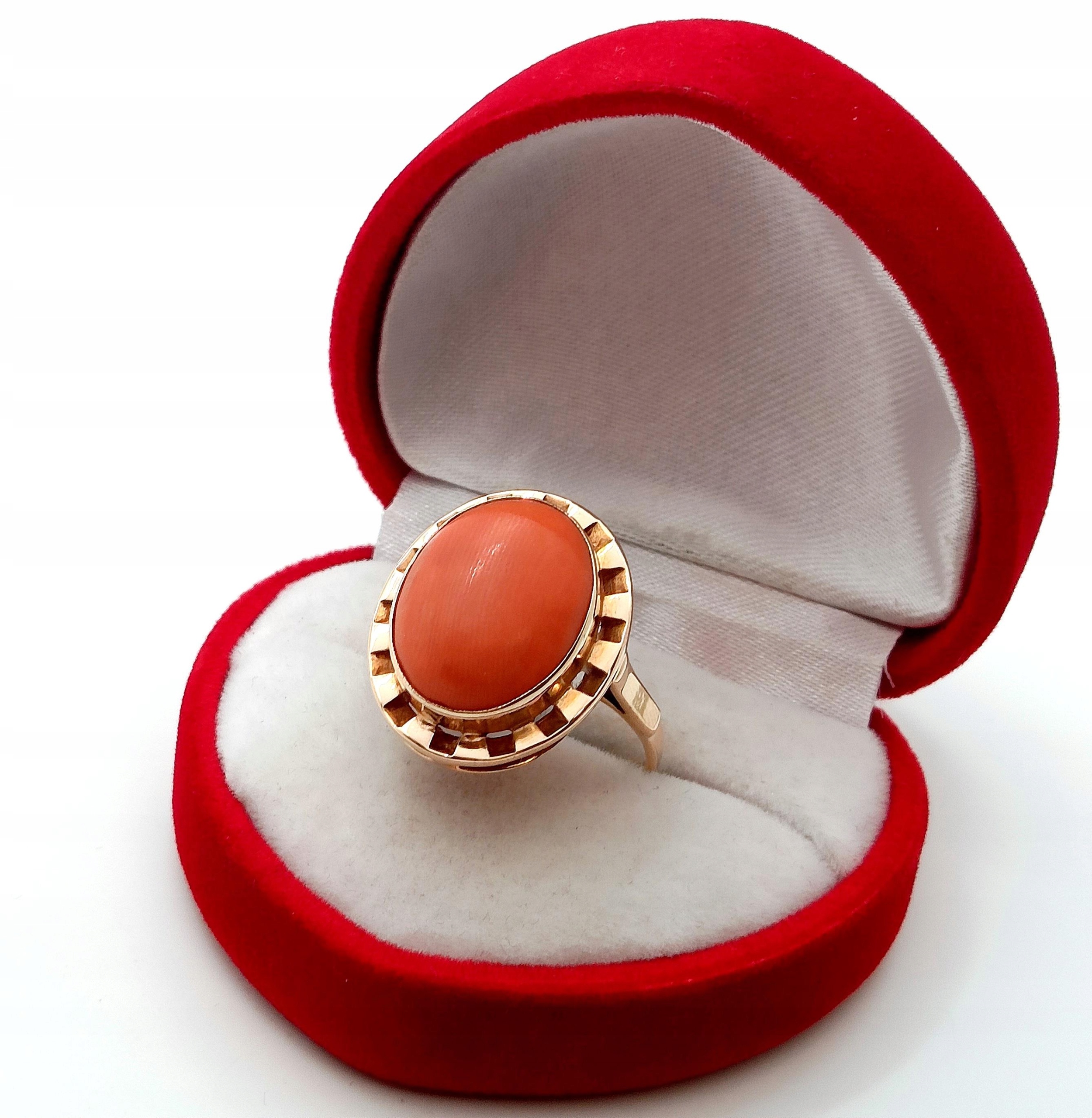 Złoty pierścionek z Koralem Pr.585 W:4,79gr R:15