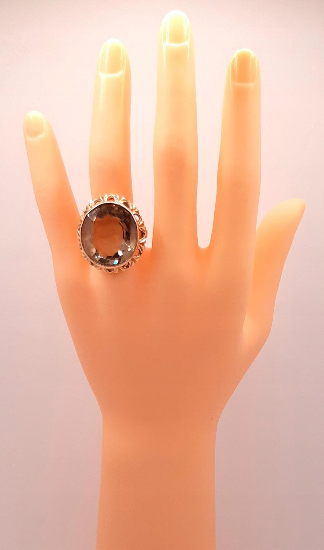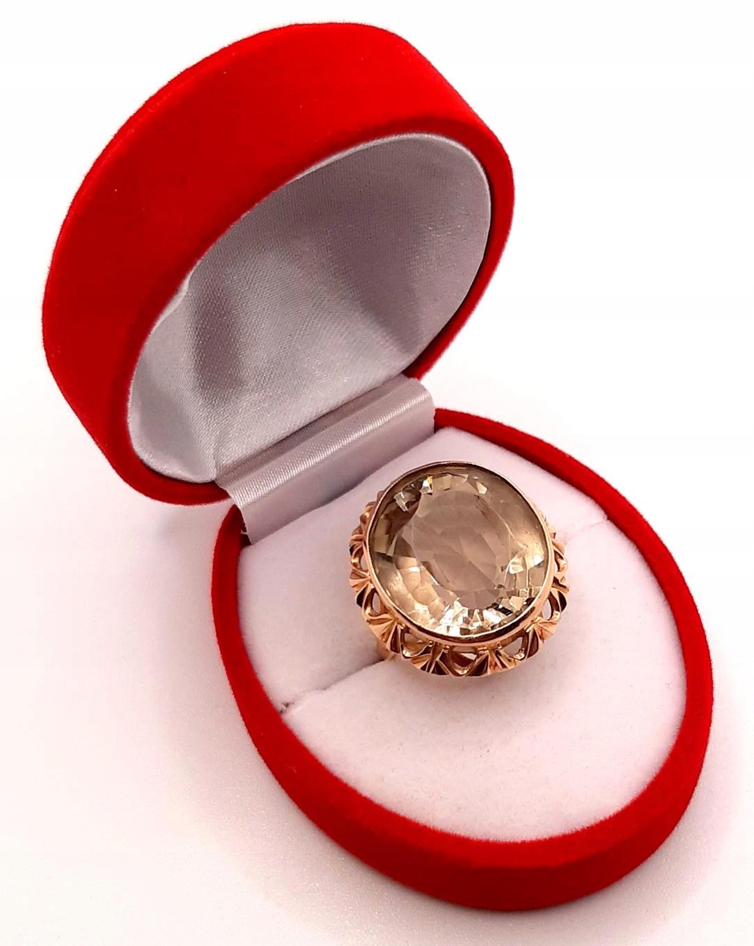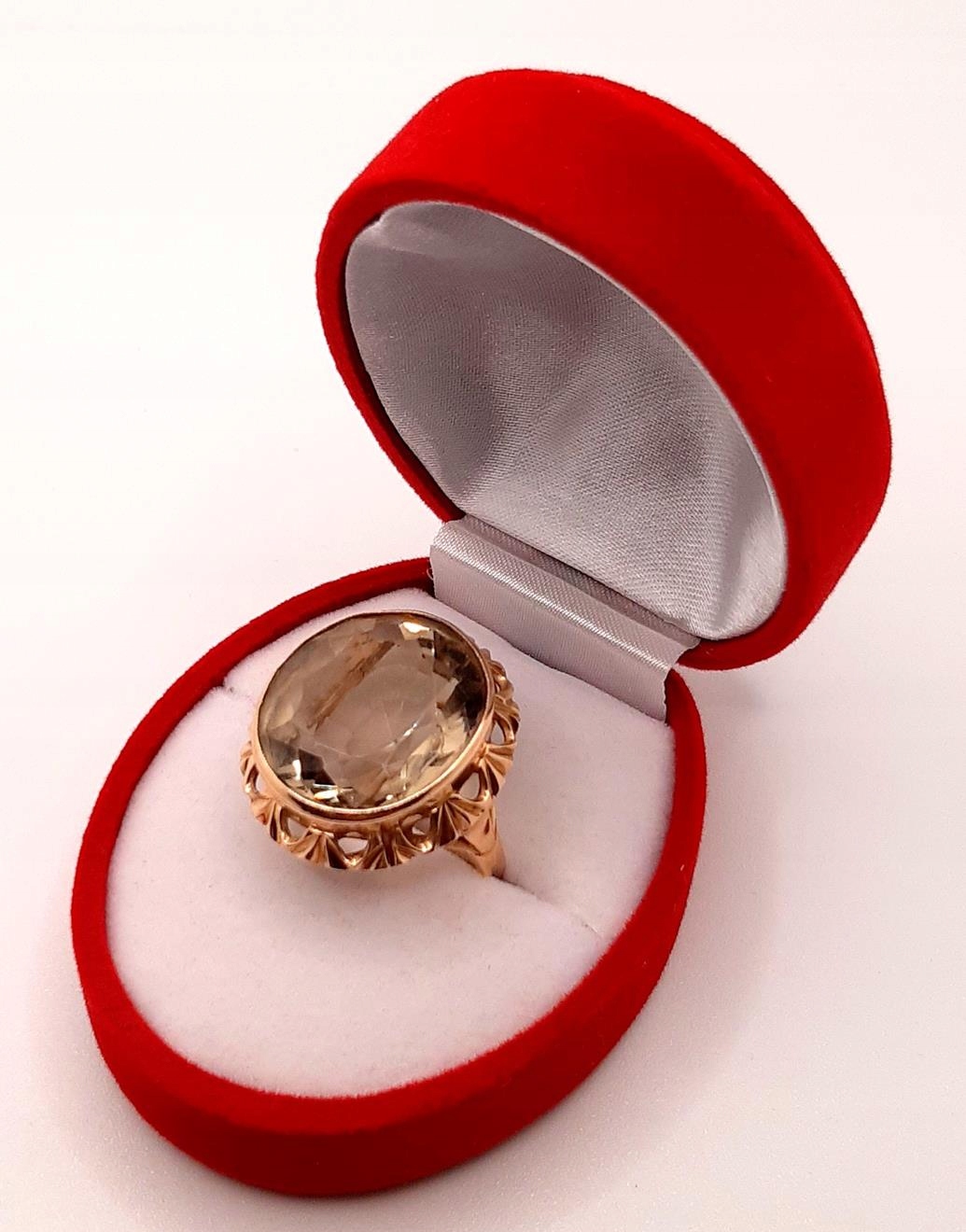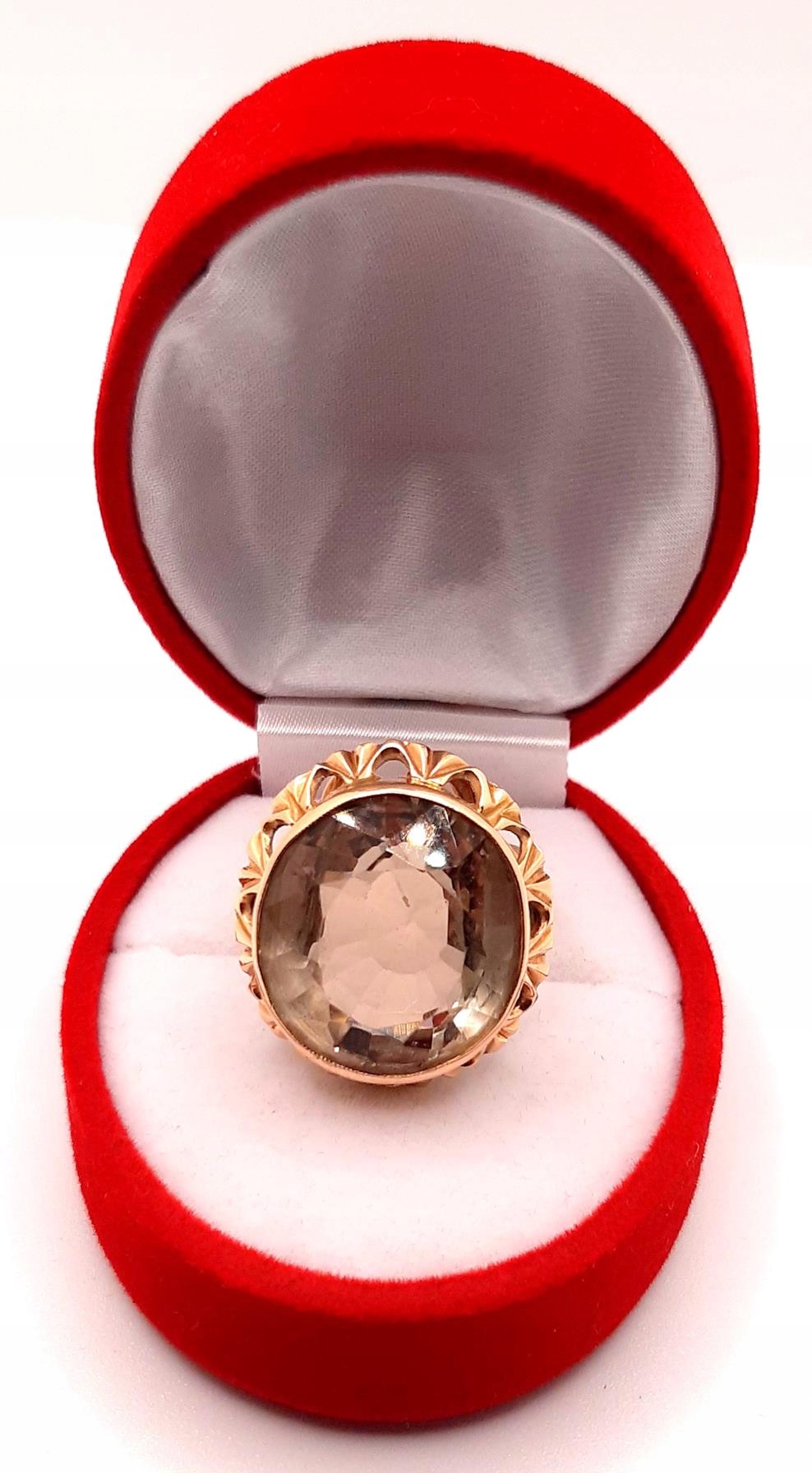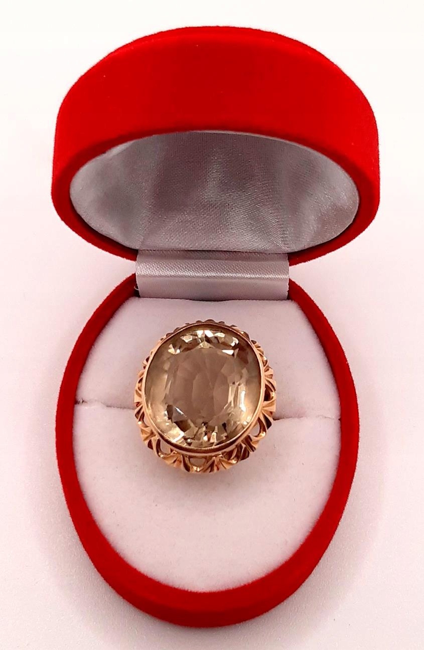 W ofercie sprzedaży posiadamy piękny, złoty pierścionek ozdobiony kwarcem dymnym.