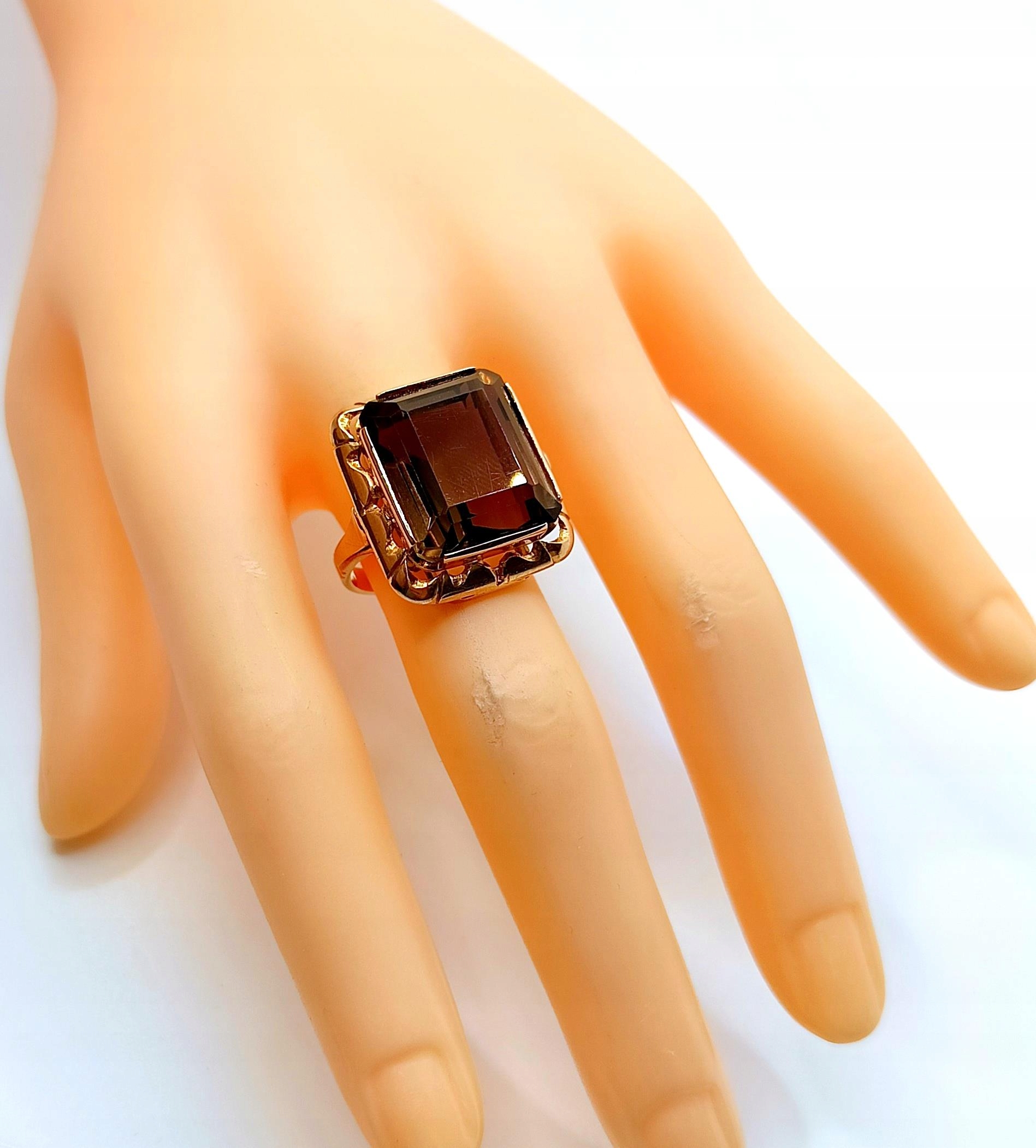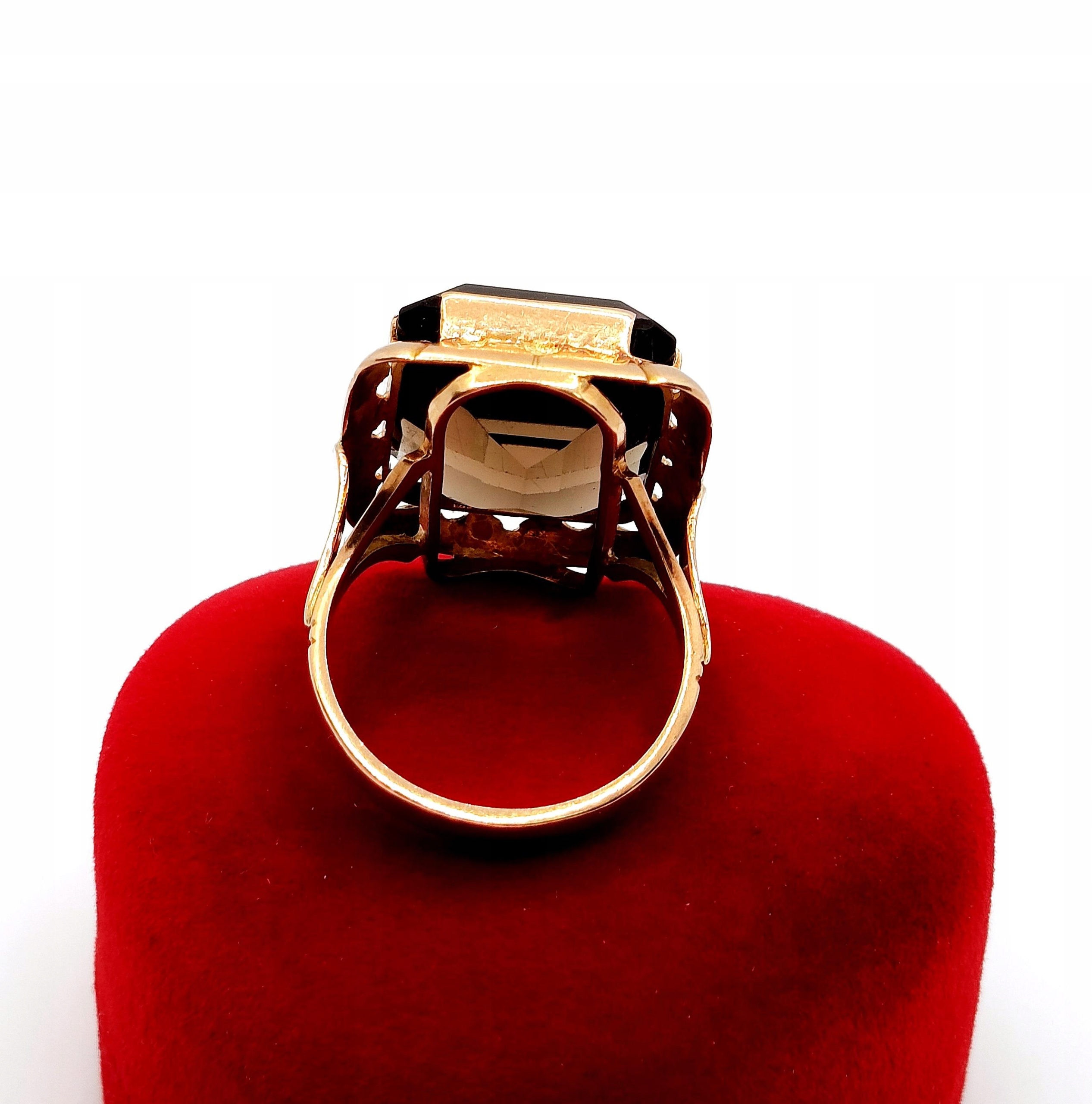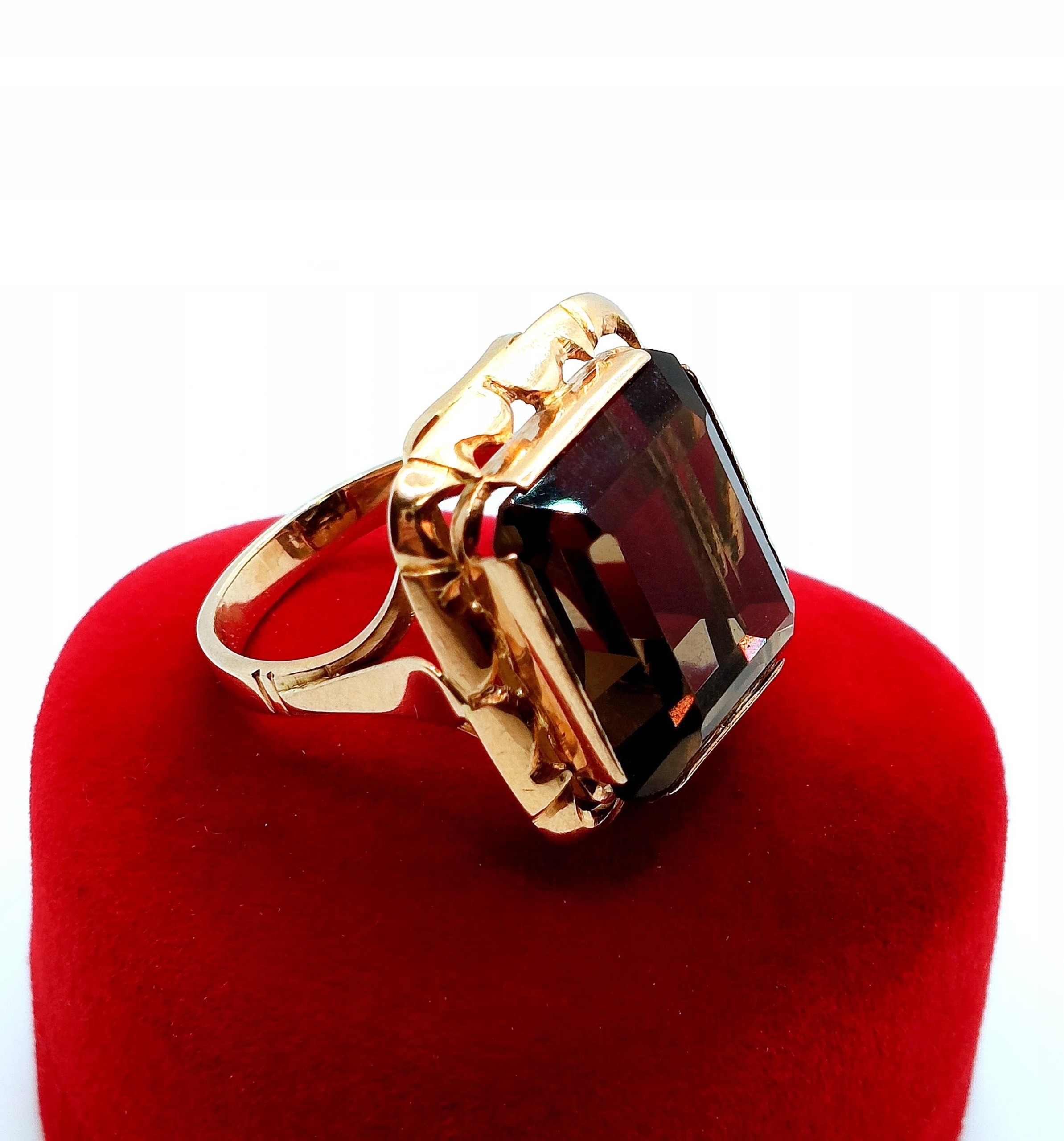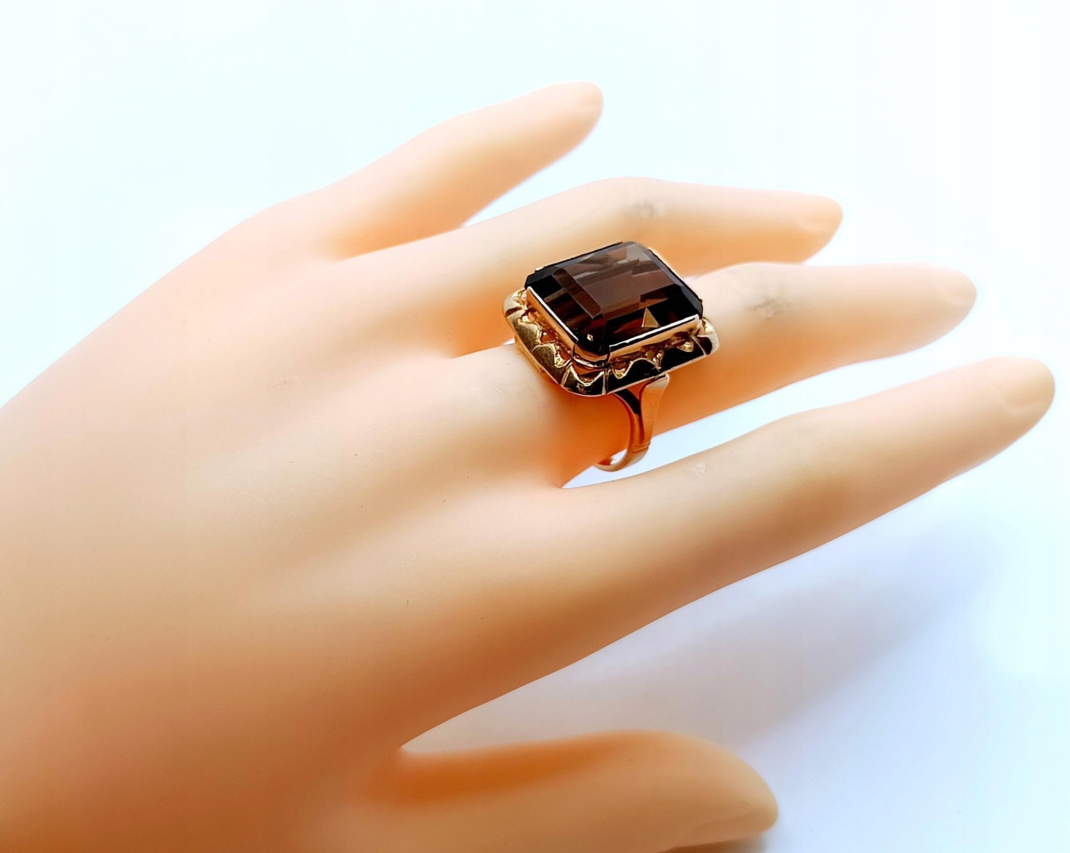 Oferujemy na sprzedaż złoty pierścionek z okazałym Kwarcem Dymnym.