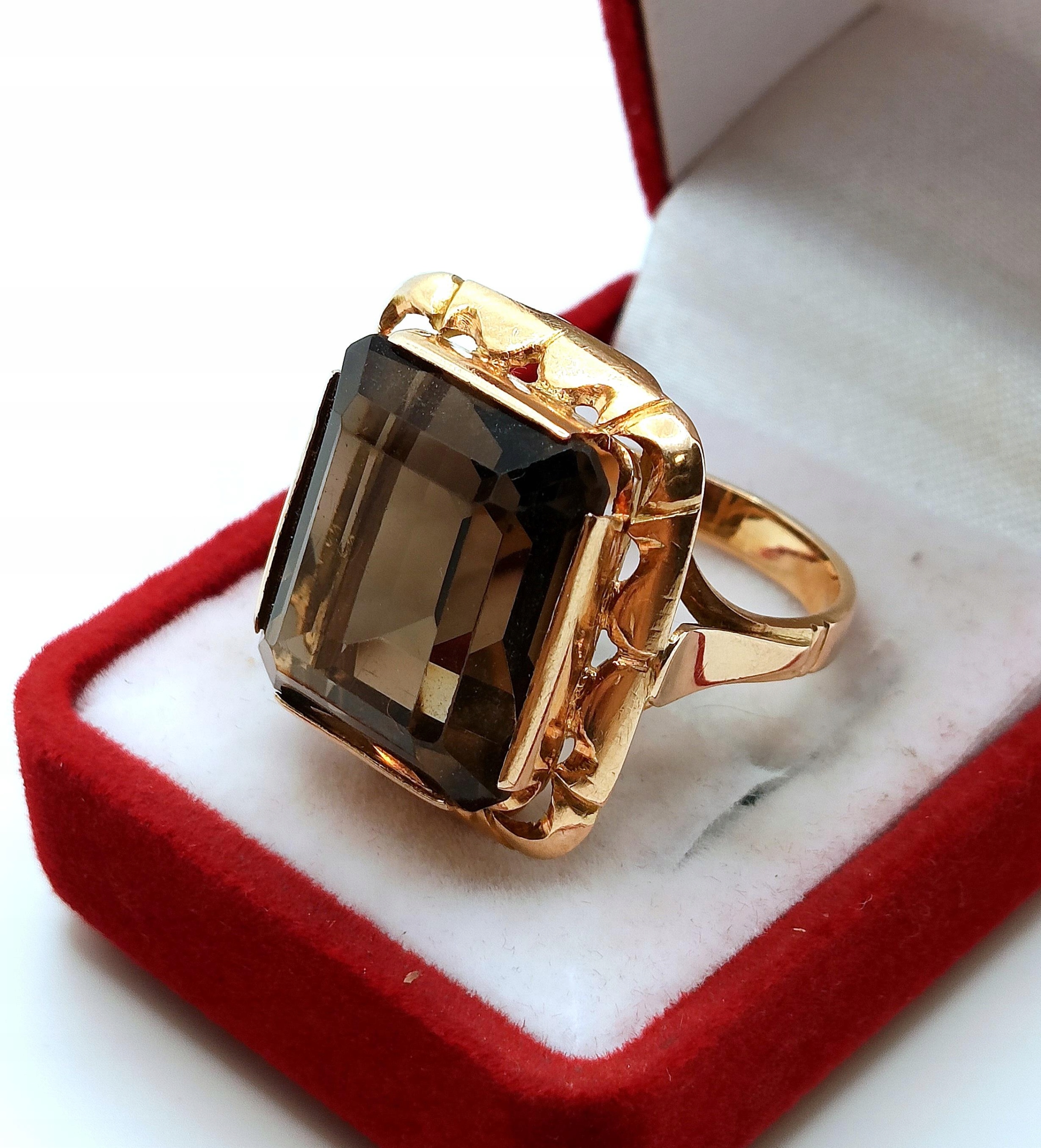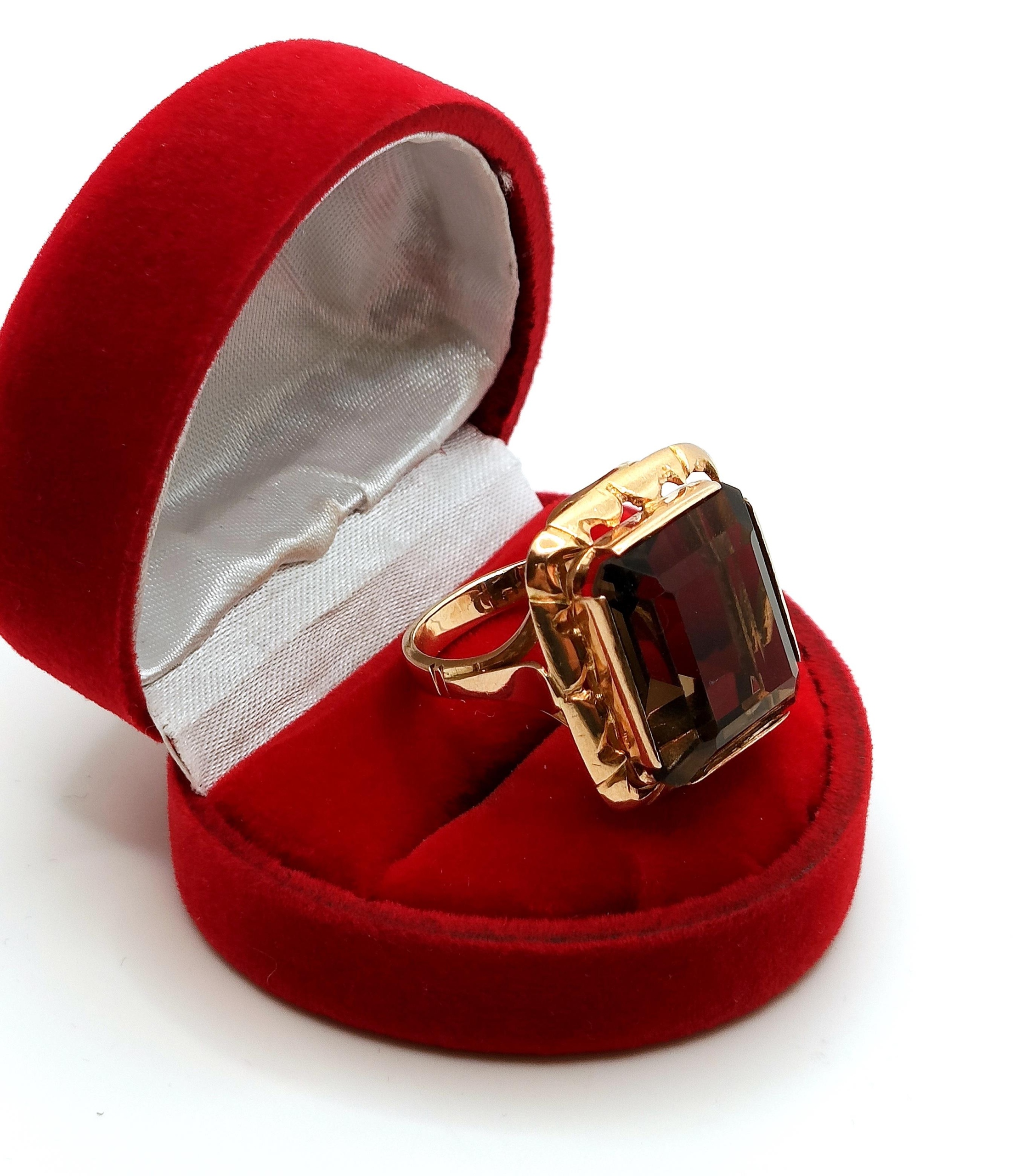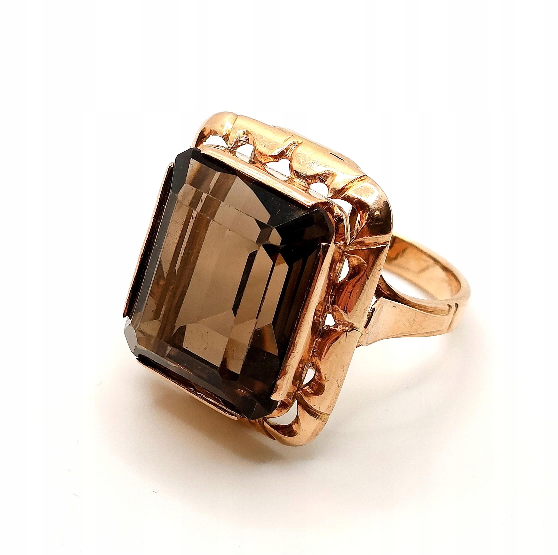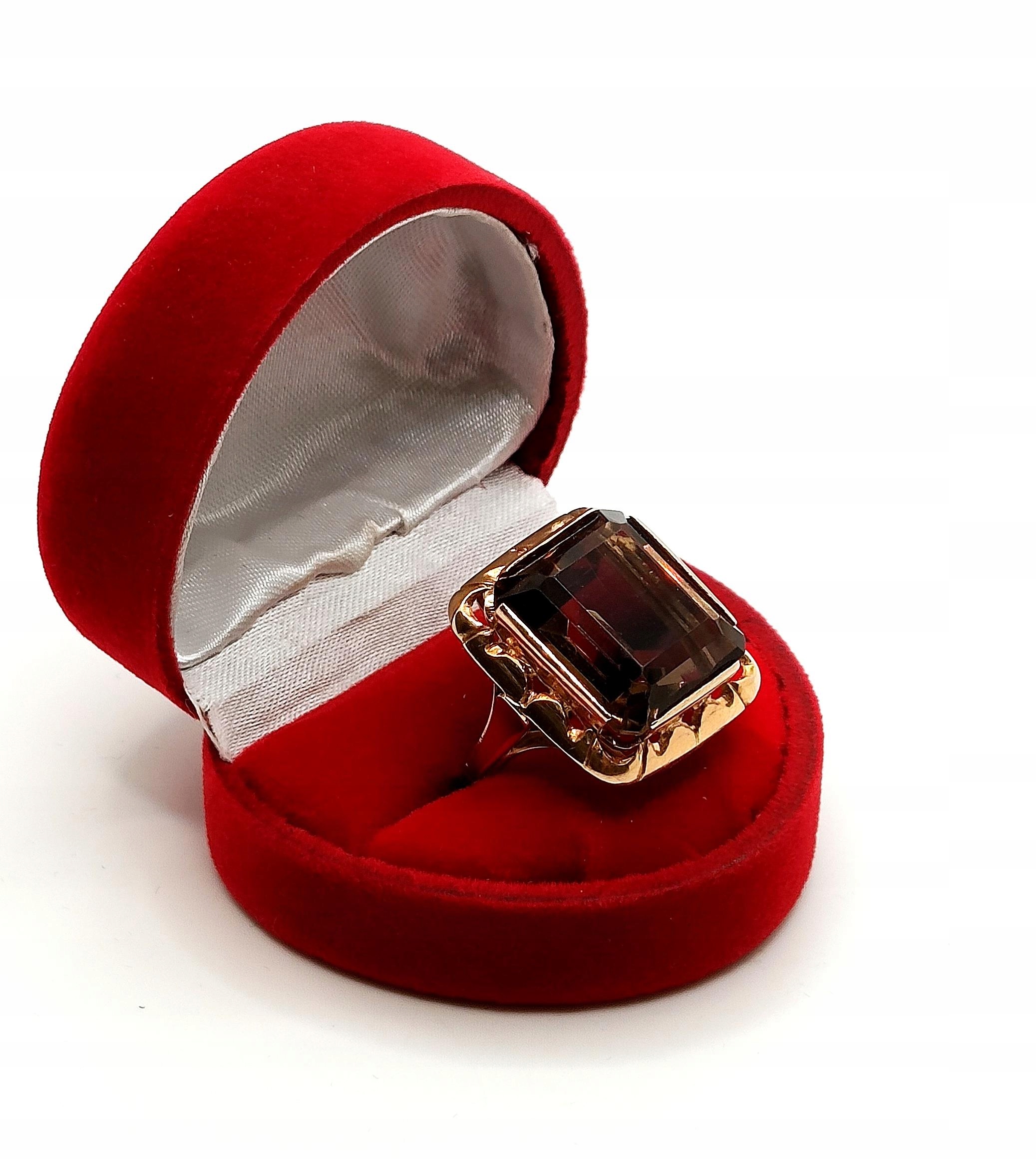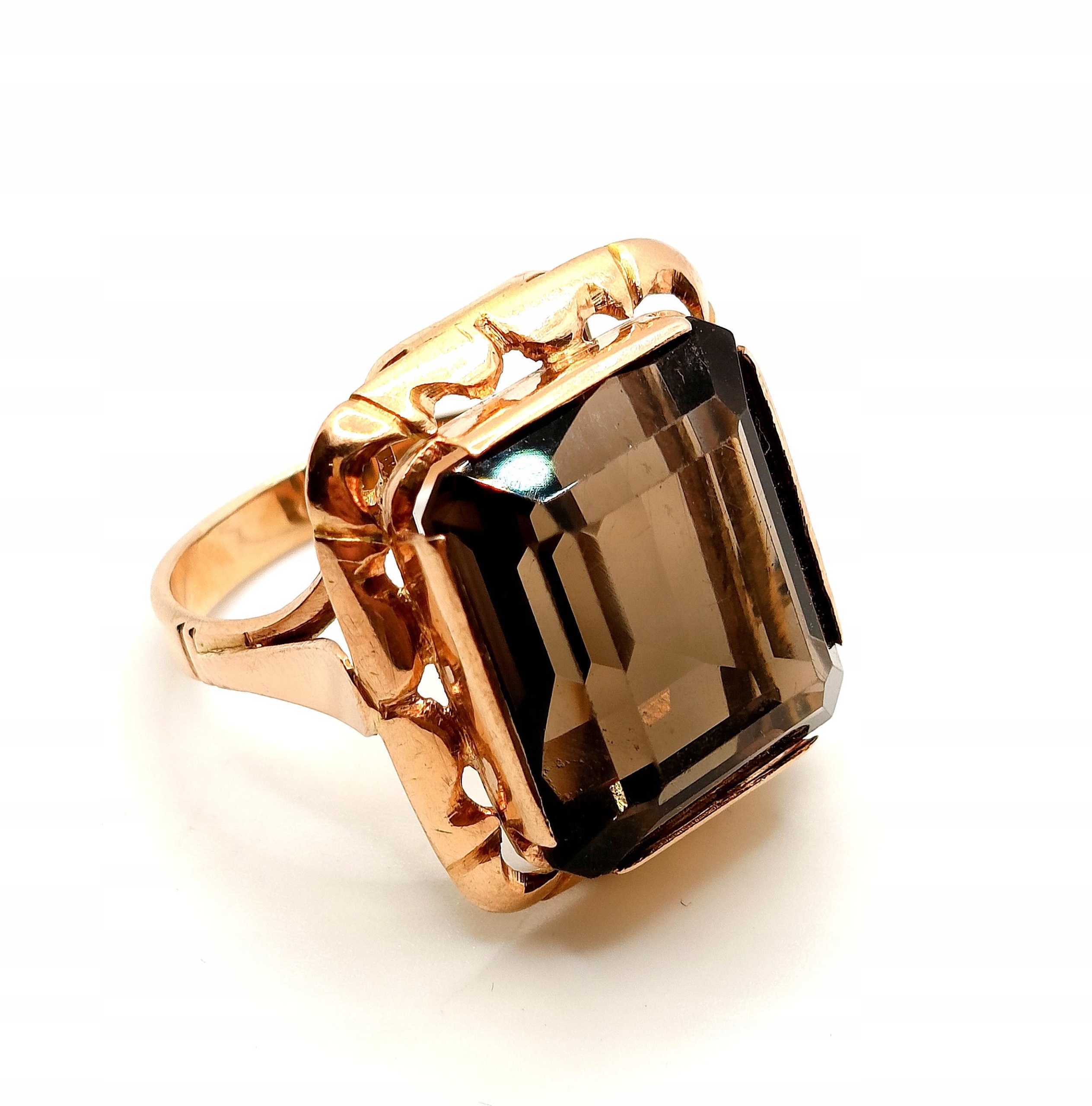 Oferujemy na sprzedaż złoty pierścionek z okazałym Kwarcem Dymnym.