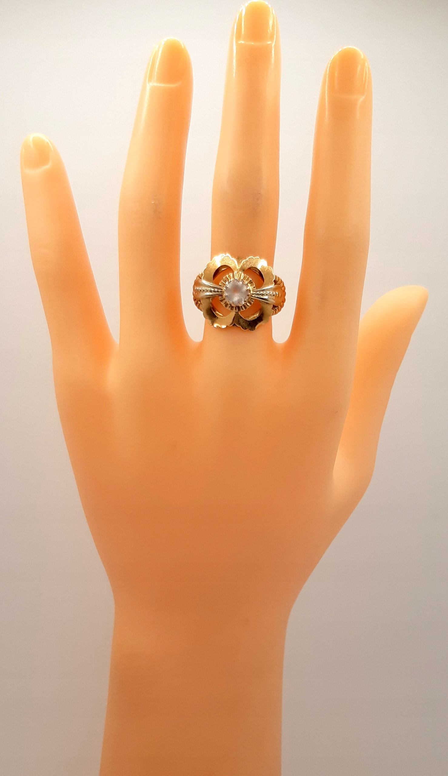 Oferujemy na sprzedaż piękny, złoty pierścionek ozdobiony kwarcem.