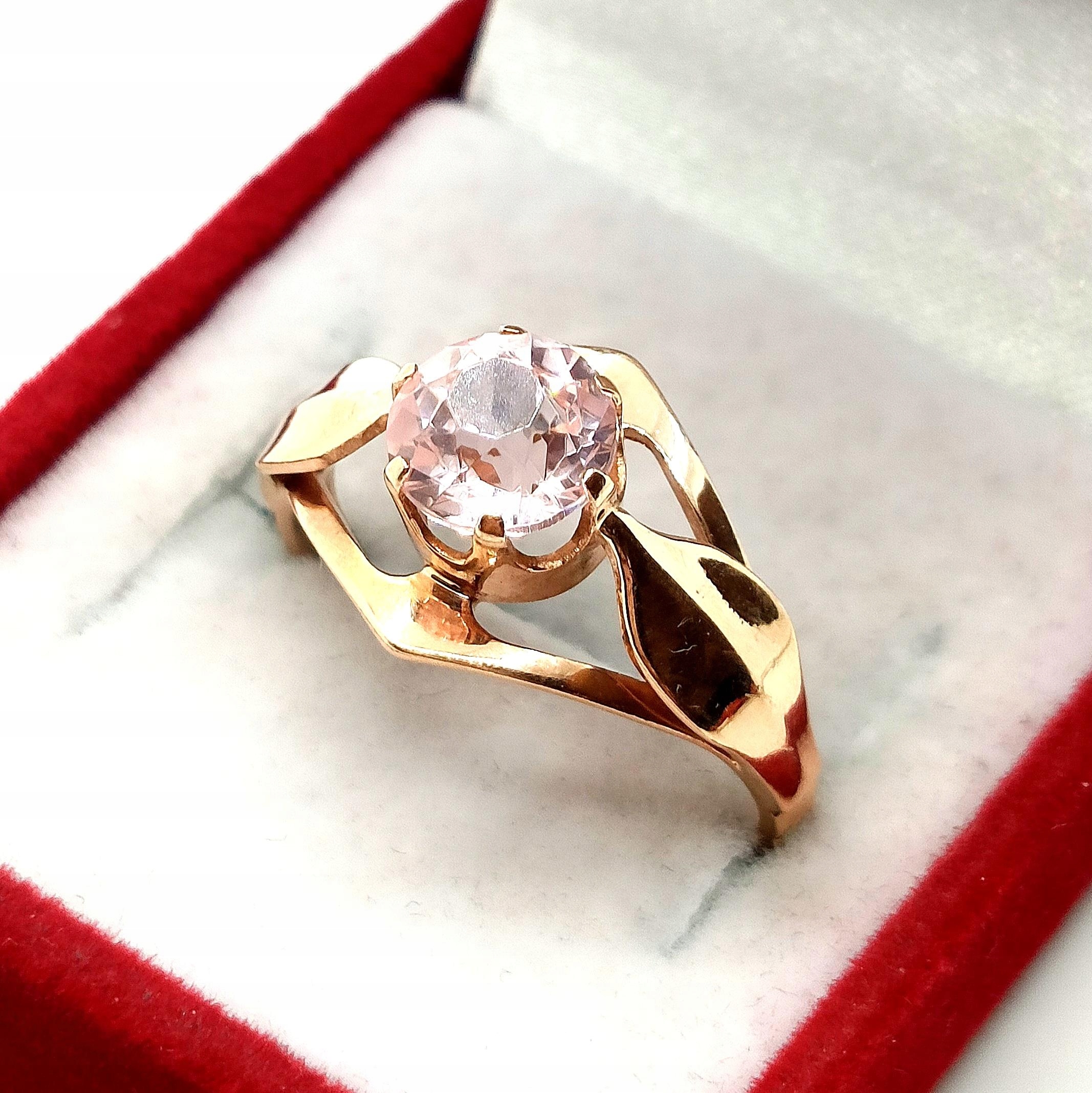 Złoty pierścionek z Morganitem Pr.583 W:2,93gr Roz.16