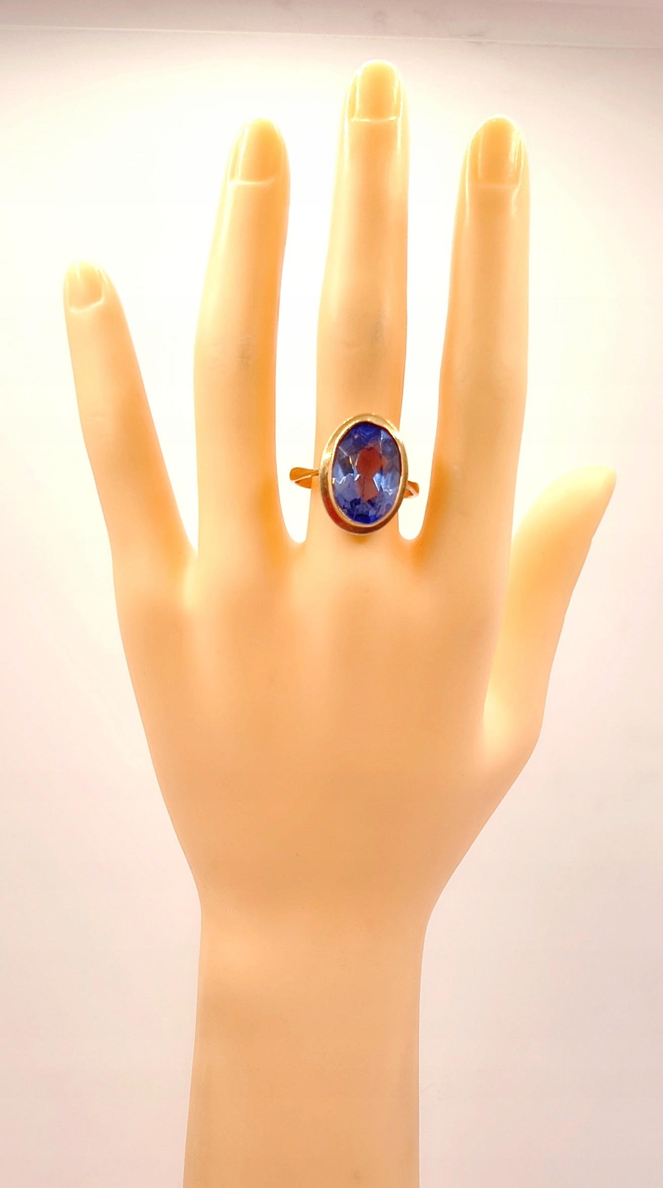 W ofercie na sprzedaż mamy dla Państwa piękny, złoty pierścionek ozdobiony niebieskim kamieniem.