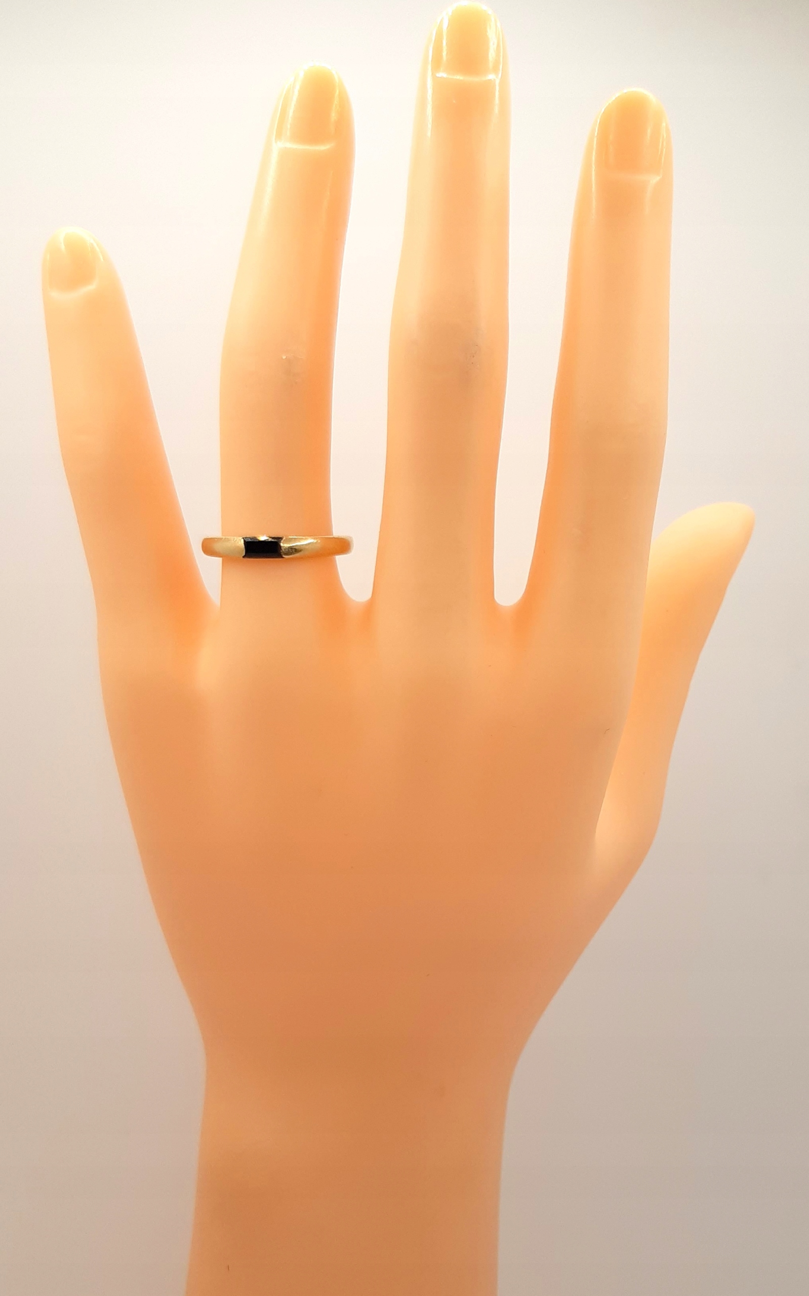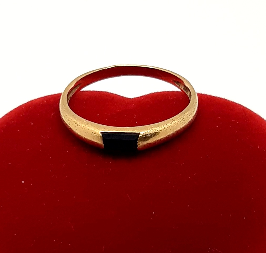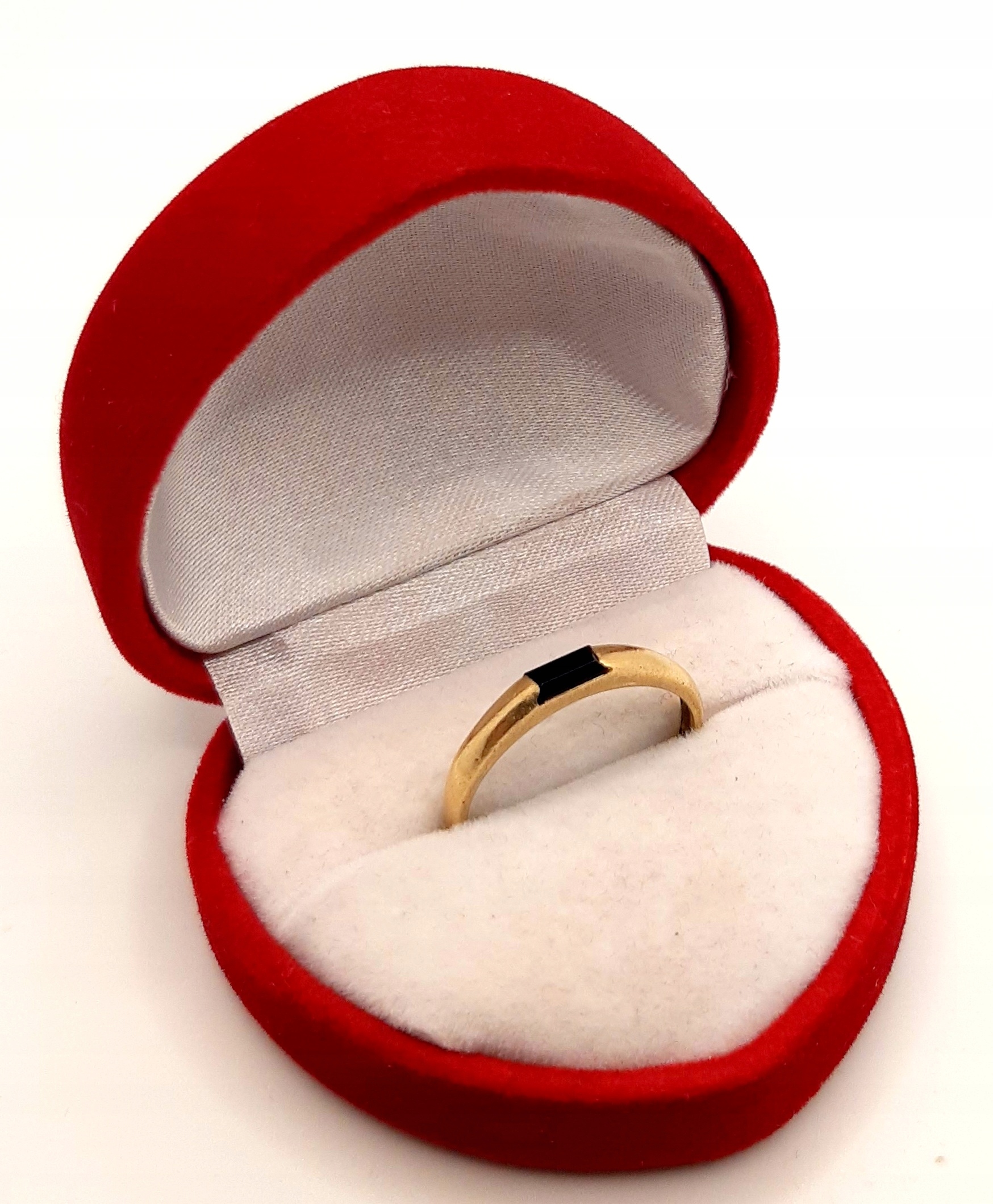Oferujemy na sprzedaż złoty pierścionek ozdobiony onyksem.