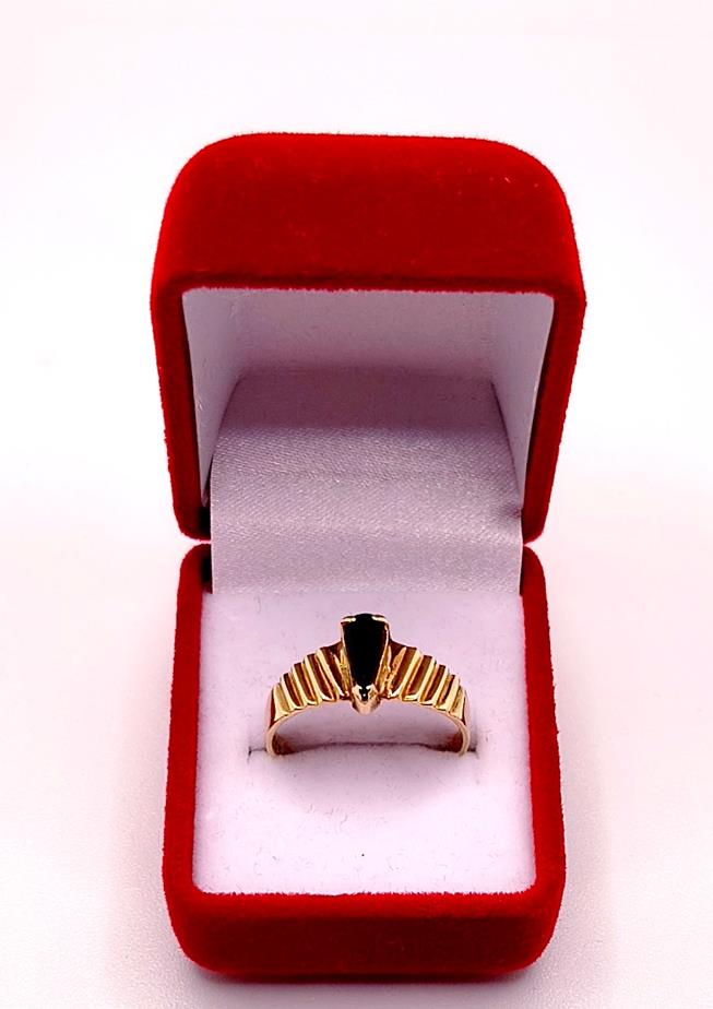 W ofercie sprzedaży posiadamy piękny, złoty pierścionek ozdobiony onyksem.