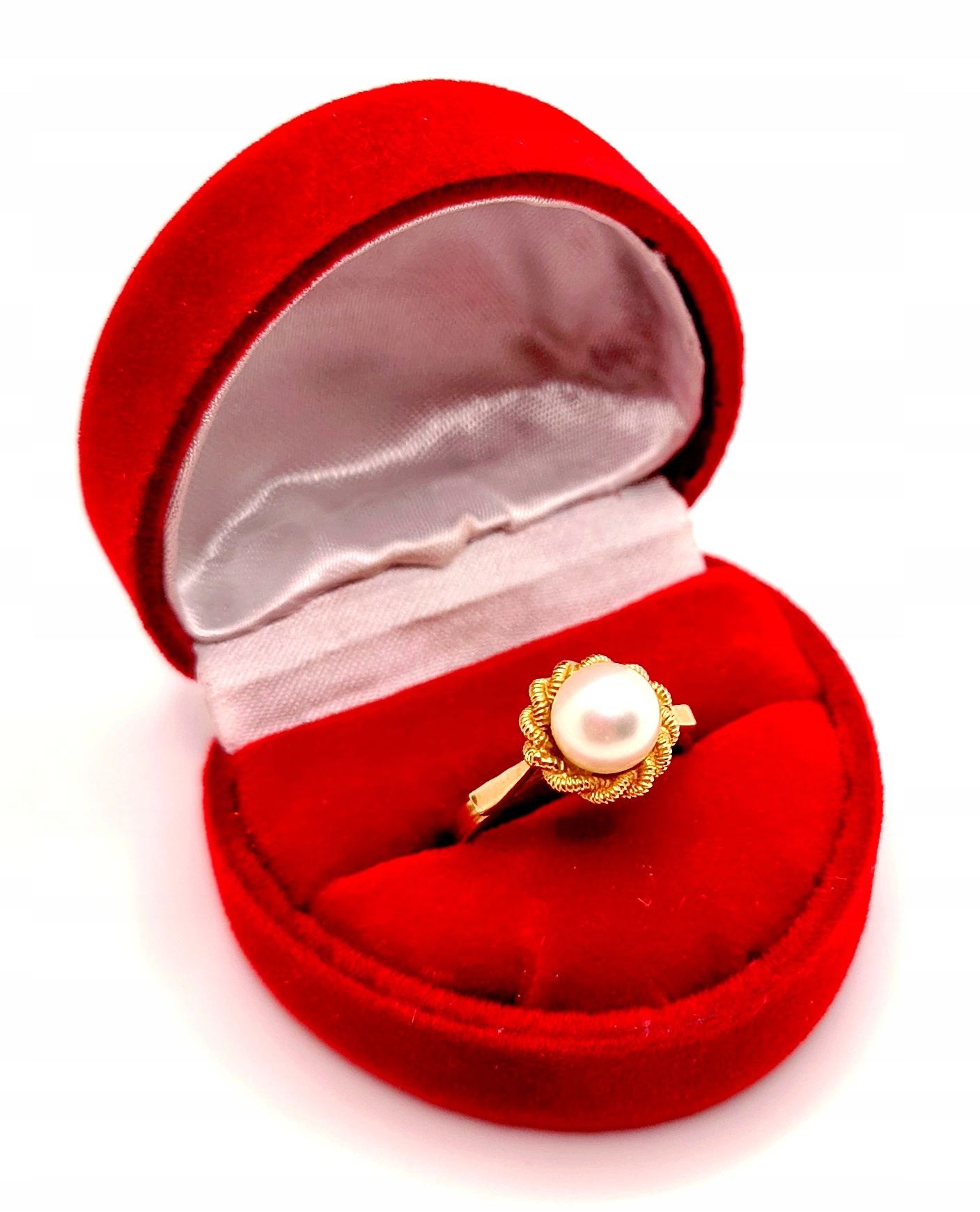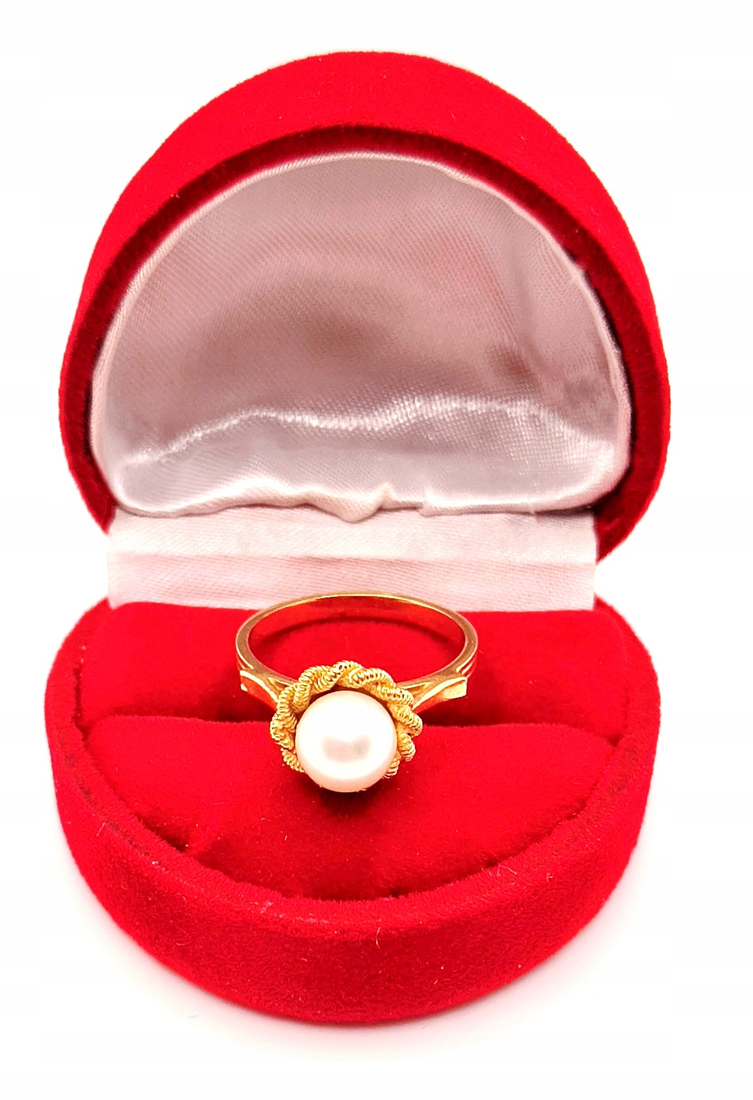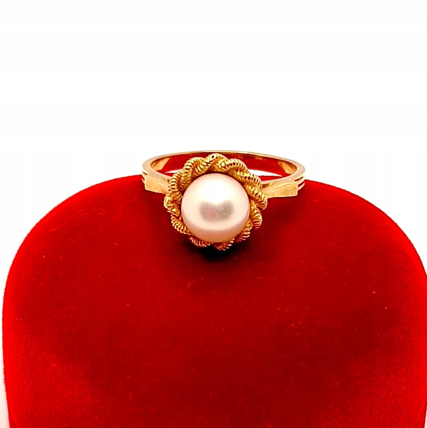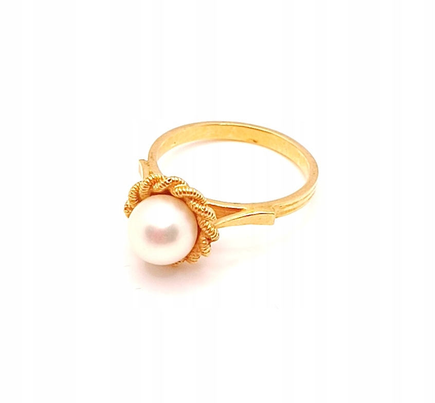 Oferujemy na sprzedaż piękny, złoty pierścionek ozdobiony perłą hodowlaną.