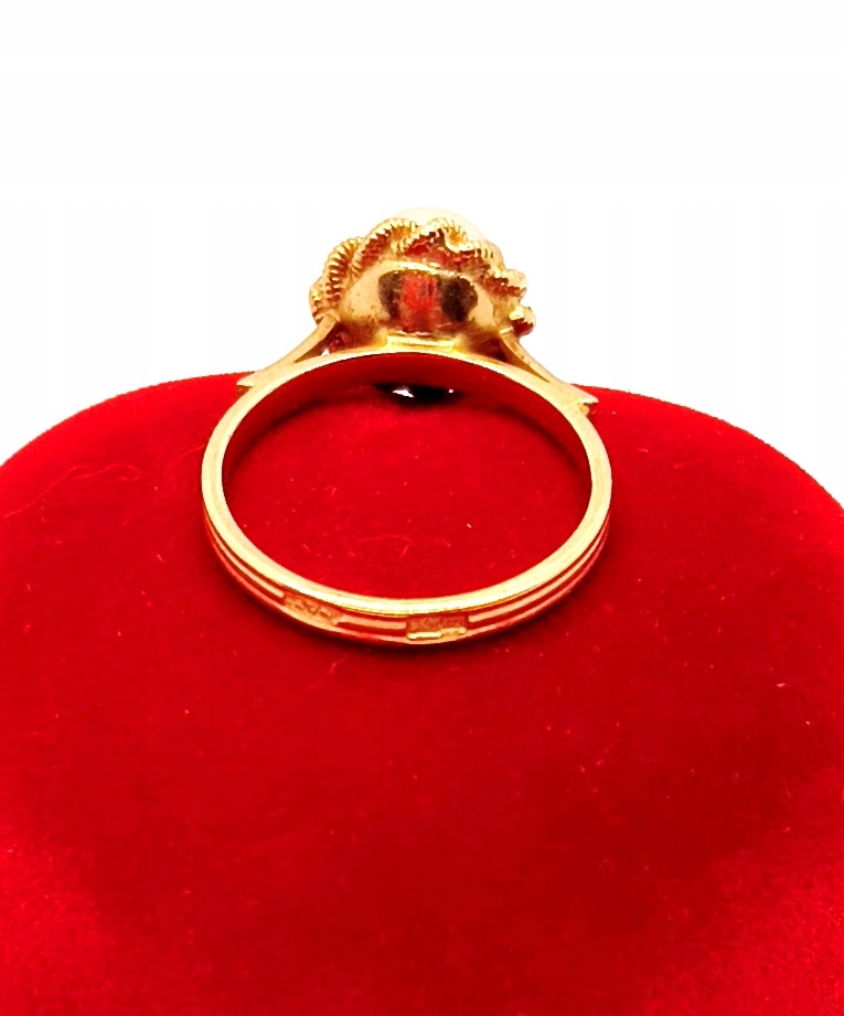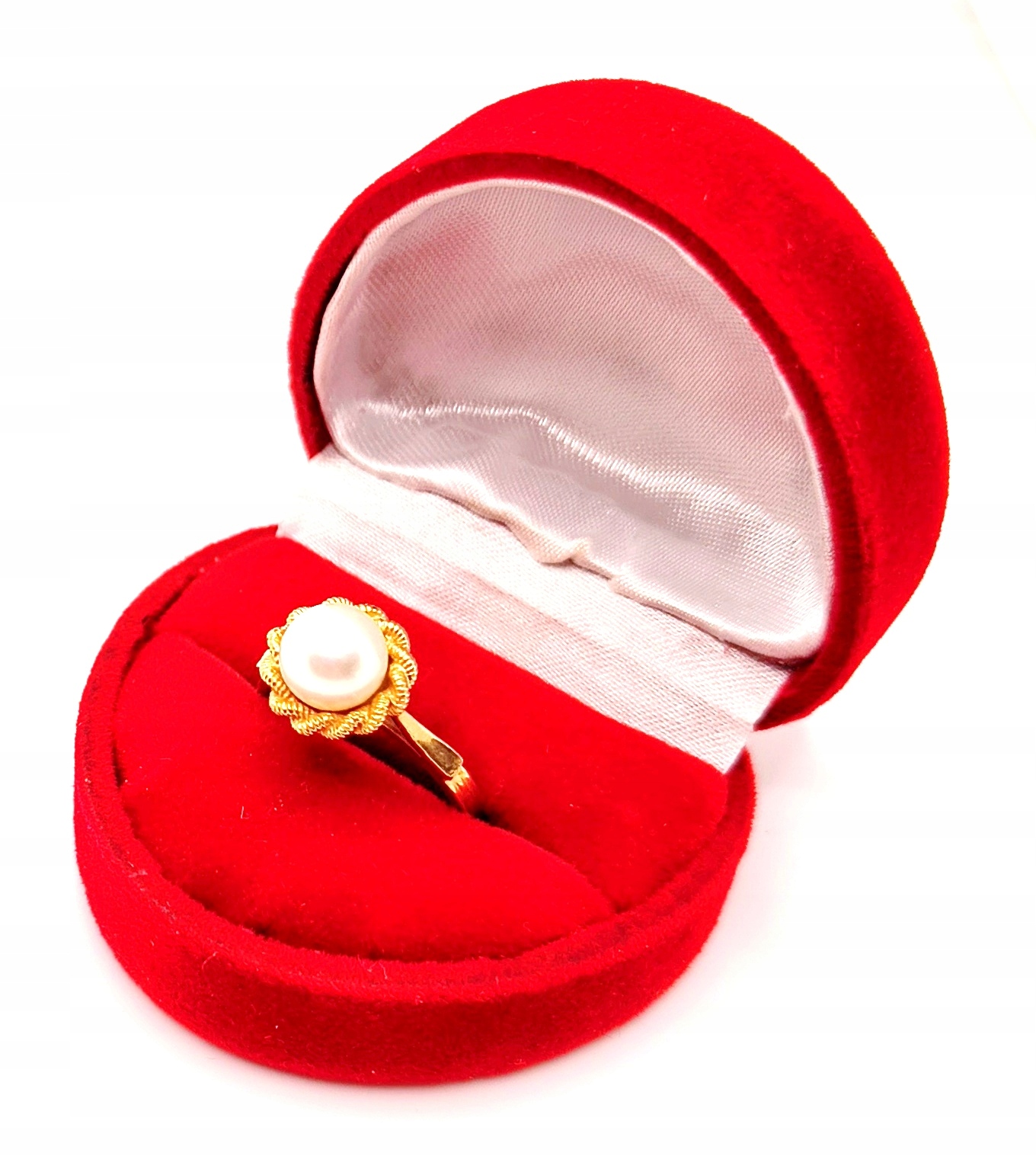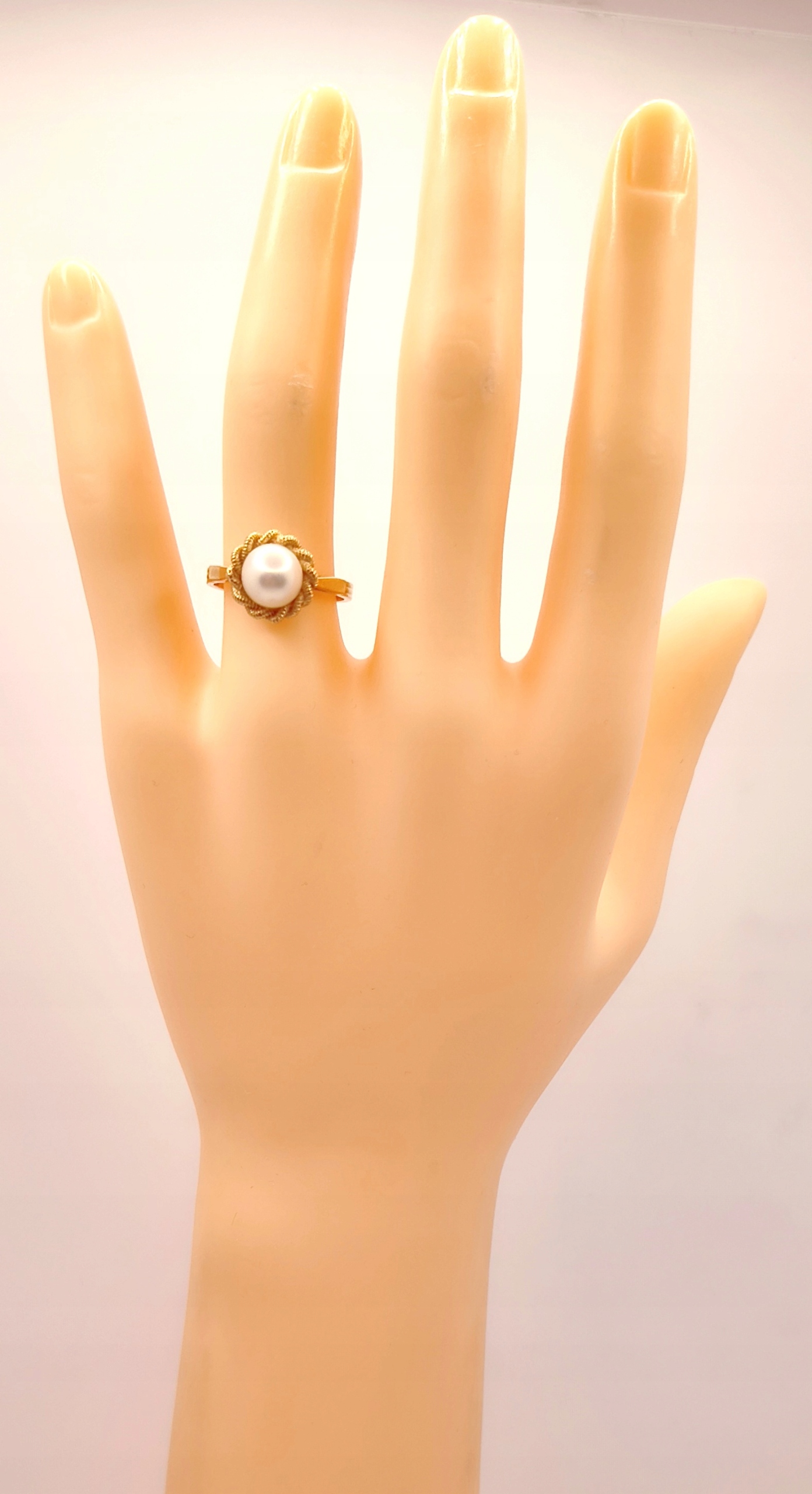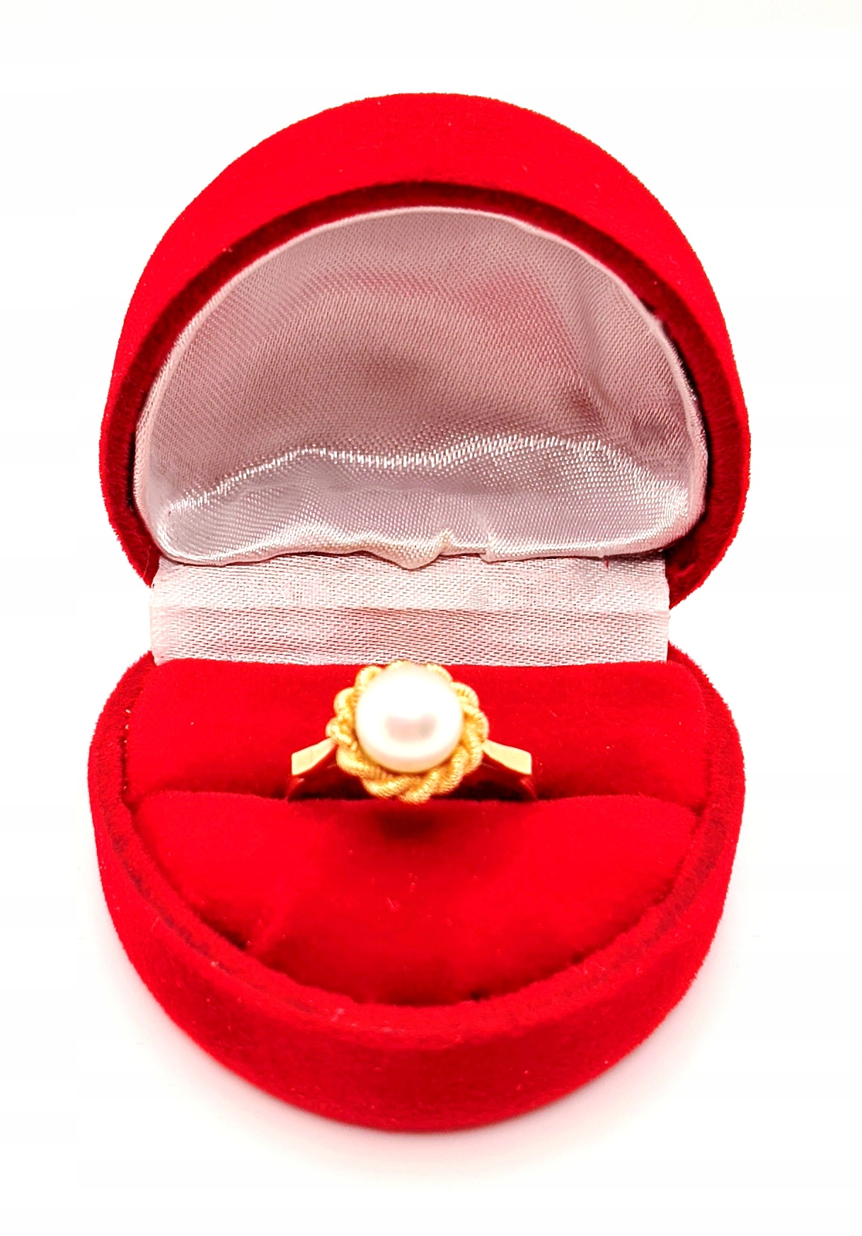 Oferujemy na sprzedaż piękny, złoty pierścionek ozdobiony perłą hodowlaną.