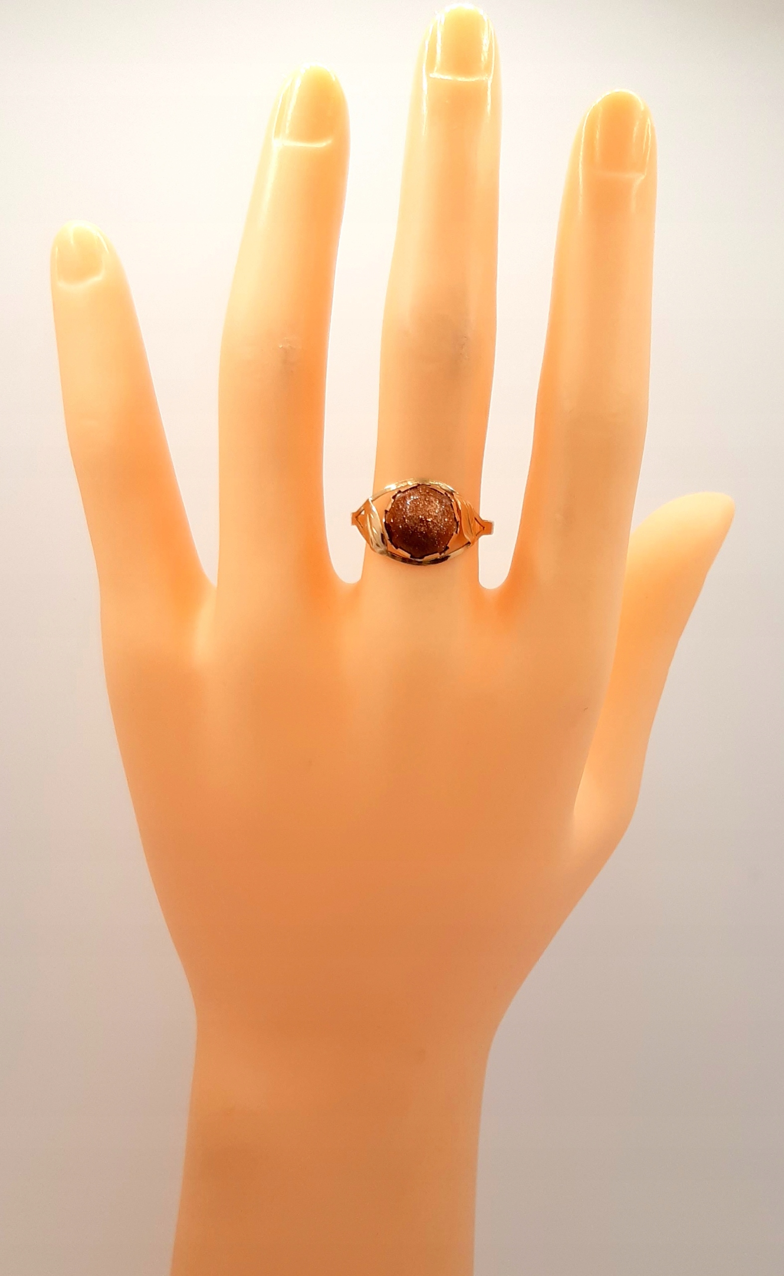 Oferujemy na sprzedaż piękny, złoty pierścionek ozdobiony piaskiem pustyni.