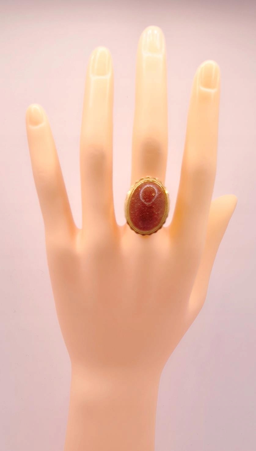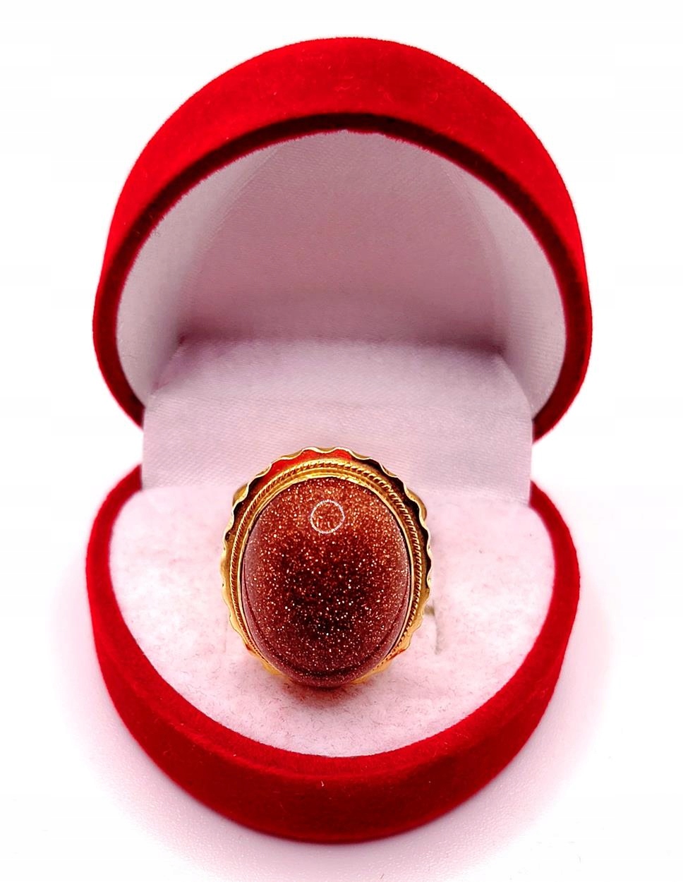 W ofercie sprzedaży posiadamy piękny, złoty pierścionek ozdobiony piaskiem pustyni.