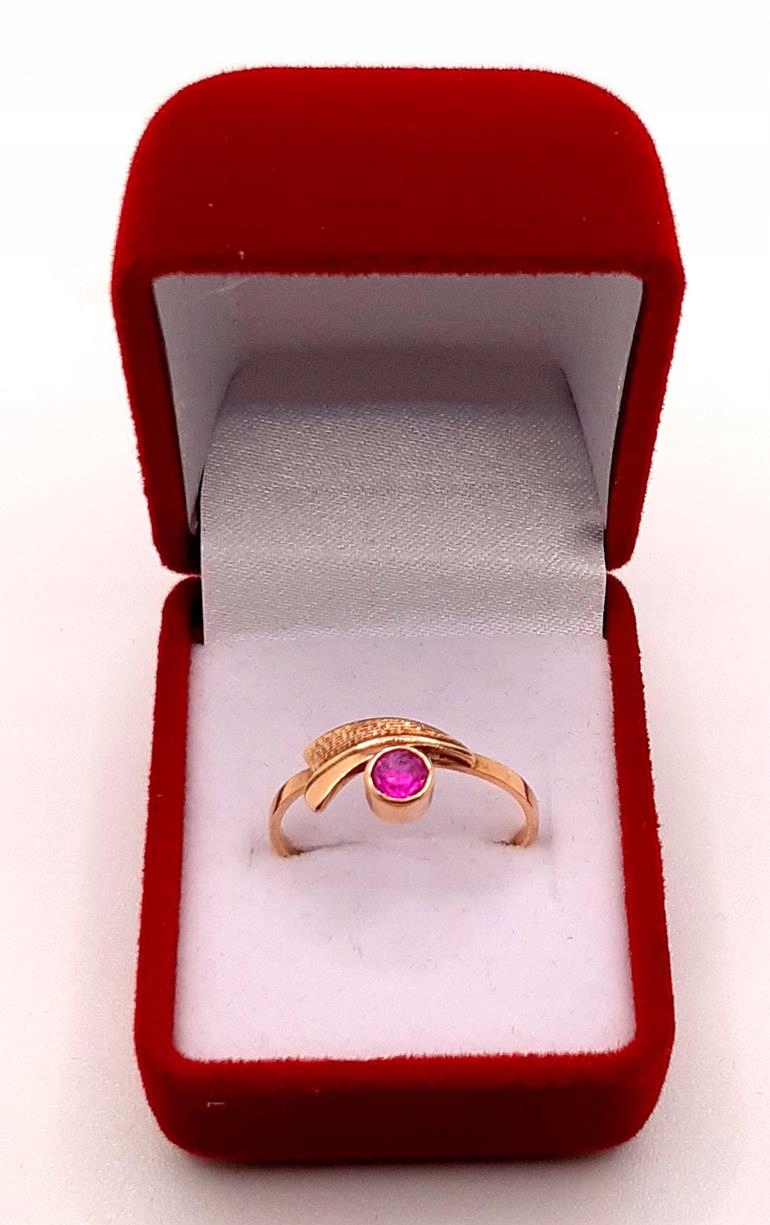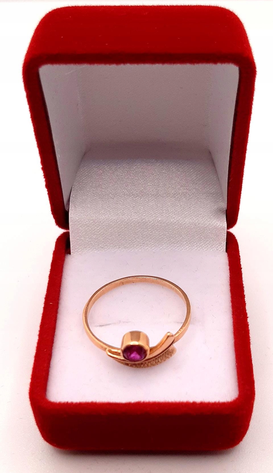 Złoty pierścionek z Rubinem PR. 583 W: 1,82 gr R.15