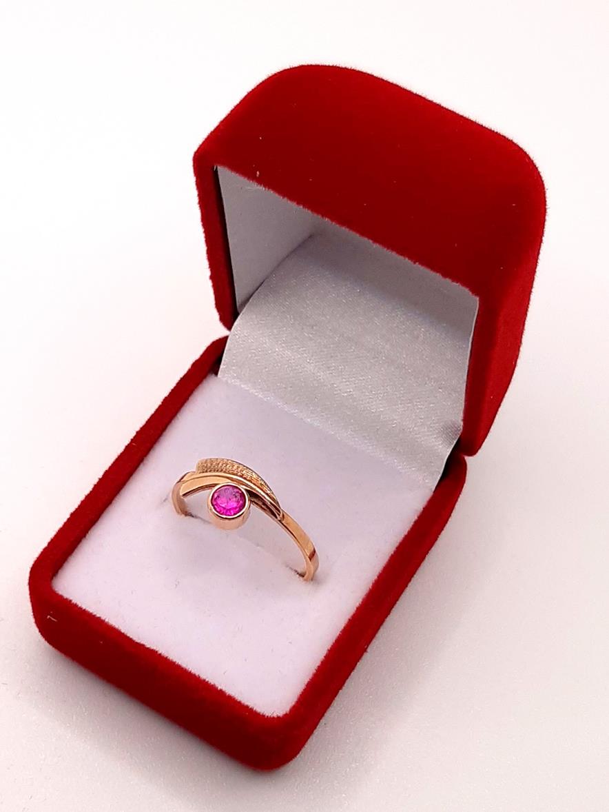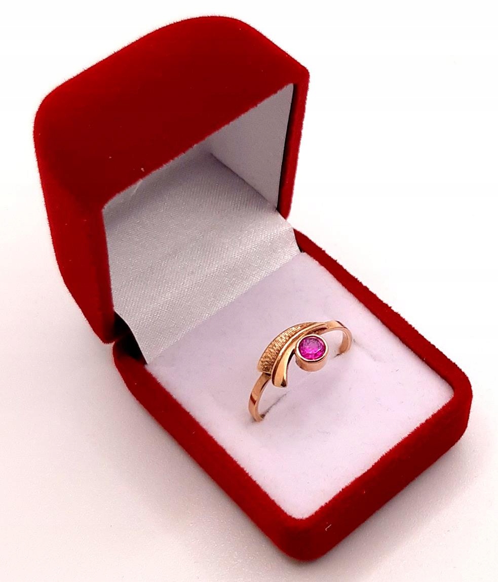W ofercie sprzedaży posiadamy złoty pierścionek ozdobiony syntetycznym rubinem.