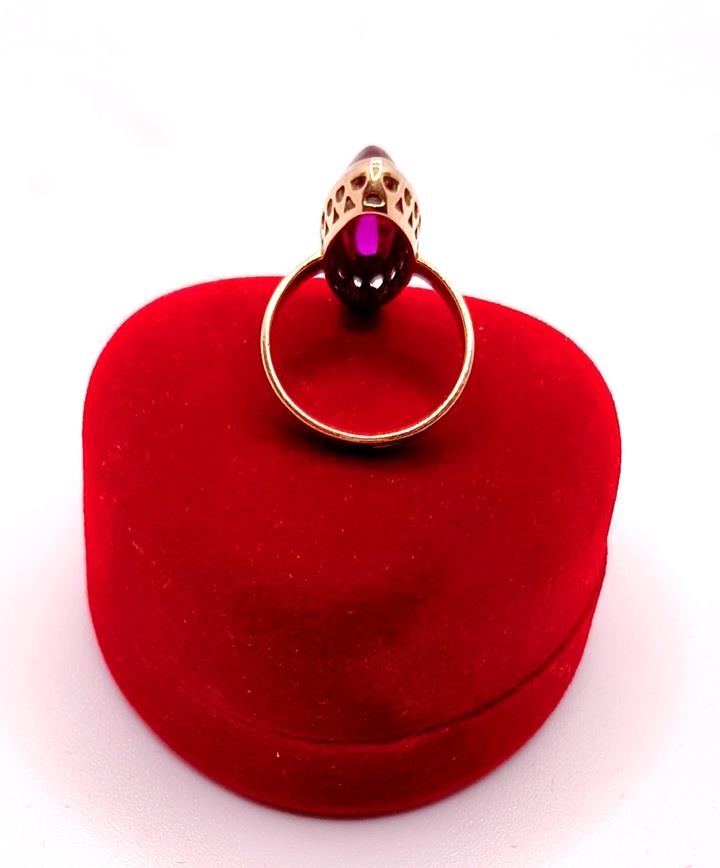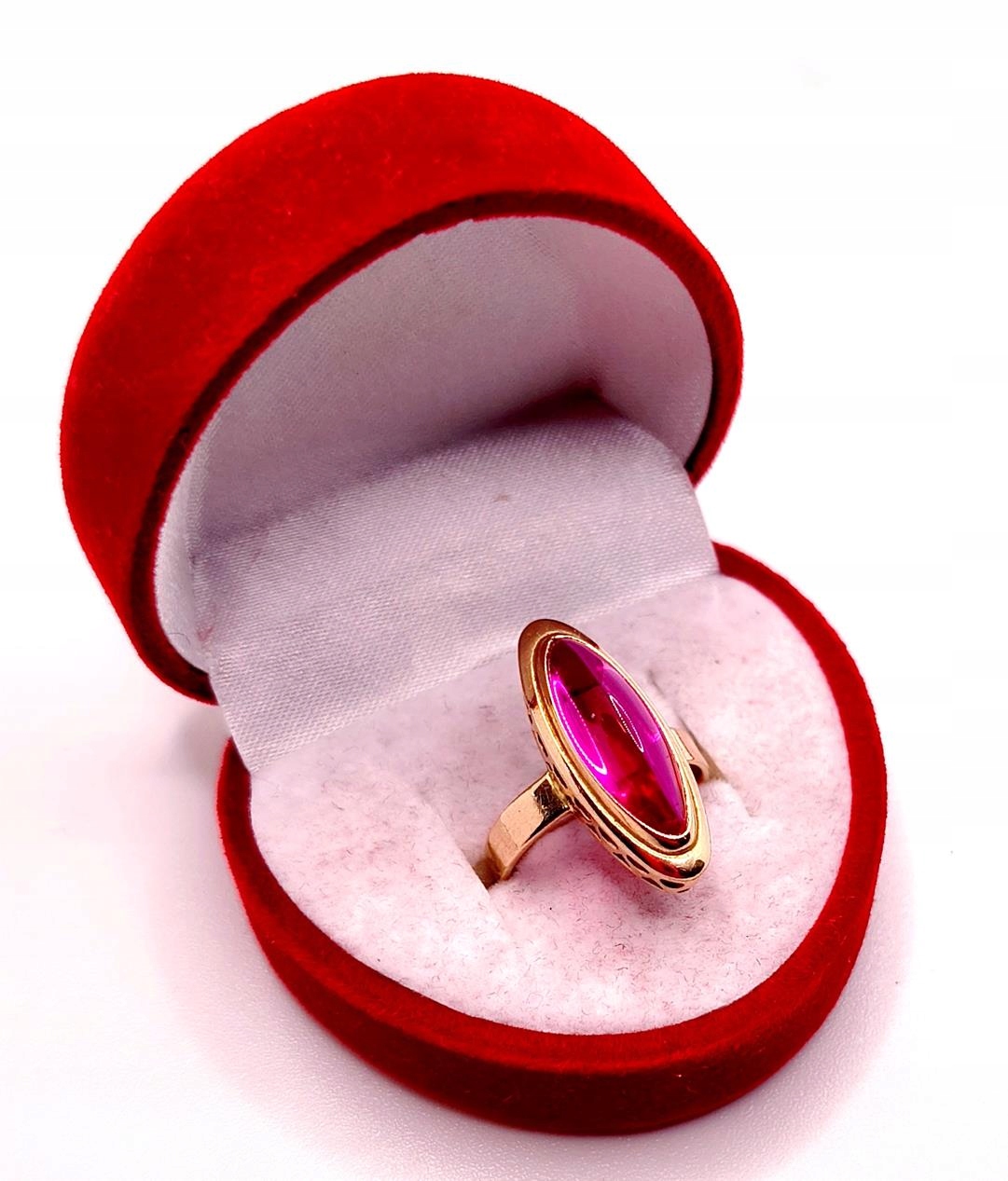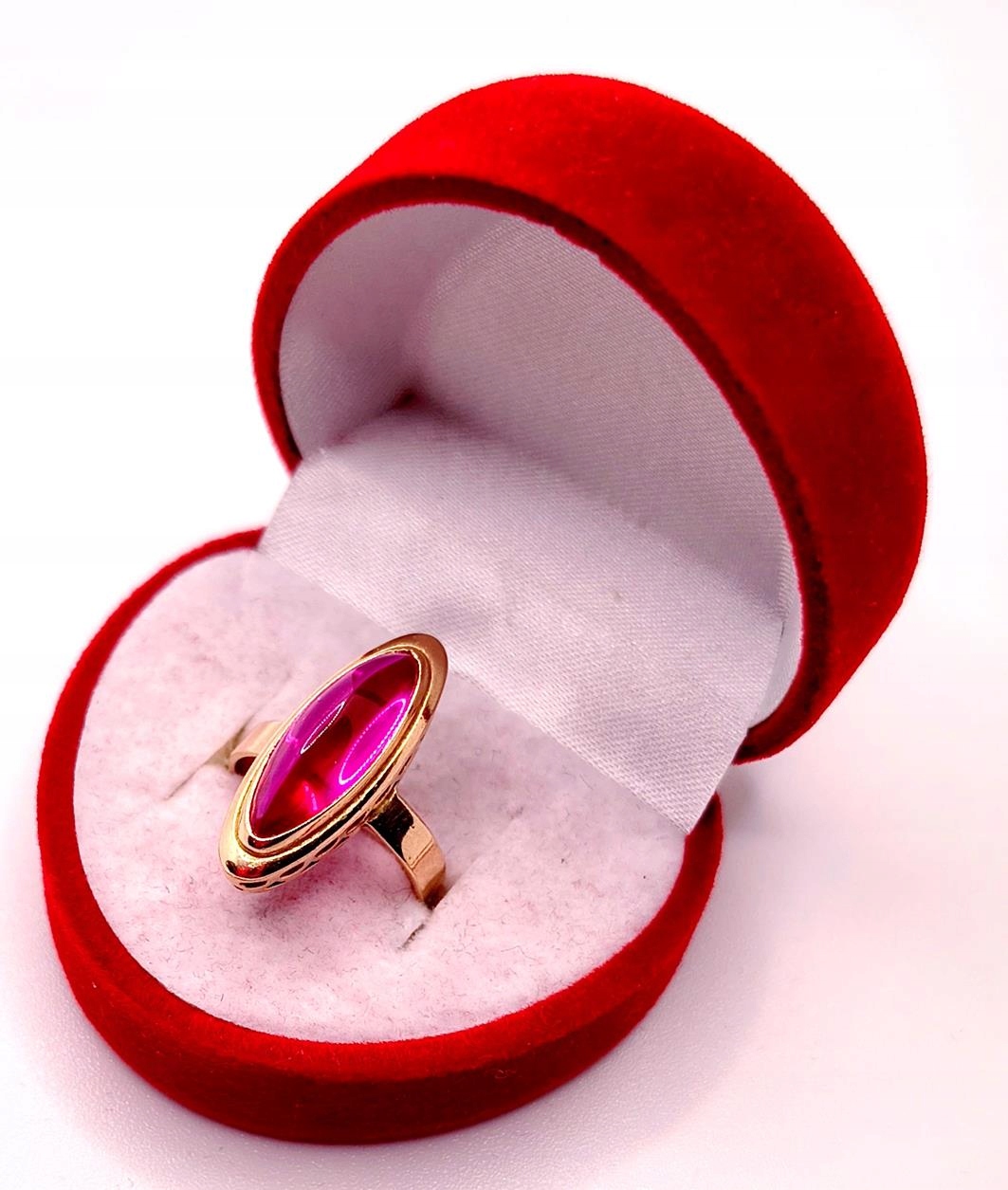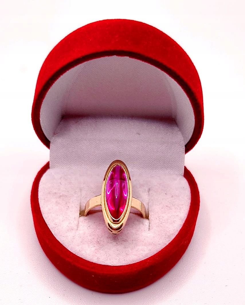 W ofercie sprzedaży posiadamy piękny, złoty pierścionek ozdobiony syntetycznym rubinem.