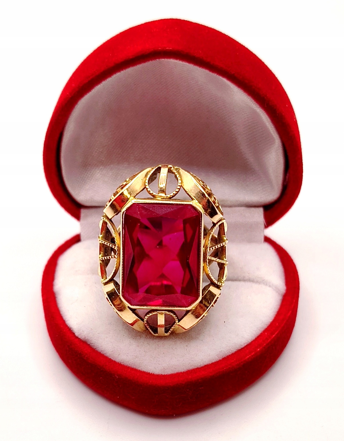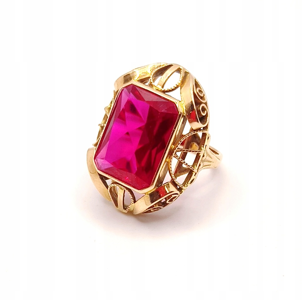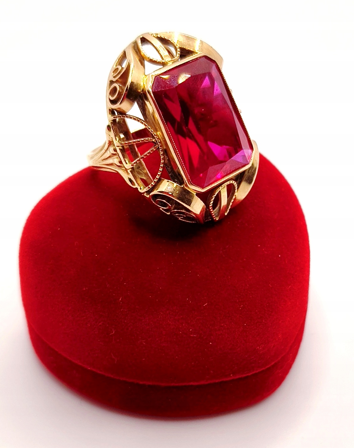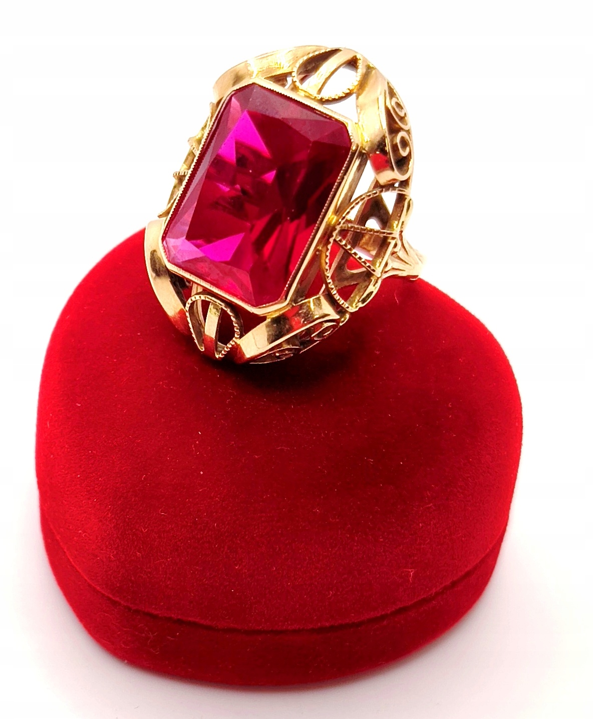 W ofercie na sprzedaż mamy dla Państwa złoty pierścionek ozdobiony syntetycznym rubinem.