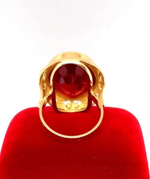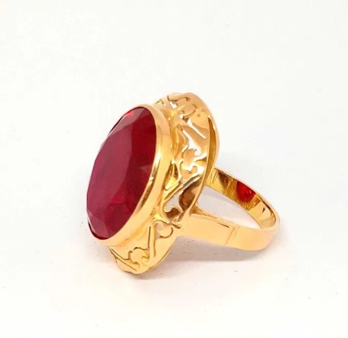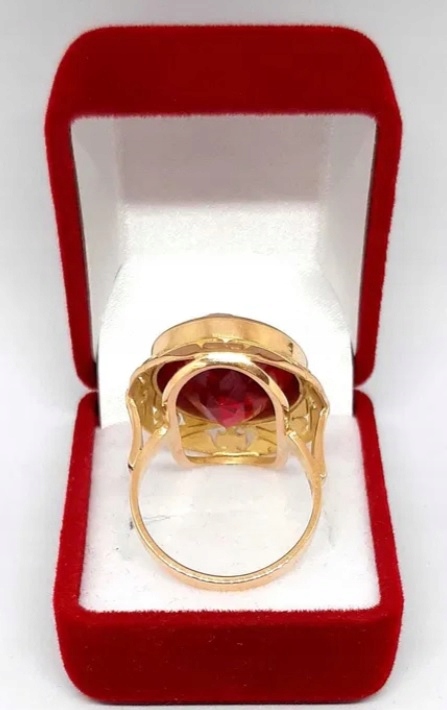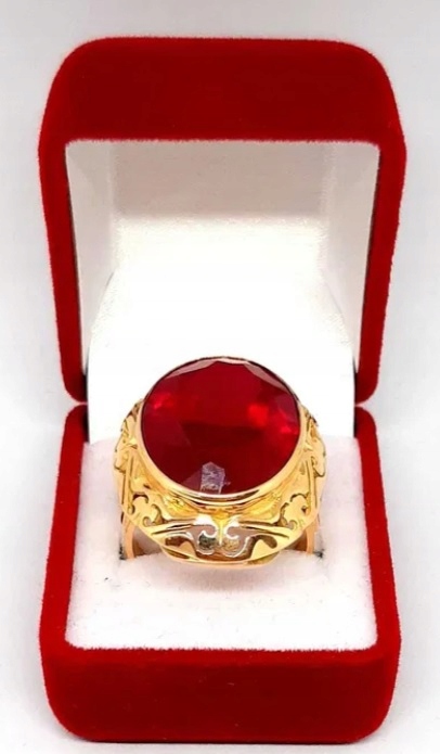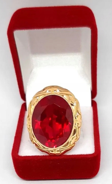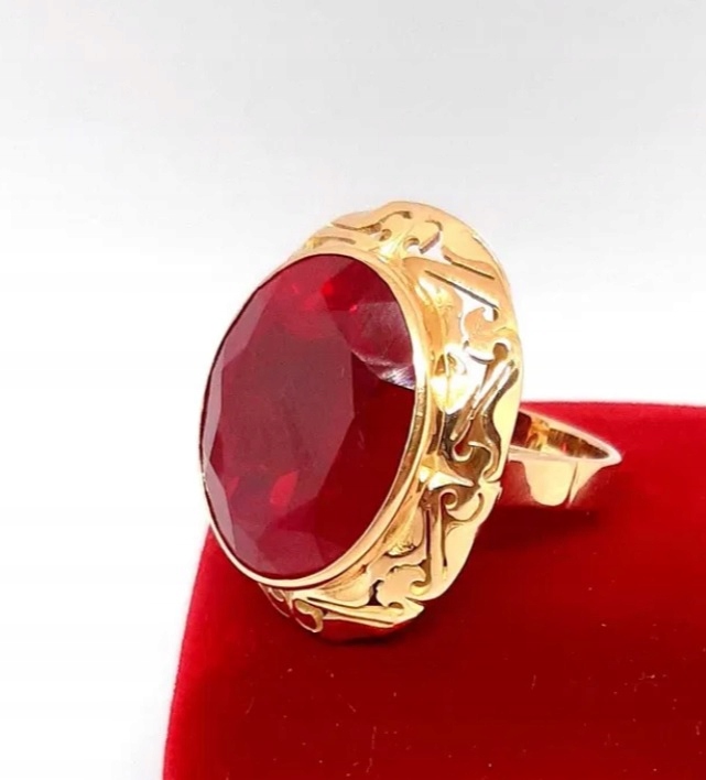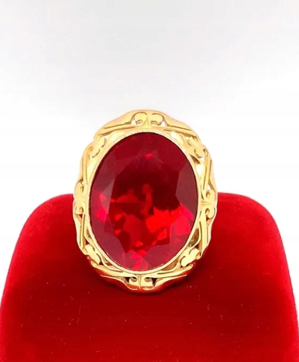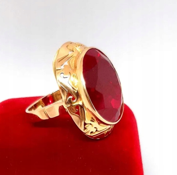 Oferujemy na sprzedaż złoty pierścionek z rubinem syntetycznym.