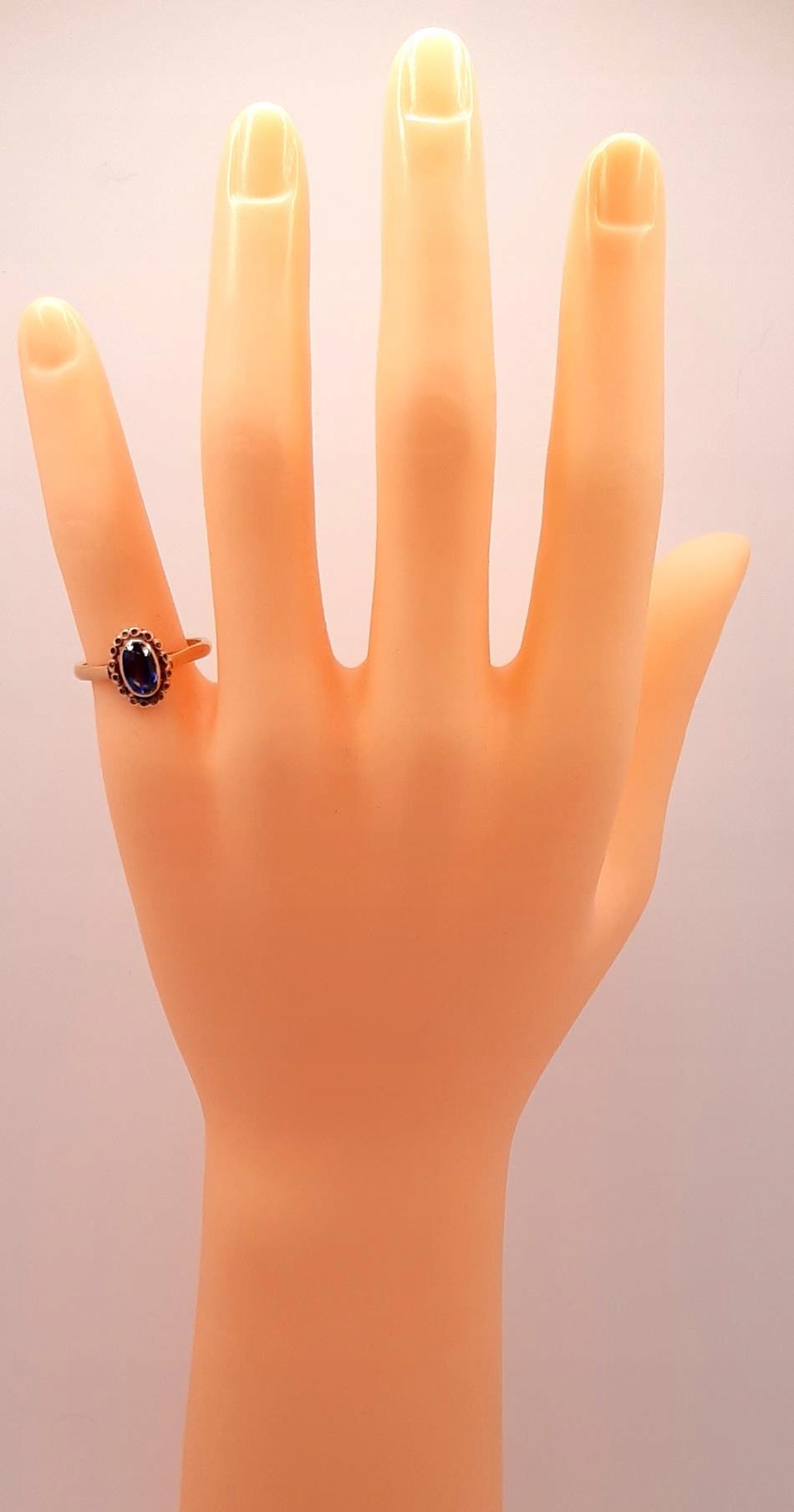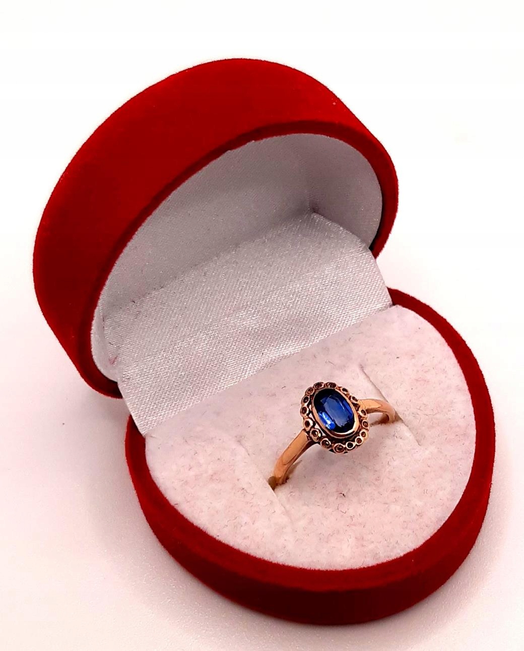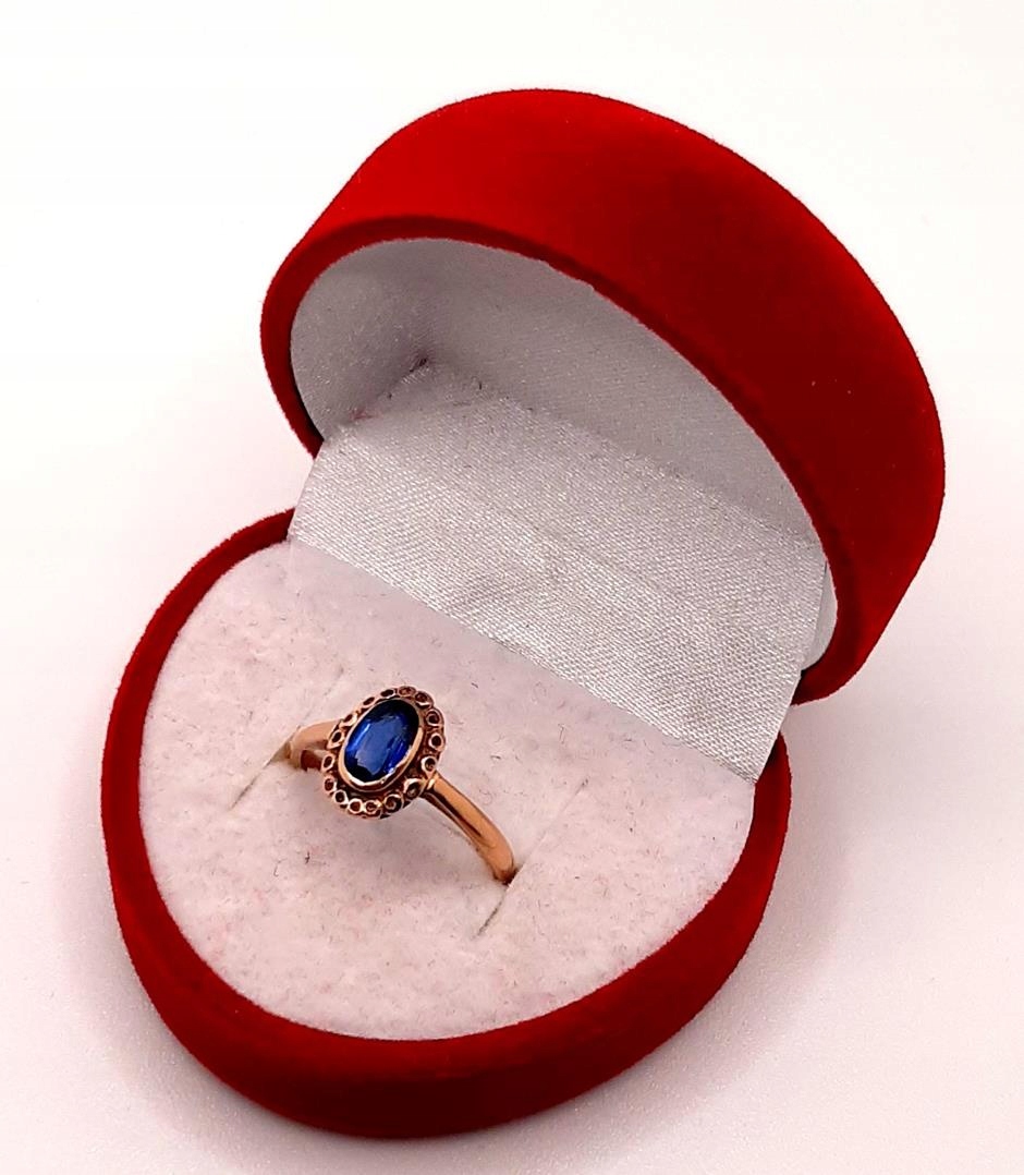 W ofercie sprzedaży posiadamy piękny, złoty pierścionek ozdobiony syntetycznym szafirem.