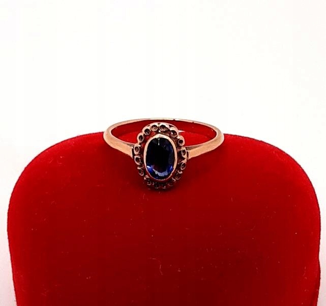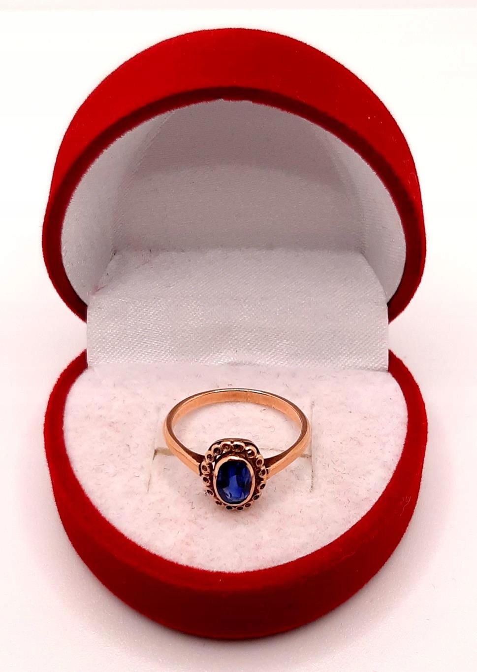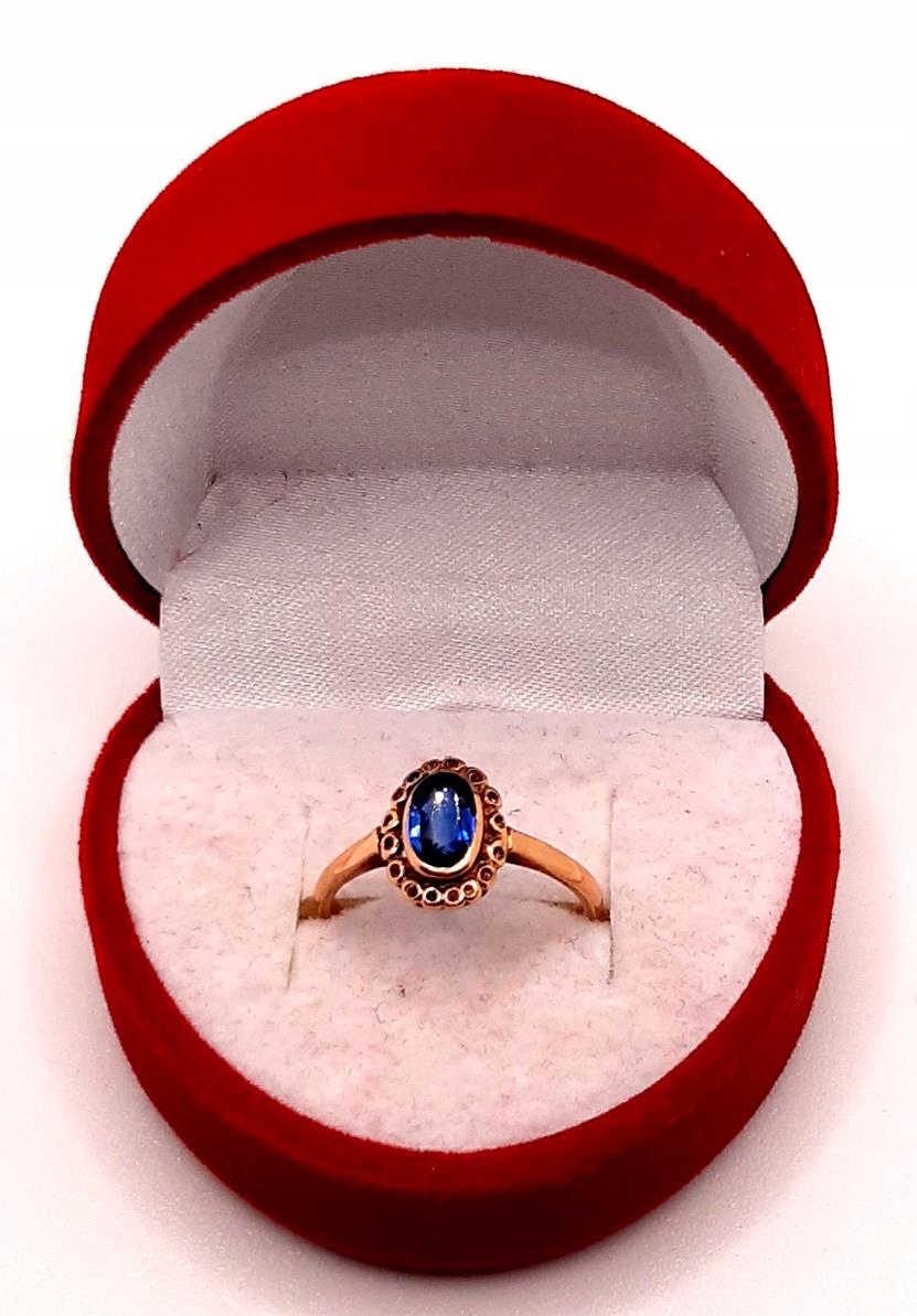 Złoty pierścionek z Szafirem PR. 585 W:1,94 gr R.10