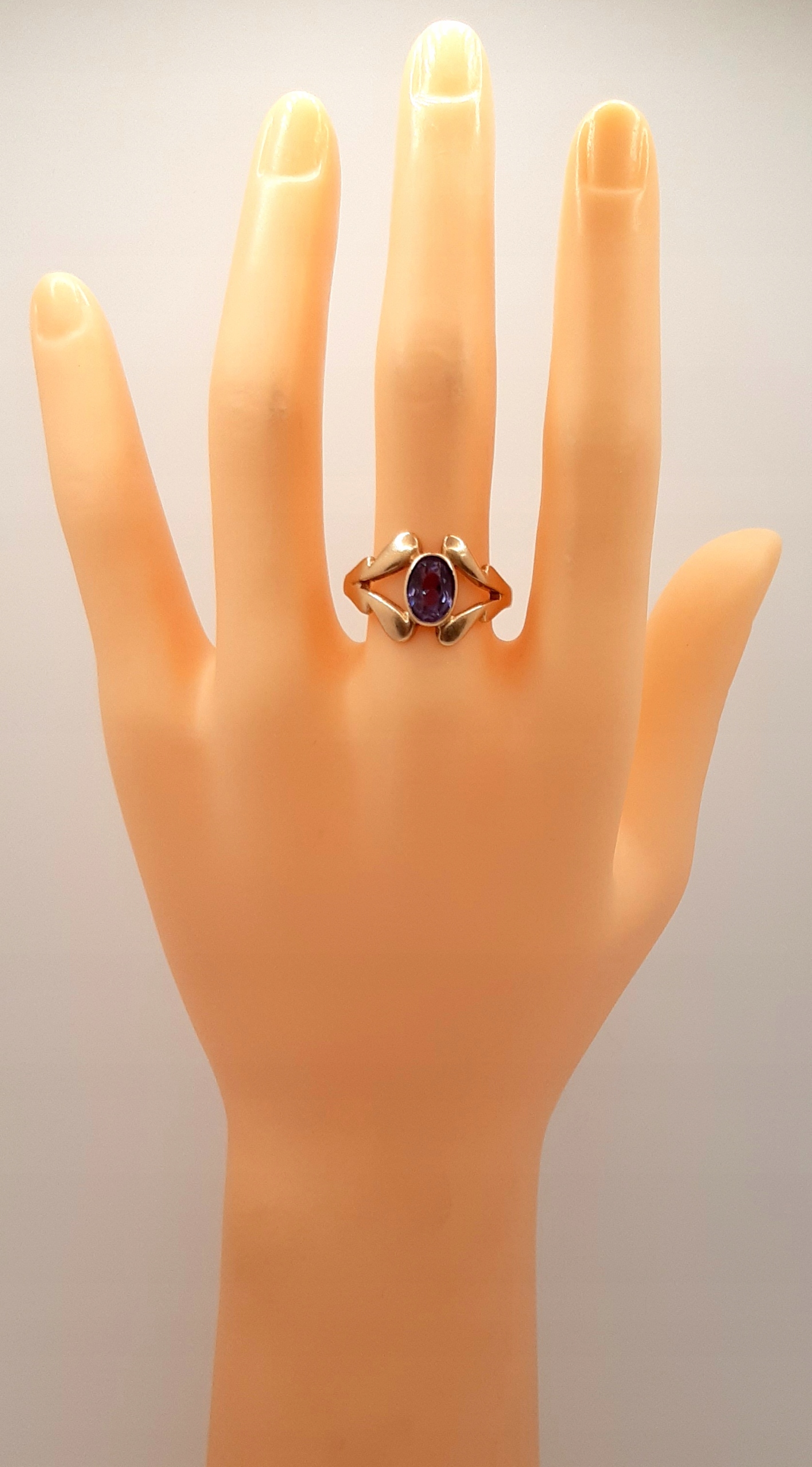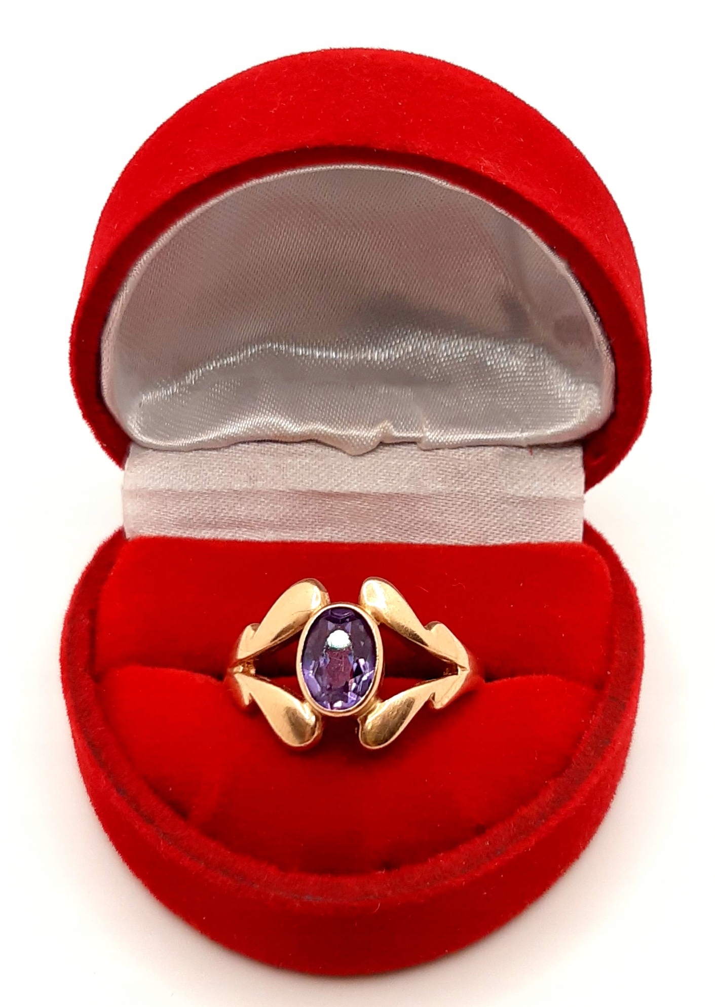 W ofercie na sprzedaż mamy dla Państwa złoty pierścionek, ozdobiony syntetycznym tanzanitem.