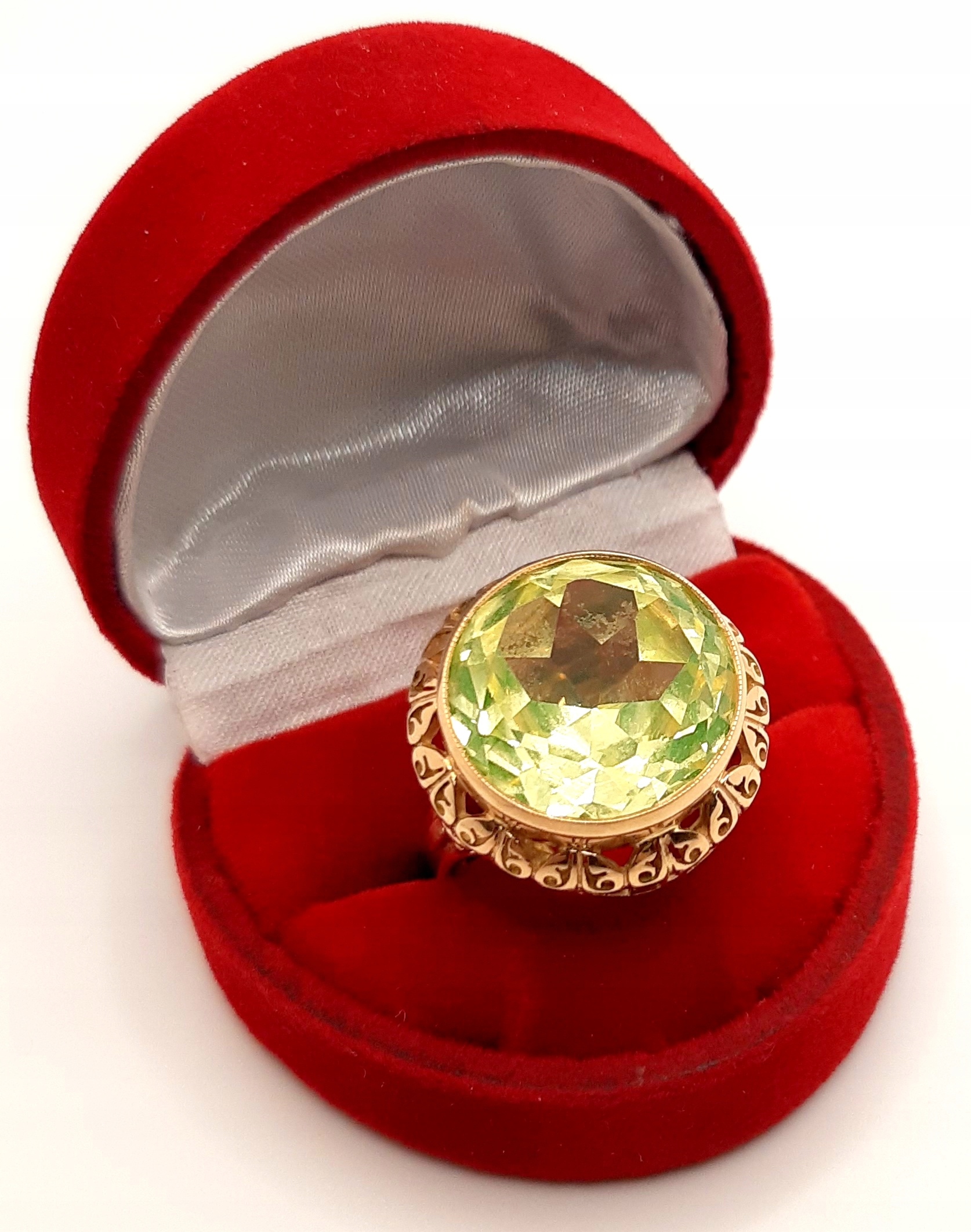 W ofercie na sprzedaż mamy dla Państwa piękny, złoty pierścionek ozdobiony syntetycznym turmalinem.