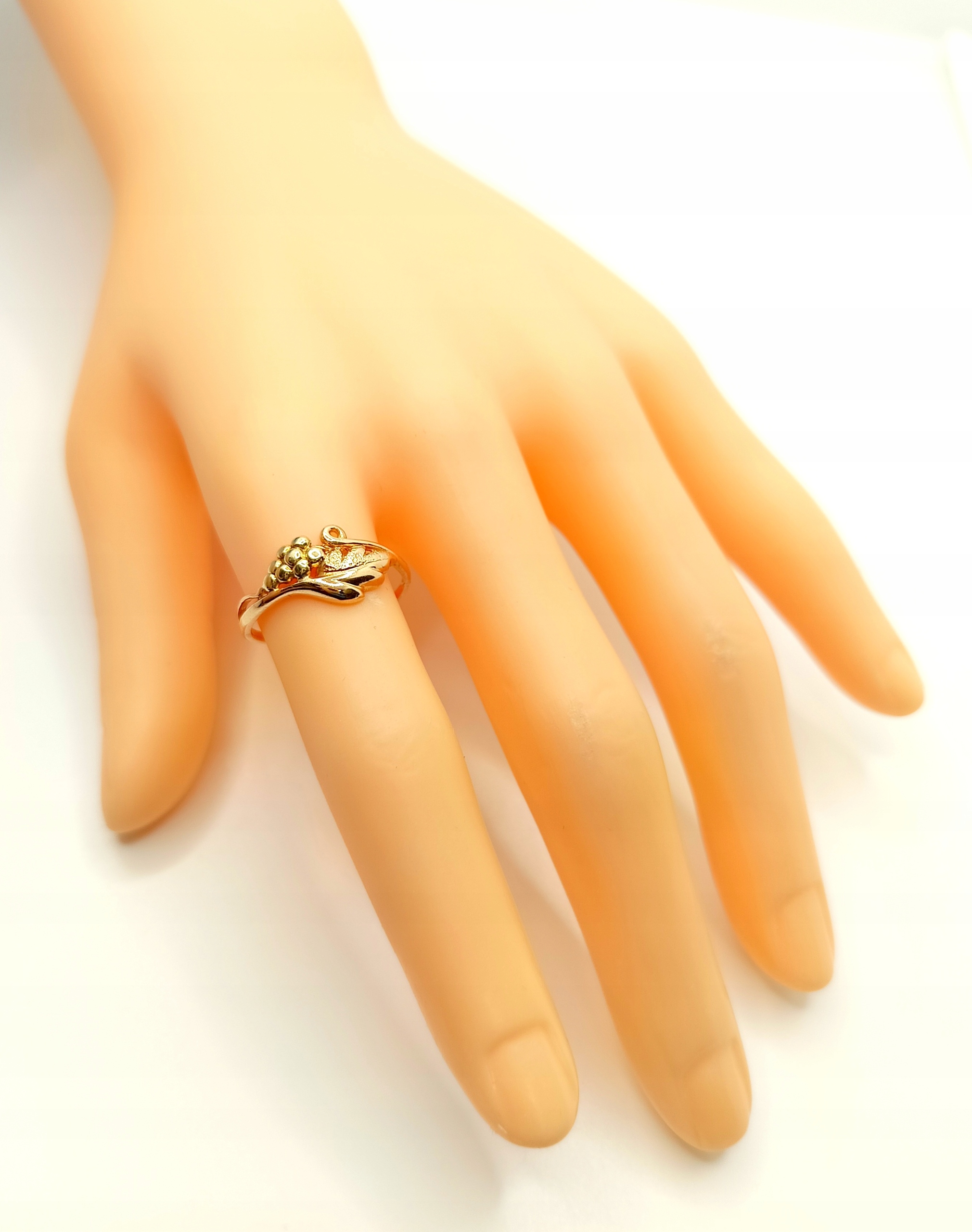 W ofercie na sprzedaż mamy dla Państwa piękny, złoty pierścionek z ozdobą przypominjącą kiść winogron.