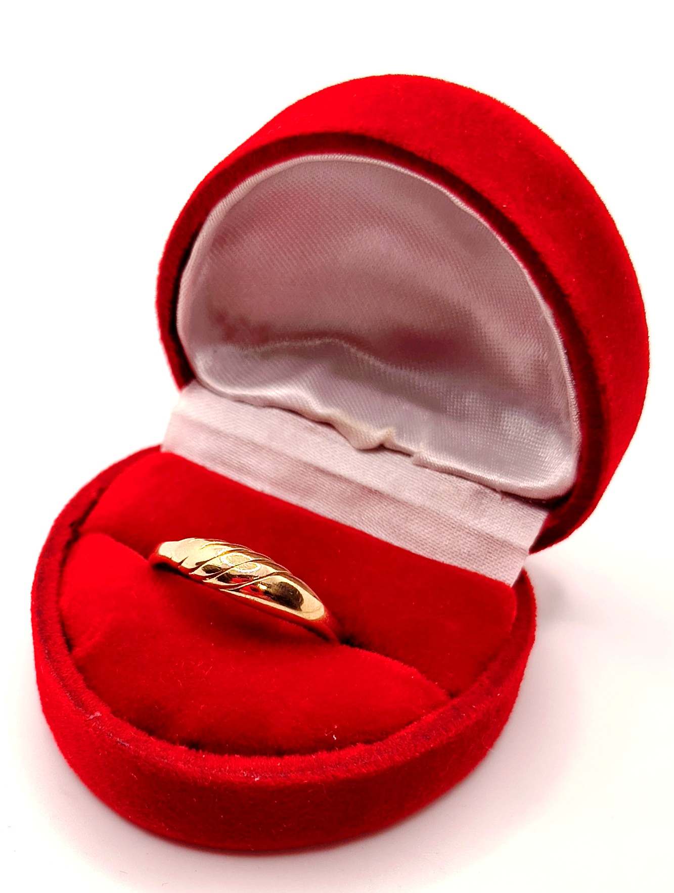 Oferujemy na sprzedaż piękny, złoty, zdobiony pierścionek.