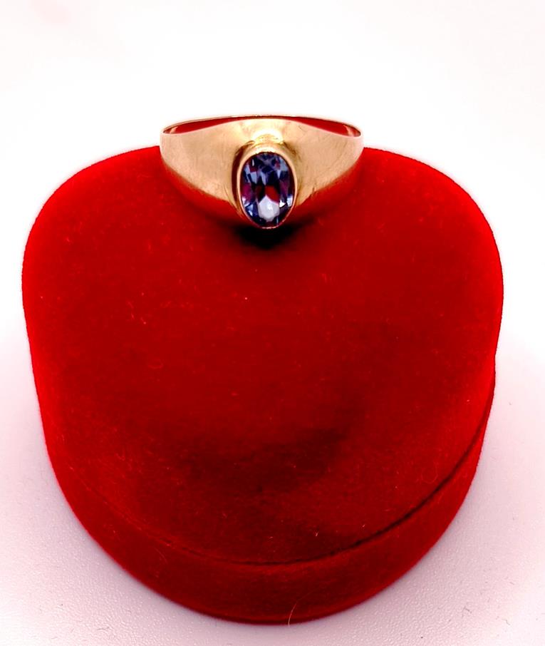 W ofercie sprzedaży posiadamy złoty sygnet ozdobiony syntetycznym topazem.