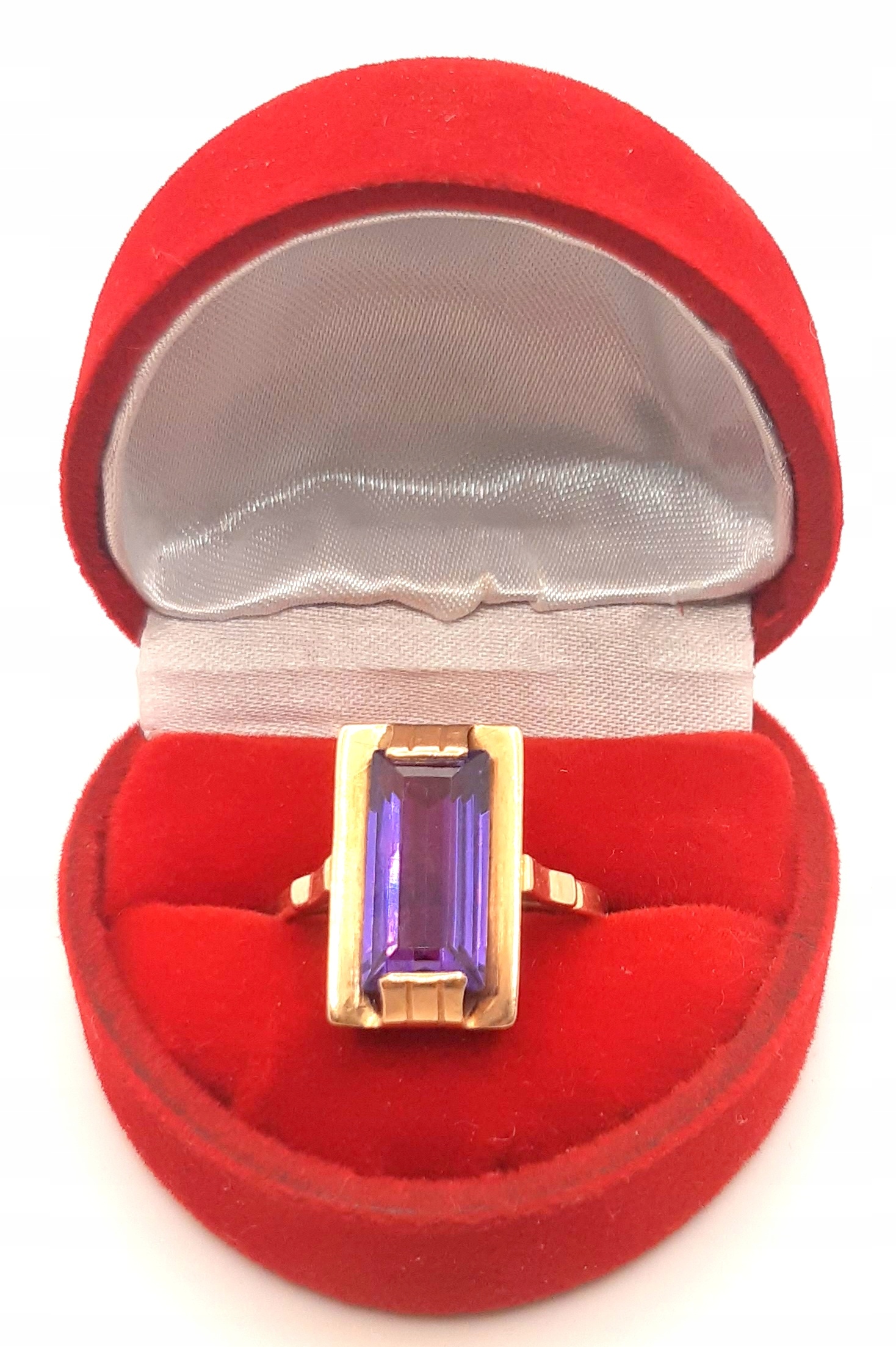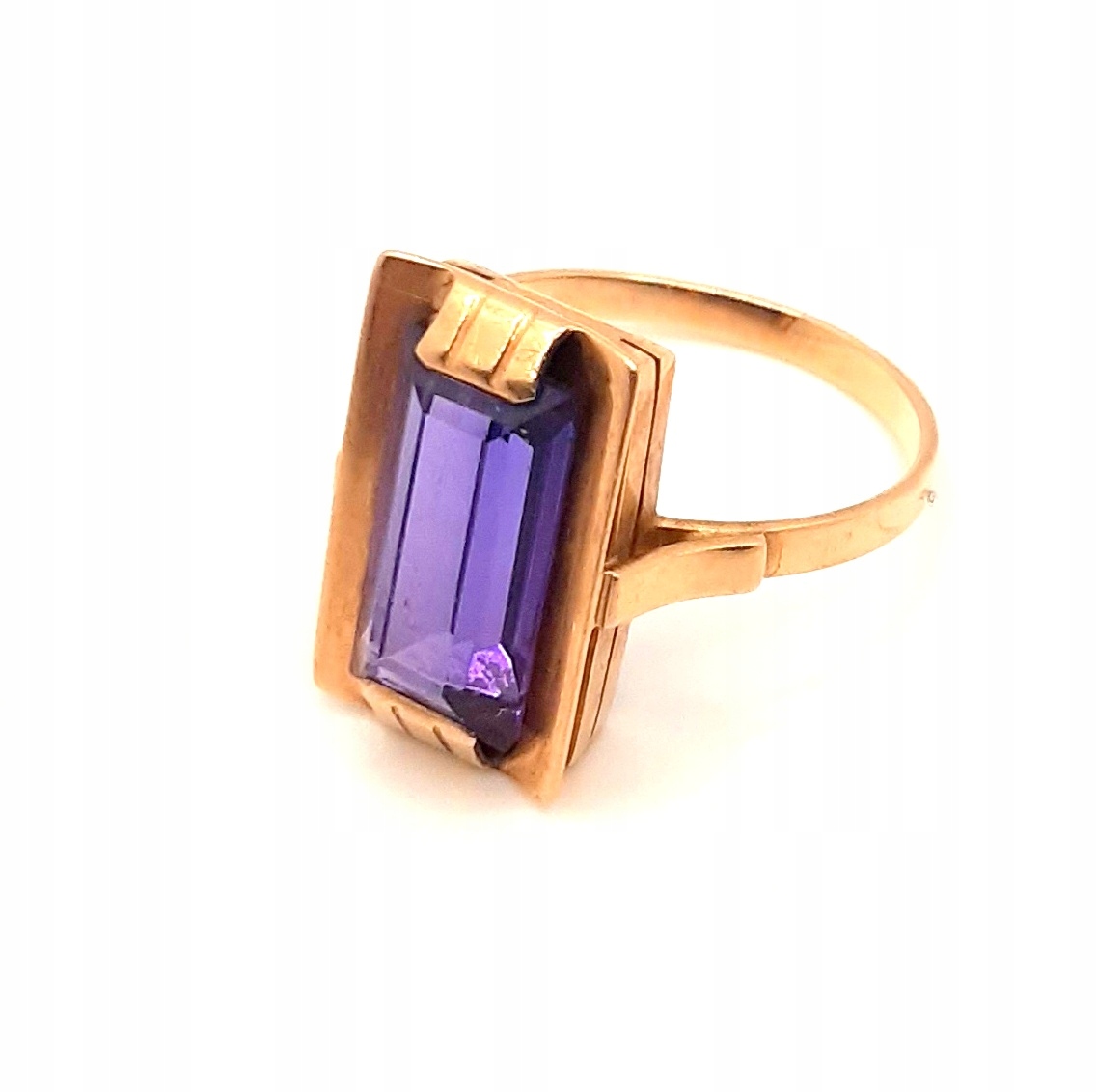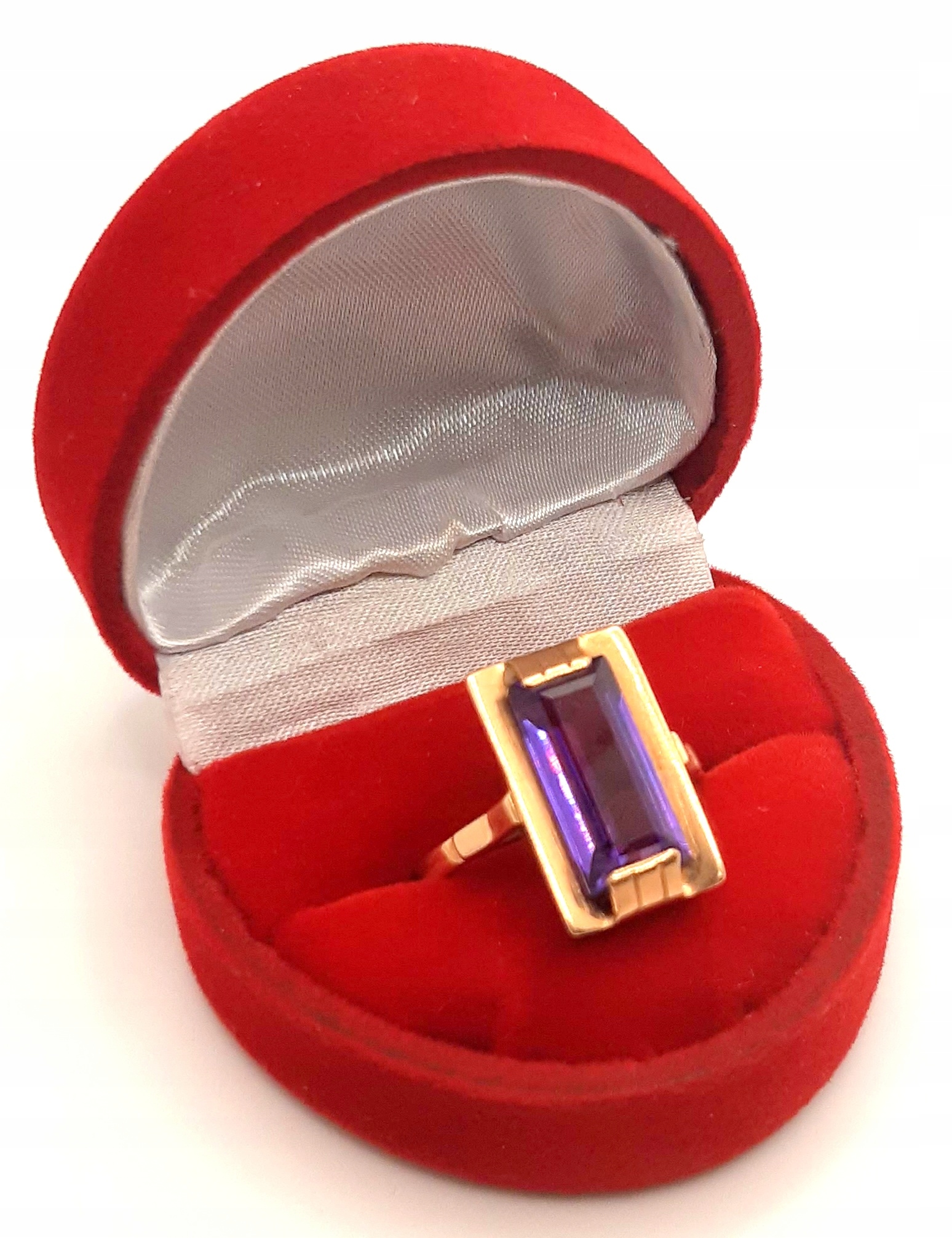 W ofercie na sprzedaż mamy dla Państwa złoty pierścionek ozdobiony syntetycznym ametystem.