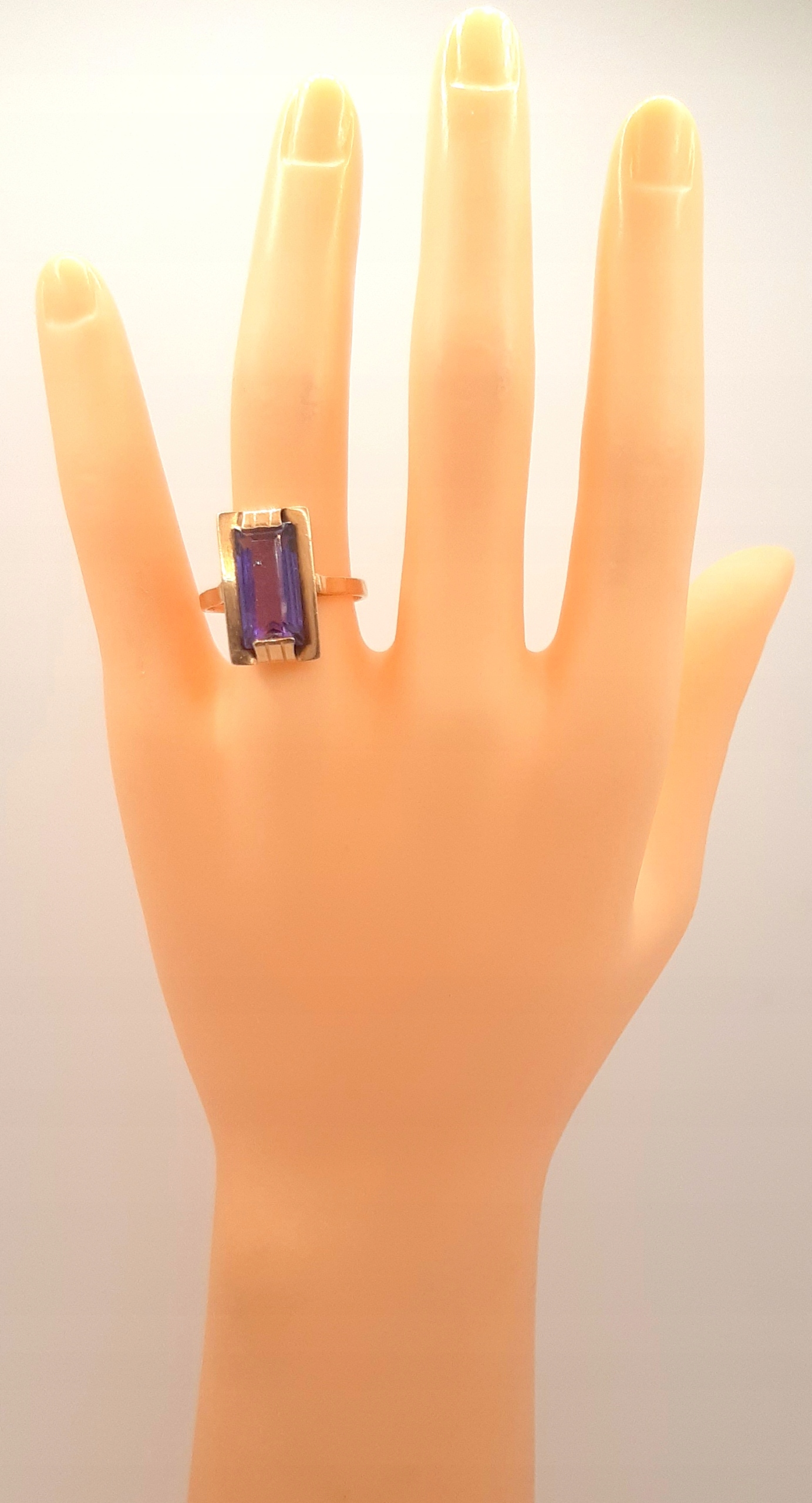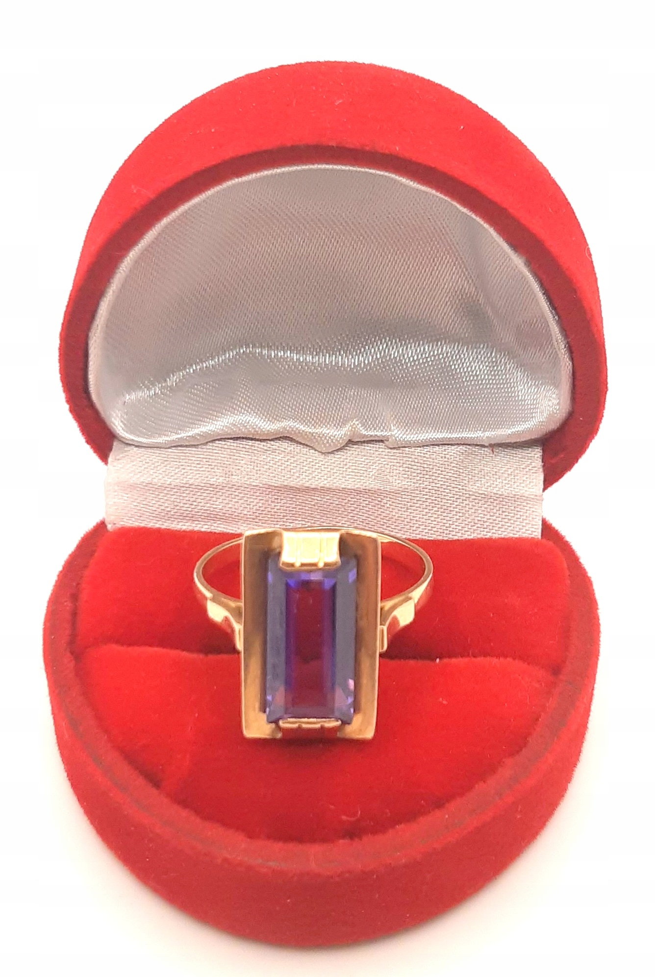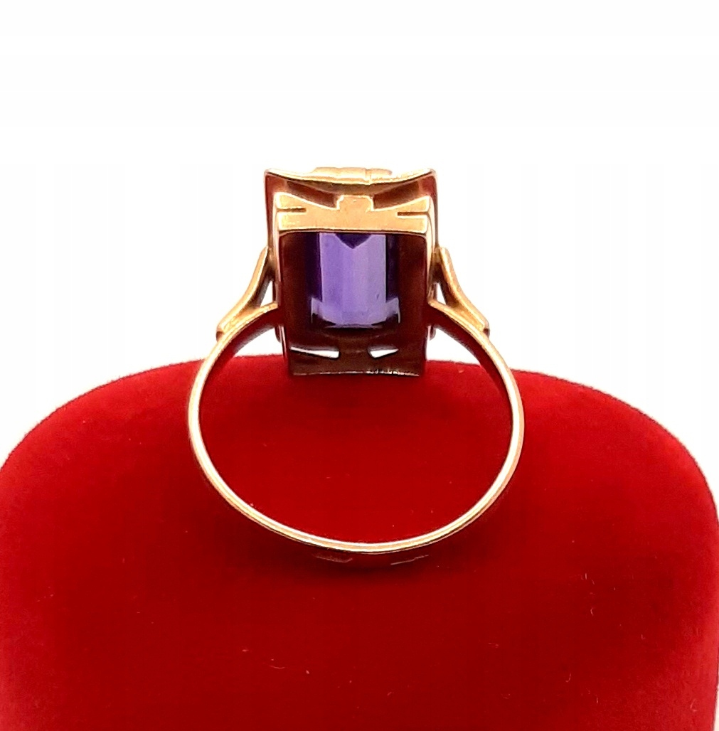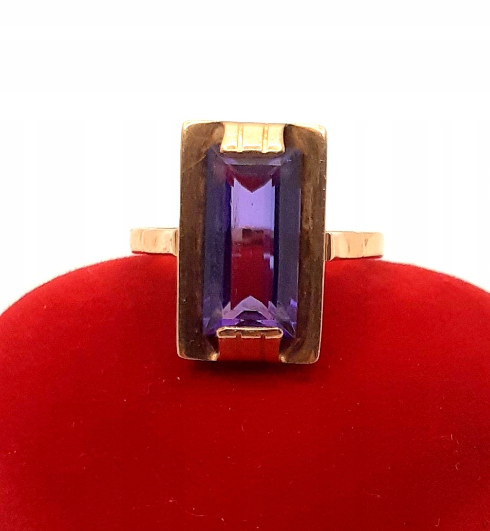W ofercie na sprzedaż mamy dla Państwa złoty pierścionek ozdobiony syntetycznym ametystem.